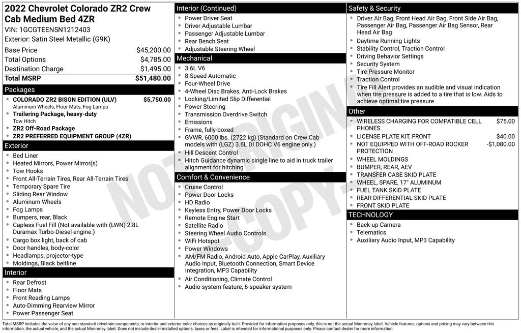 2022 Chevrolet Colorado ZR2 Satin Steel Metallic 4WD 8-Speed Automatic V6 4WD.