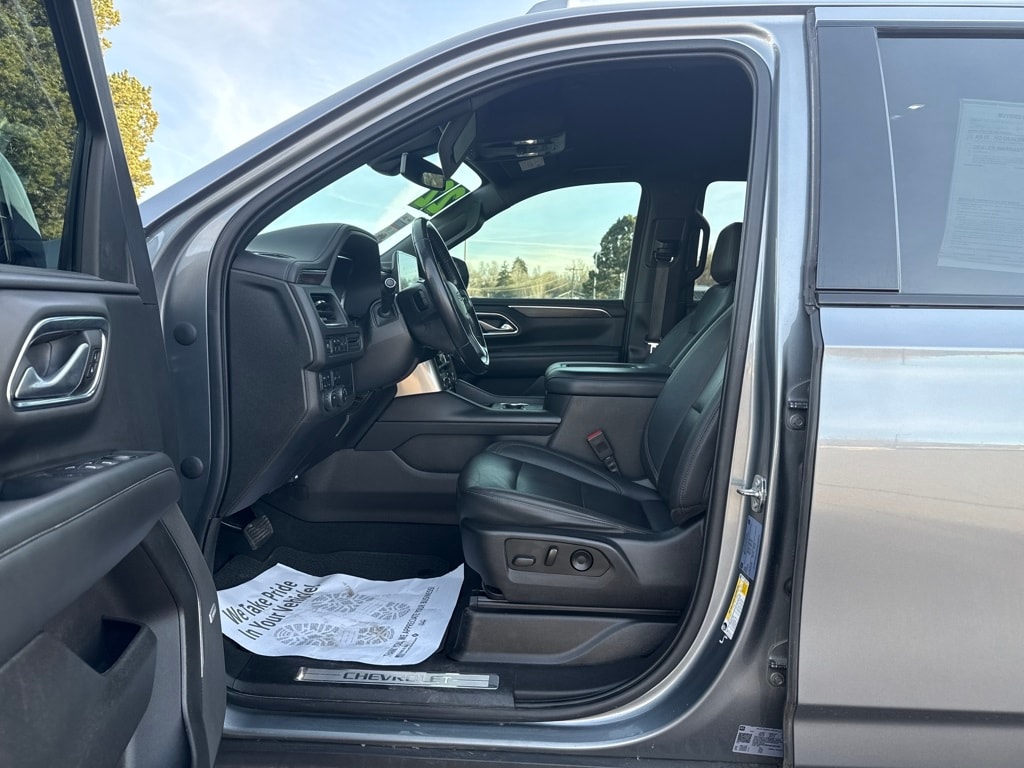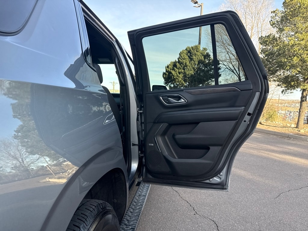 License Plate Front Mounting Package, Preferred Equipment Group 2Z7 (1st & 2nd Row Color-Keyed Carpeted Floor Mats, 2-Speed Active Electronic AutoTrac Transfer Case, Auto-Dimming Inside Rear-View Mirror, Automatic Stop/Start, Black Tubular Assist Steps, Bose 9-Speaker Stereo Audio System Feature, Bright Front & Rear Door Sill Plates, Color-Keyed Carpeting Floor Covering, Driver & Front Outboard Passenger Airbags, Enhanced Driver Information Center, Floor Console w/Storage Area, Front High-Approach Angle Fascia, Hands-Free Rear Power Programmable Liftgate, Hill Descent Control, Infotainment Display, Leather-Wrapped Steering Wheel, LED Daytime Running Lamps, Memory Settings for Driver, Red Horizontal-Mounted Recovery Hooks, Remote Start, SiriusXM Radio w/360L, Start/Stop System Disable Button, Universal Home Remote, and Wireless Charging), Ford Blue Advantage: Blue Certified Certified, 4WD, Black Leather, 10-Way Power Driver & Passenger Seat Adjusters, 3.23 Rear Axle Ratio, 3rd row seats: split-bench, 4-Wheel Disc Brakes, 9 Speakers, ABS brakes, Air Conditioning, Alloy wheels, AM/FM radio: SiriusXM with 360L, Apple CarPlay/Android Auto, Auto High-beam Headlights, Auto-dimming Rear-View mirror, Automatic temperature control, Brake assist, Bumpers: body-color, Compass, Delay-off headlights, Driver door bin, Driver vanity mirror, Dual front impact airbags, Dual front side impact airbags, Electronic Stability Control, Emergency communication system: OnStar and Chevrolet connected services capable, Four wheel independent suspension, Front anti-roll bar, Front Bucket Seats, Front Center Armrest, Front dual zone A/C, Front High-Back Reclining Bucket Seats, Front reading lights, Fully automatic headlights, Garage door transmitter, Heated door mirrors, Heated Driver & Front Passenger Seats, Heated front seats, Illuminated entry, Leather steering wheel, Leather-Appointed Seat Trim, Low tire pressure warning, Memory seat, Navigation System, Not Equipped w/Front & Rear Park Assist, Not Equipped w/Heated/Ventilated Front Seats, Not Equipped w/Steering Column Lock, Occupant sensing airbag, Outside temperature display, Overhead airbag, Overhead console, Panic alarm, Passenger door bin, Passenger vanity mirror, Power door mirrors, Power driver seat, Power Liftgate, Power passenger seat, Power steering, Power windows, Premium audio system: Chevrolet Infotainment System 3, Premium Smooth Ride Suspension, Radio: Chevrolet Infotainment 3 Premium System, Rain sensing wipers, Rear air conditioning, Rear anti-roll bar, Rear reading lights, Rear seat center armrest, Rear window defroster, Rear window wiper, Remote keyless entry, Roof rack: rails only, Security system, Speed control, Speed-sensing steering, Split folding rear seat, Spoiler, Steering wheel mounted audio controls, Tachometer, Telescoping steering wheel, Tilt steering wheel, Traction control, Trip computer, Variably intermittent wipers, Voltmeter, and Wheels: 20" x 9" Machined Aluminum.