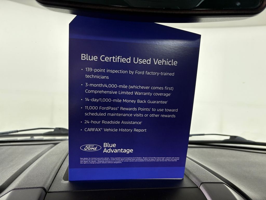 Ford Blue Certified includes:139 point vehicle inspection performed by an ASE Certified technician 3-month/4,000-mile Comprehensive Limited Warranty coverage that is fully competitive with other online retailers Blue Certification includes 11,000 FordPass Rewards Points For other manufacturers not listed above, Comprehensive Coverage is provided for 3 months or 4,000 miles, whichever comes first, from the signature date of the Ford Blue Advantage â" Blue Certified purchase. Comprehensive Limited Warranty covering 1,000+ components Travel expense reimbursement Rental car reimbursement SiriusXM 3 month trial.