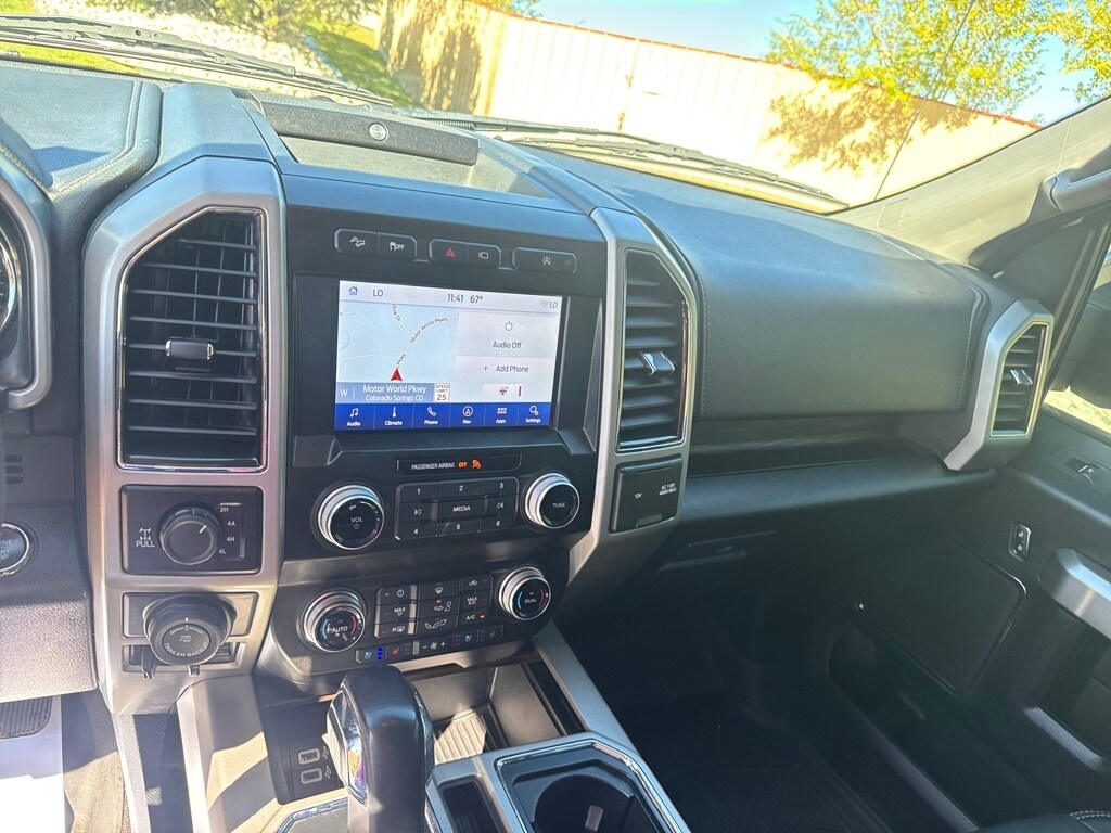 GVWR: 7,050 lbs Payload Package, Ford Gold Certified Certified, 4WD, 18" Machined-Aluminum Wheels, 3.31 Axle Ratio, 4-Wheel Disc Brakes, 7 Speakers, ABS brakes, Adjustable pedals, Air Conditioning, Alloy wheels, AM/FM radio: SiriusXM, Auto High-beam Headlights, Auto-dimming door mirrors, Auto-dimming Rear-View mirror, Automatic temperature control, Brake assist, Bumpers: chrome, Class IV Trailer Hitch Receiver, Compass, Delay-off headlights, Driver door bin, Driver vanity mirror, Dual front impact airbags, Dual front side impact airbags, Electronic Stability Control, Emergency communication system: SYNC 3 911 Assist, Exterior Parking Camera Rear, Front anti-roll bar, Front Center Armrest w/Storage, Front dual zone A/C, Front fog lights, Front reading lights, Front wheel independent suspension, Fully automatic headlights, Heated door mirrors, Heated front seats, Illuminated entry, Leather-Trimmed 40/20/40 Front Seat, Low tire pressure warning, Memory seat, Occupant sensing airbag, Outside temperature display, Overhead airbag, Overhead console, Panic alarm, Passenger door bin, Passenger vanity mirror, Pedal memory, Power door mirrors, Power driver seat, Power passenger seat, Power steering, Power windows, Radio data system, Radio: AM/FM Stereo w/6 Speakers, Rear reading lights, Rear seat center armrest, Rear step bumper, Rear window defroster, Remote keyless entry, Security system, SiriusXM Radio, Speed control, Speed-sensing steering, Split folding rear seat, Steering wheel mounted audio controls, SYNC 3, Tachometer, Telescoping steering wheel, Tilt steering wheel, Traction control, Trip computer, Turn signal indicator mirrors, Variably intermittent wipers, Ventilated front seats, and Voltmeter.