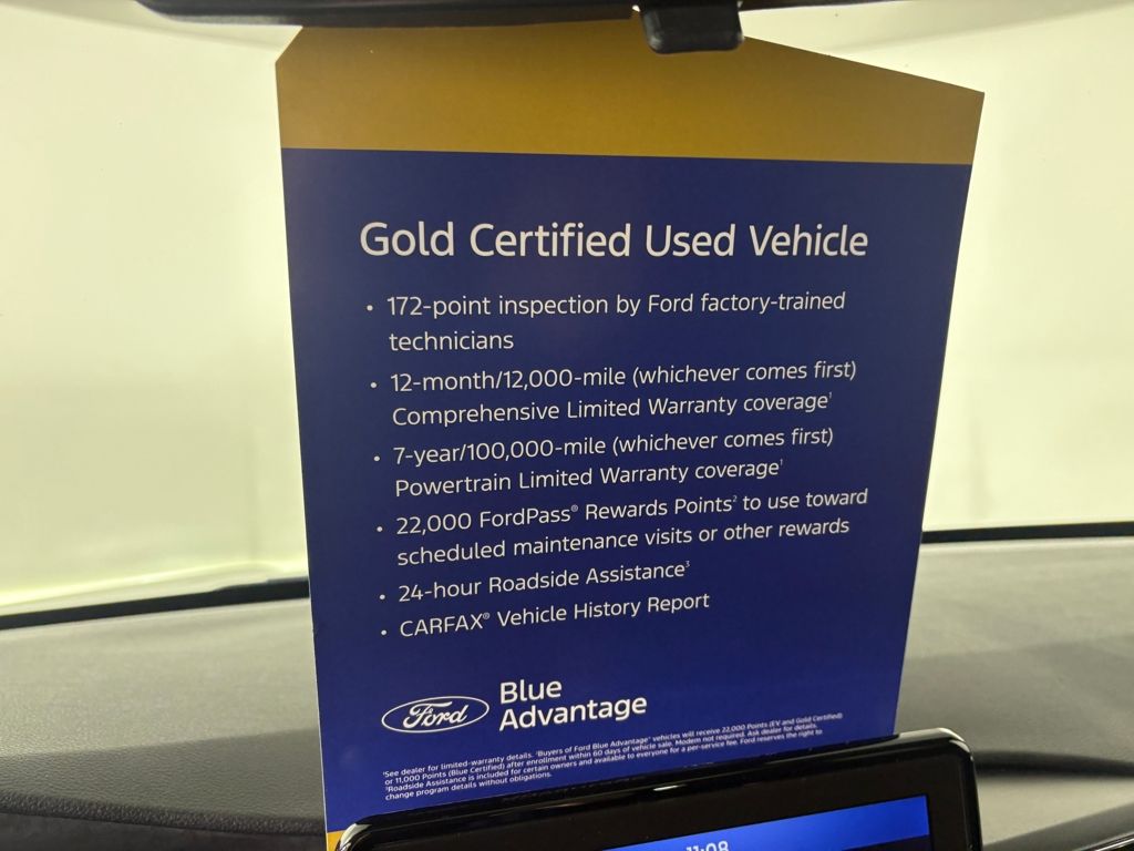 Ford Gold Certified includes:172 point vehicle inspection performed by a Ford Certified technician. 12-month/12,000-mile Comprehensive Limited Warranty coverage 7-year/100,000-mile Powertrain Limited Warranty coverage Gold Certification includes 22,000 FordPass Rewards Points Comprehensive Coverage: 12 months or 12,000 miles, whichever comes first, from the expiration of the new-vehicle bumperto-bumper limited warranty coverage or the date of sale as a certified vehicle, whichever is later. Comprehensive Limited Warranty covering 1,000+ components.