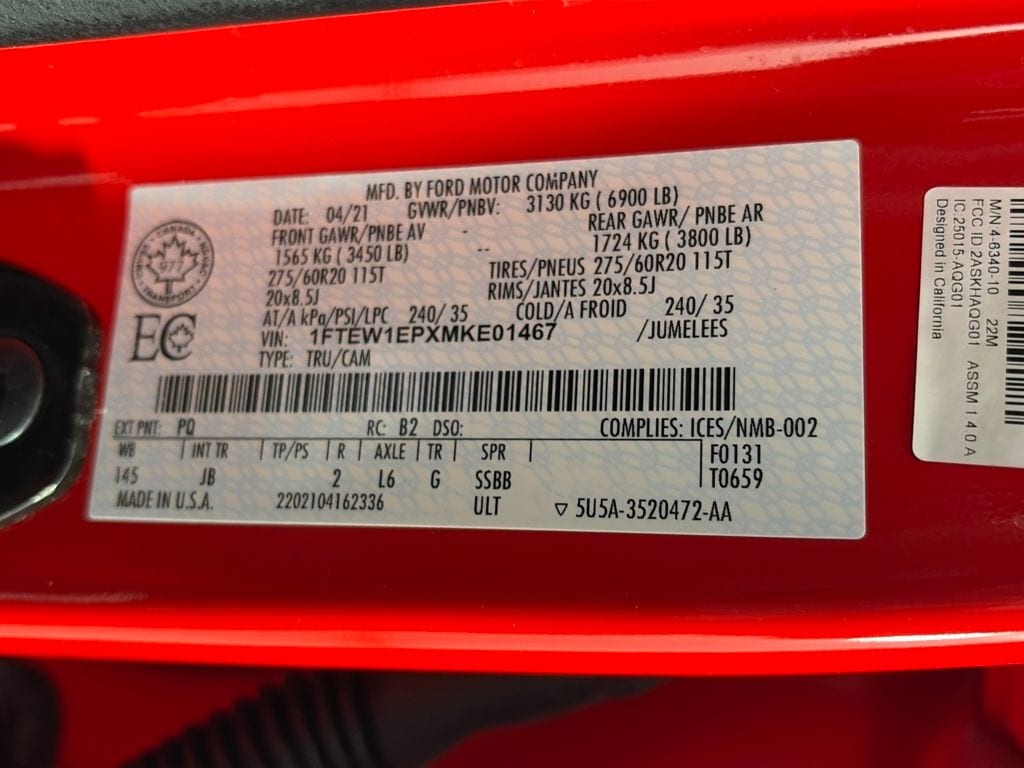 STX APPEARANCE PACKAGE Box Side Decals, Fog Lamps, Wheels: 18 6-Spoke Machined-Aluminum, magnetic painted pockets, Tires: 275/65R18 OWL Automatic Transmission, Body-Color Surround w/Black Mesh Insert Grille, black mesh insert, Manual Driver/Passenger Lumbar, Rear Window Fixed Privacy Glass, Driver/Passenger Seat Back Pocket, Body-Color Front & Rear Bumpers, body-color front fascia, Rear Window Defroster, ENGINE: 2.7L V6 ECOBOOST auto start-stop technology, 3.55 Axle Ratio, GVWR: 6,600 lbs Payload Package, WHEELS: 20 6-SPOKE MACHINED-ALUMINUM magnetic painted pockets, Tires: 275/60R20 BSW AT, 265/70R17 BSW all-terrain spare tire, EQUIPMENT GROUP 101A HIGH Reverse Sensing System, Cruise Control, MANUAL-FOLDING PWR GLASS TRAILER TOW MIRROR (FLT) Manually telescoping heated, turn signal and black skull caps, PLASTIC DROP-IN BEDLINER, SYNC 4 W/ENHANCED VOICE RECOGNITION 8 LCD capacitive touchscreen w/swipe capability, wireless phone connection, cloud connected, AppLink w/App catalog, 911 Assist, Apple CarPlay® and Android Auto® compatibility, digital owners manual, conversational voice command recognition and connected navigation, Note: Navigation services require SYNC 4 and FordPass Connect (optional on select vehicles), complimentary connect service and the FordPass app (see FordPass Terms for details), Customer receives a complimentary 90-day trial of navigation services when an eligible vehicle is added to a members FordPass account, Trial period begins on the new vehicle warranty start date, At the end of the complimentary period, navigation service will terminate, Connected service and features depend on, BLACK PLATFORM RUNNING BOARDS, TRANSMISSION: ELECTRONIC 10-SPEED AUTOMATIC selectable drive modes: normal, ECO, sport, tow/haul, slippery, deep snow/sand and mud/rut (STD). Ford XL with Race Red exterior and Black interior features a V6 Cylinder Engine with 290 HP at 6500 RPM*.