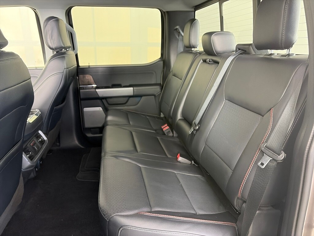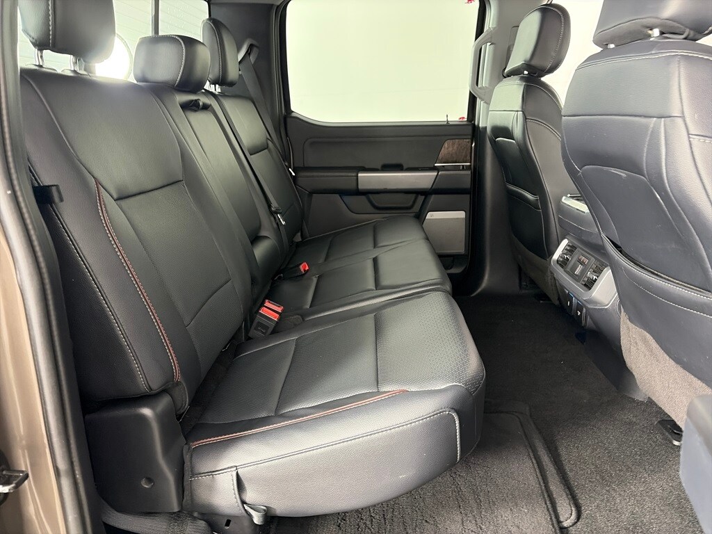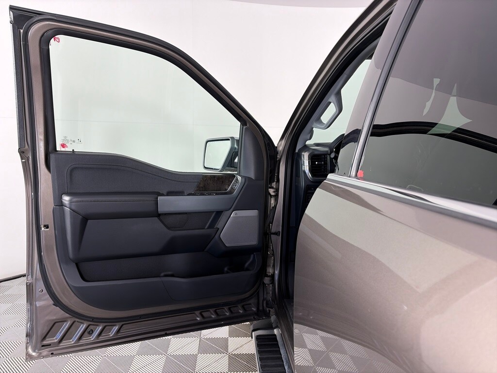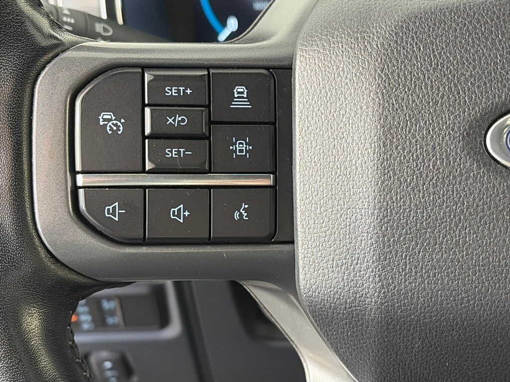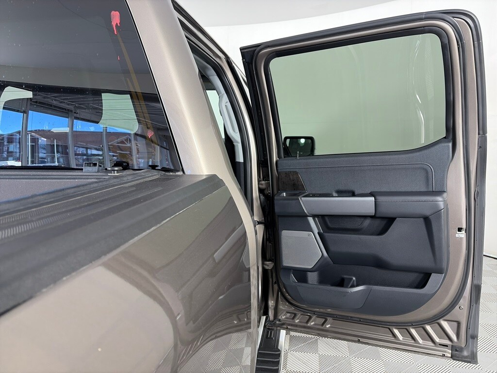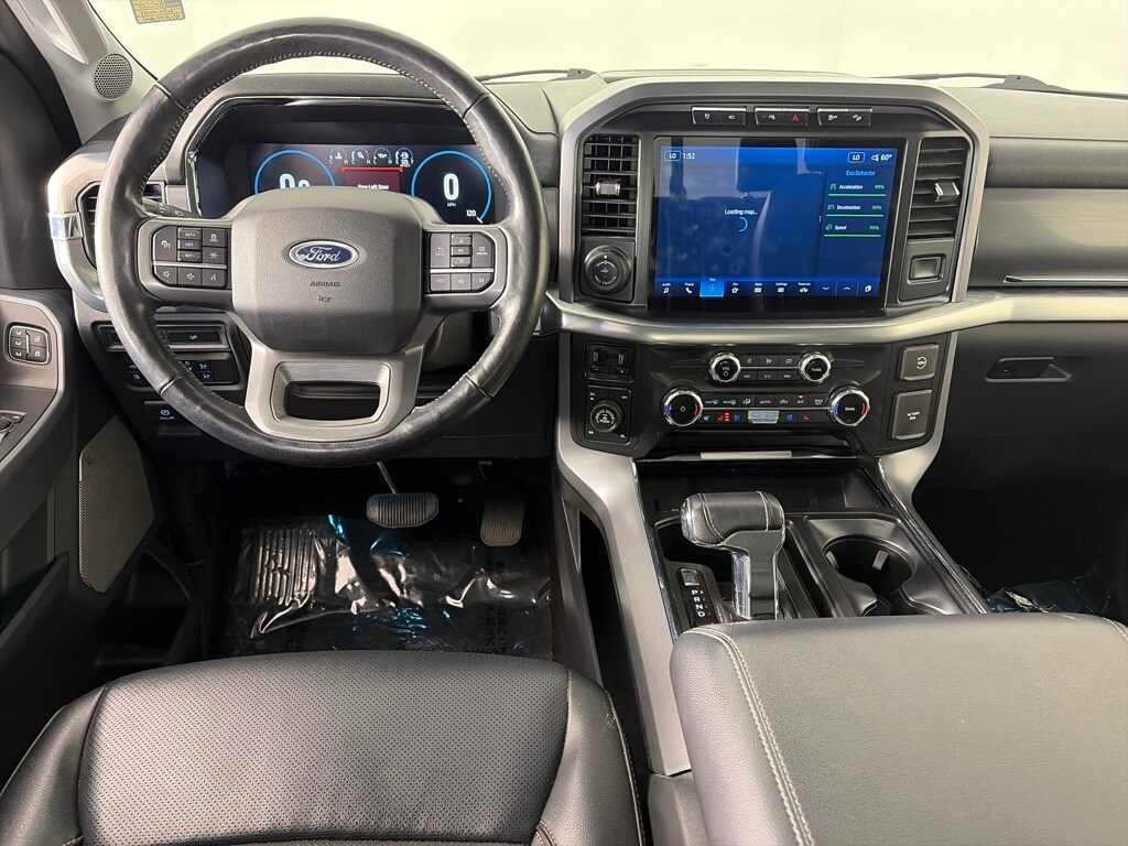 EQUIPMENT GROUP 502A HIGH Rain-Sensing Wipers, Power Tilt/Telescoping Steering Column w/Memory, Onboard 400W Outlet, 2nd outlet in the console and an additional outlet in the bed, Lariat Chrome Appearance Package, 2 chrome front tow hooks, Chrome Single-Tip Exhaust, 6 Bright Polished Running Board, Chrome Door & Tailgate Handles w/Body-Color Bezel, Wheels: 18 Chrome-Like PVD, Chrome 2-Bar Grille w/4 Minor Bars, painted silver surround and background mesh, Chrome Skull Caps on Exterior Mirrors, Radio: B&O Sound System by Bang & Olufsen, HD radio and 8 speakers including subwoofer, 2nd Row Heated Seats, Power Glass Sideview Mirr w/Chrome Skull Caps, power-folding, heat, turn signal, memory, auto-dimming feature (drivers side) and high-intensity LED security approach lamps, Universal, ENGINE: 3.5L POWERBOOST FULL-HYBRID V6 GVWR: 7,350 lbs Payload Package, Electronic Locking w/3.73 Axle Ratio, FORD CO-PILOT360 ASSIST 2.0 Evasive Steering Assist, Intelligent Adaptive Cruise Control w/Stop & Go, lane centering, Speed Sign Recognition, Connected Built-In Navigation, Navigation services require SYNC4 and FordPass Connect (optional on select vehicles), complimentary connect service and the FordPass app (see FordPass Terms for details), Eligible vehicles receive a complimentary 90-day trial of navigation services that begins on the new vehicle warranty start date, Customers must unlock the navigation service trial by activating the eligible vehicle w/a FordPass member account, If not subscribed by the end of the complimentary period, the navigation service will terminate, Connected service and features depend on compatible AT&T network availability, Evolving technology/cellular. Ford LARIAT with Stone Gray exterior and Black interior features a V6 Cylinder Engine with 400 HP at 6000 RPM*.