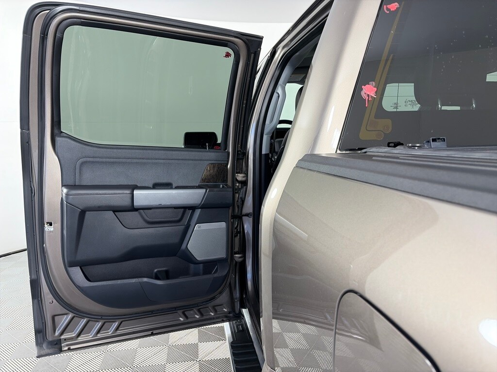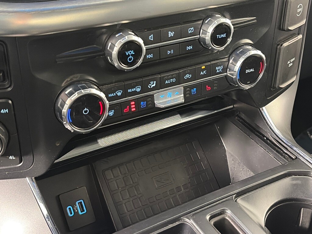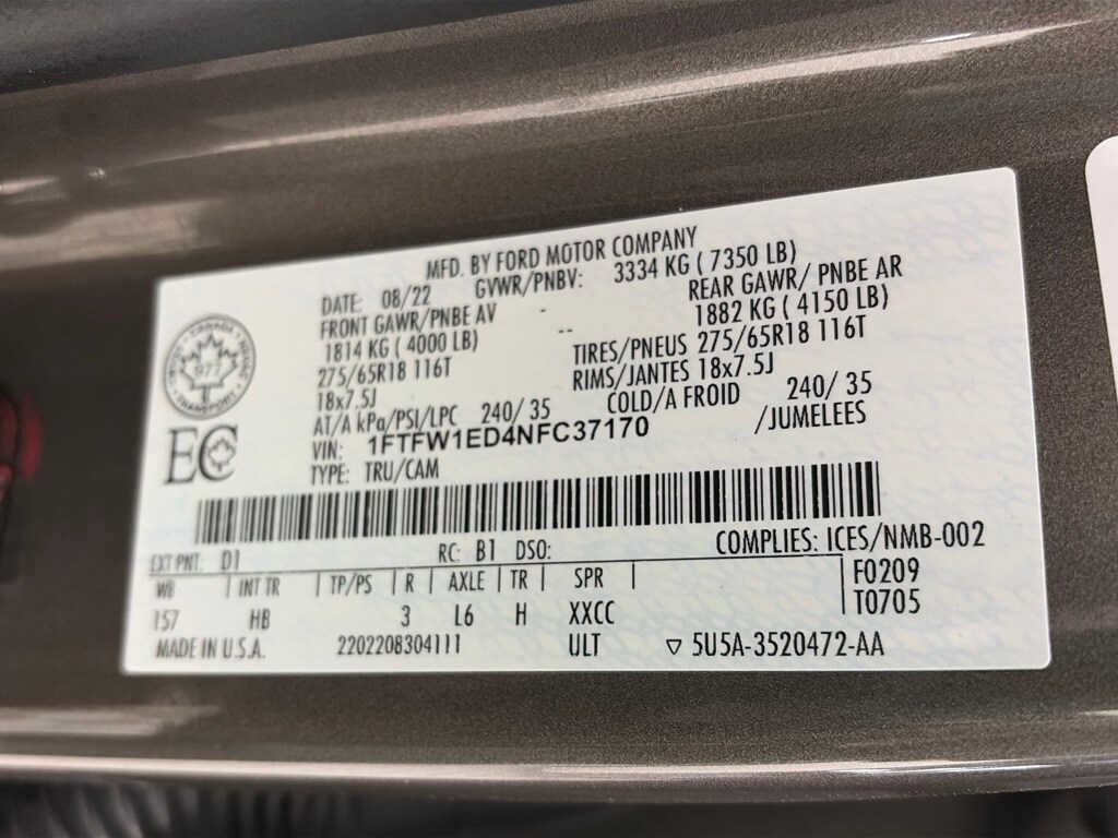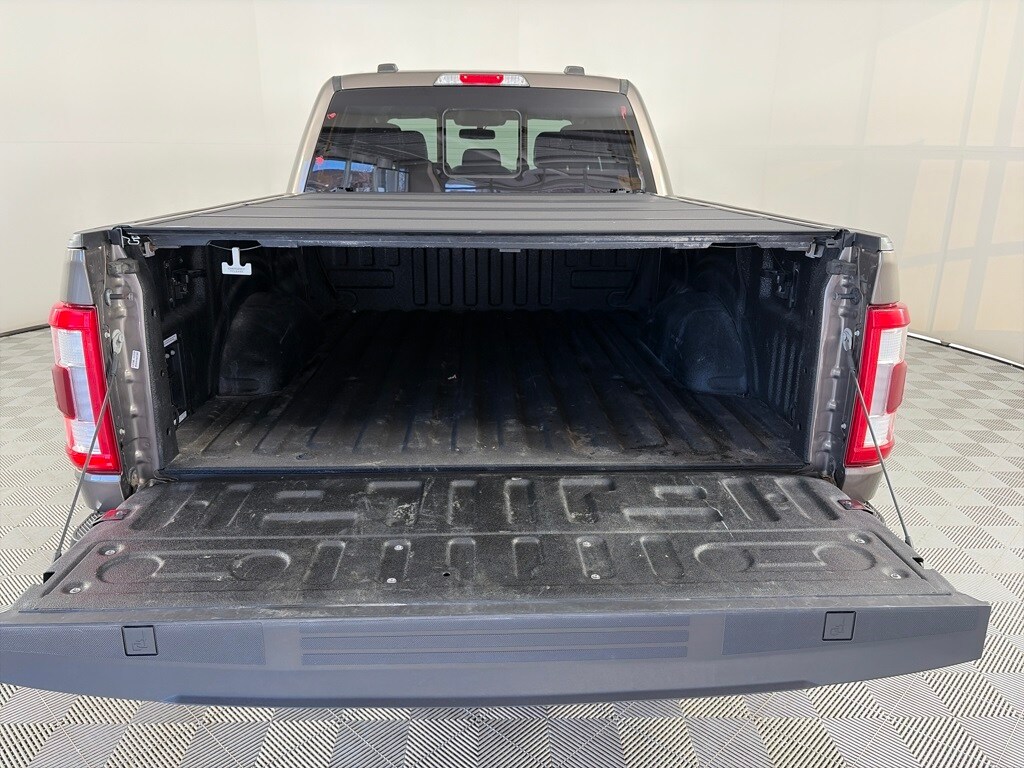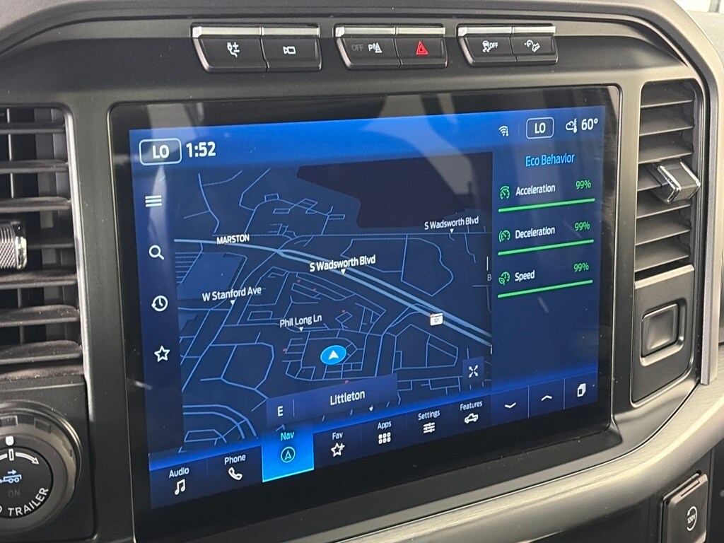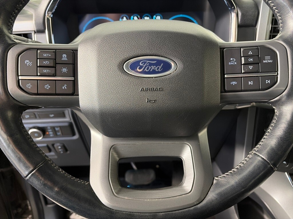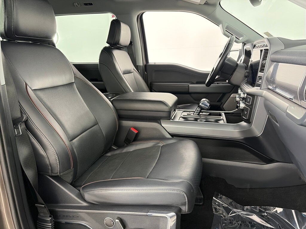 EQUIPMENT GROUP 502A HIGH Rain-Sensing Wipers, Power Tilt/Telescoping Steering Column w/Memory, Onboard 400W Outlet, 2nd outlet in the console and an additional outlet in the bed, Lariat Chrome Appearance Package, 2 chrome front tow hooks, Chrome Single-Tip Exhaust, 6 Bright Polished Running Board, Chrome Door & Tailgate Handles w/Body-Color Bezel, Wheels: 18 Chrome-Like PVD, Chrome 2-Bar Grille w/4 Minor Bars, painted silver surround and background mesh, Chrome Skull Caps on Exterior Mirrors, Radio: B&O Sound System by Bang & Olufsen, HD radio and 8 speakers including subwoofer, 2nd Row Heated Seats, Power Glass Sideview Mirr w/Chrome Skull Caps, power-folding, heat, turn signal, memory, auto-dimming feature (drivers side) and high-intensity LED security approach lamps, Universal, ENGINE: 3.5L POWERBOOST FULL-HYBRID V6 GVWR: 7,350 lbs Payload Package, Electronic Locking w/3.73 Axle Ratio, FORD CO-PILOT360 ASSIST 2.0 Evasive Steering Assist, Intelligent Adaptive Cruise Control w/Stop & Go, lane centering, Speed Sign Recognition, Connected Built-In Navigation, Navigation services require SYNC4 and FordPass Connect (optional on select vehicles), complimentary connect service and the FordPass app (see FordPass Terms for details), Eligible vehicles receive a complimentary 90-day trial of navigation services that begins on the new vehicle warranty start date, Customers must unlock the navigation service trial by activating the eligible vehicle w/a FordPass member account, If not subscribed by the end of the complimentary period, the navigation service will terminate, Connected service and features depend on compatible AT&T network availability, Evolving technology/cellular. Ford LARIAT with Stone Gray exterior and Black interior features a V6 Cylinder Engine with 400 HP at 6000 RPM*.