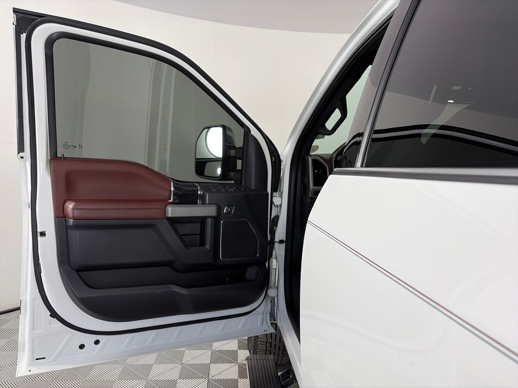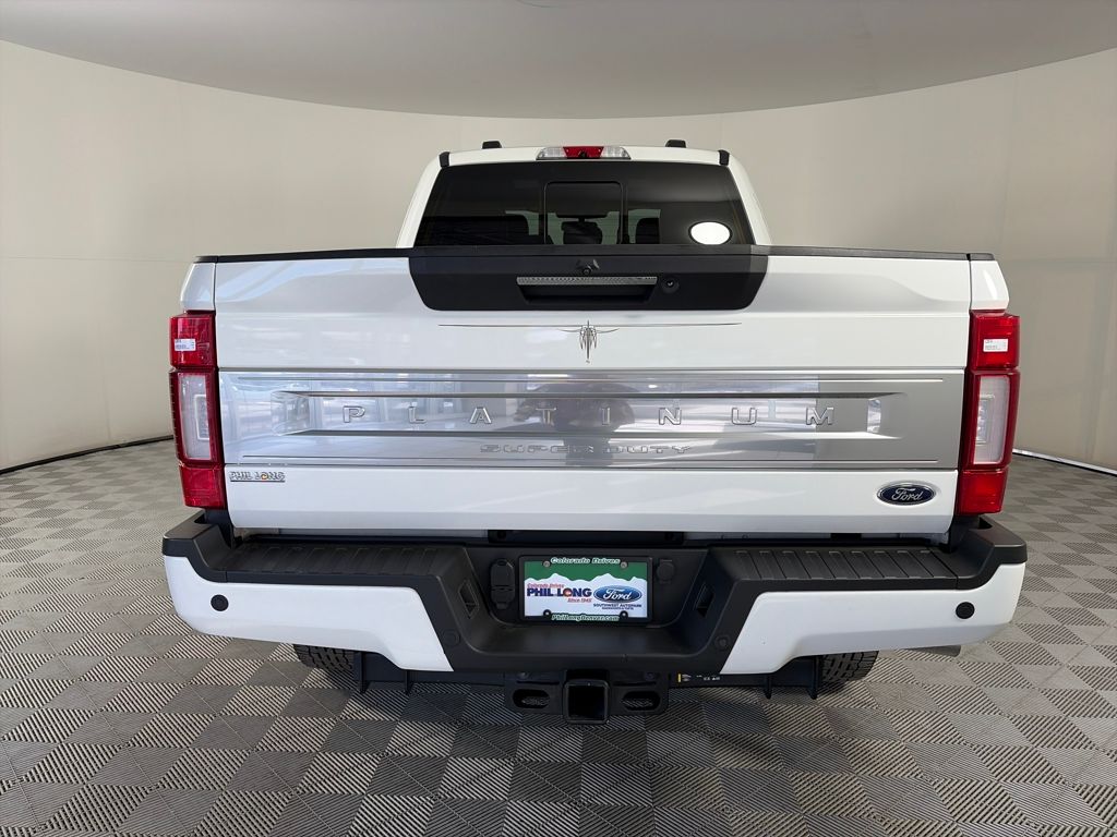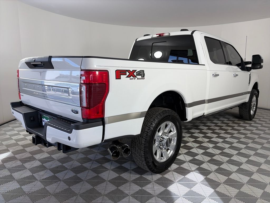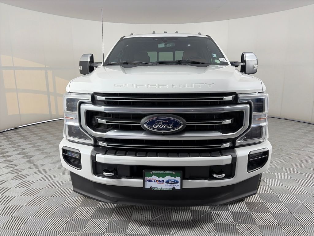 ENGINE: 6.7L 4V OHV POWER STROKE V8 TURBO DIESEL B20 manual push-button engine-exhaust braking and intelligent oil-life monitor, 240 Amp Alternator (67D), 34 Gallon Fuel Tank, GVWR: 11,500 lb Payload Package, 3.31 Axle Ratio, Dual 78-AH 750 CCA Batteries, TWIN PANEL POWER MOONROOF map lights and moonroof switches, TOUGH BED SPRAY-IN BEDLINER tailgate-guard, black box bed tie-down hooks and black bed attachment bolts, ELECTRONIC-LOCKING W/3.55 AXLE RATIO, TRANSMISSION: TORQSHIFT 10-SPEED AUTOMATIC SelectShift and selectable drive modes: normal, tow/haul, eco, deep sand/snow and slippery (STD). Ford Platinum with Star White Metallic Tri-Coat exterior and Black/Dark Marsala interior features a 8 Cylinder Engine with 475 HP at 2600 RPM*.