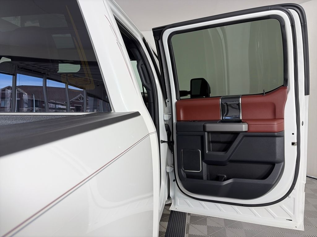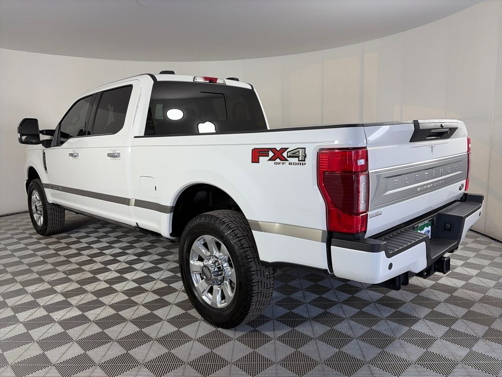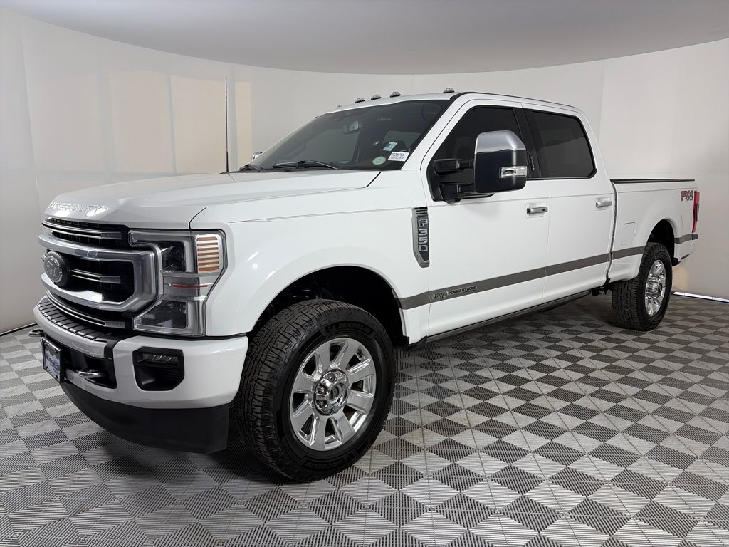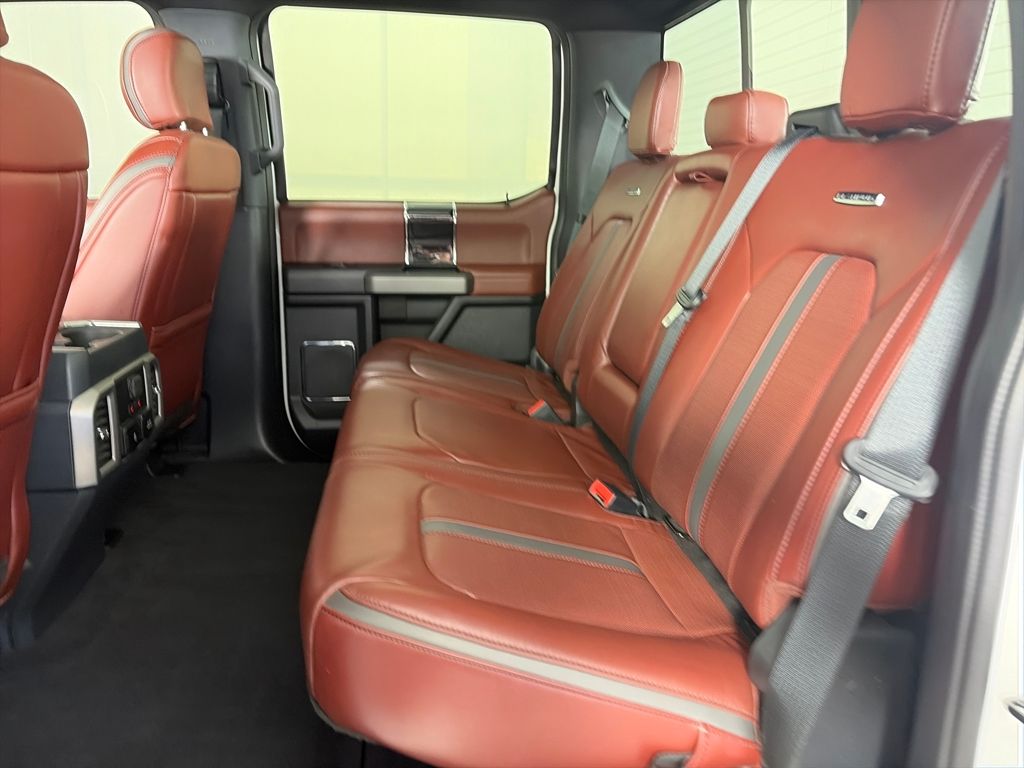 ENGINE: 6.7L 4V OHV POWER STROKE V8 TURBO DIESEL B20 manual push-button engine-exhaust braking and intelligent oil-life monitor, 240 Amp Alternator (67D), 34 Gallon Fuel Tank, GVWR: 11,500 lb Payload Package, 3.31 Axle Ratio, Dual 78-AH 750 CCA Batteries, TWIN PANEL POWER MOONROOF map lights and moonroof switches, TOUGH BED SPRAY-IN BEDLINER tailgate-guard, black box bed tie-down hooks and black bed attachment bolts, ELECTRONIC-LOCKING W/3.55 AXLE RATIO, TRANSMISSION: TORQSHIFT 10-SPEED AUTOMATIC SelectShift and selectable drive modes: normal, tow/haul, eco, deep sand/snow and slippery (STD). Ford Platinum with Star White Metallic Tri-Coat exterior and Black/Dark Marsala interior features a 8 Cylinder Engine with 475 HP at 2600 RPM*.
