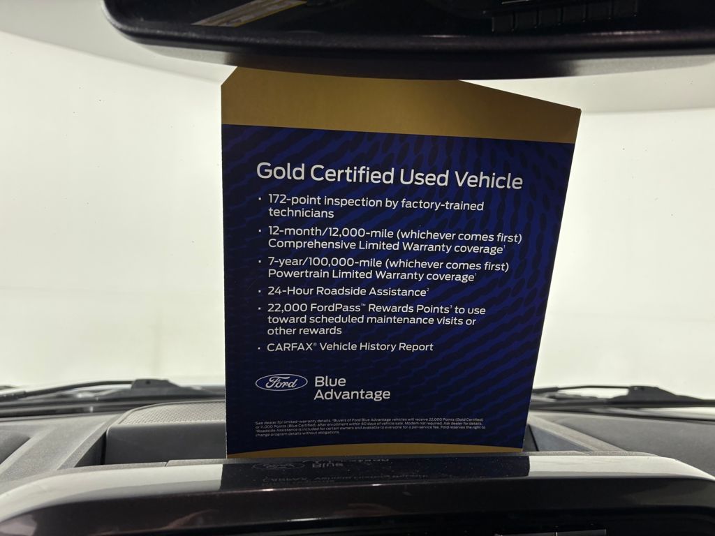 Ford Gold Certified includes:172 point vehicle inspection performed by a Ford Certified technician. 12-month/12,000-mile Comprehensive Limited Warranty coverage 7-year/100,000-mile Powertrain Limited Warranty coverage Gold Certification includes 22,000 FordPass Rewards Points Comprehensive Coverage: 12 months or 12,000 miles, whichever comes first, from the expiration of the new-v