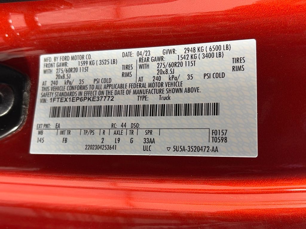 EQUIPMENT GROUP 302A HIGH Class IV Trailer Hitch Receiver, towing capability up to TBD lbs, on 3.3L V6 PFDI engine (99B) and 2.7L EcoBoost engine (99P) or up to TBD lbs, on 3.5L EcoBoost engine (998) and 5.0L V8 engine (995), 7/4-pin connector, class IV trailer hitch receiver, smart trailer tow connector ( BLIS w/trailer tow coverage where BLIS is available), XLT Chrome Appearance Package, lower grille trim, Chrome Single-Tip Exhaust, Tires: 275/65R18 BSW Automatic Transmission, Chrome Door & Tailgate Handles w/Body-Color Bezel, bezel on side doors and black on tailgate, Wheels: 18 Chrome-Like PVD, 2-Bar Style Grille w/Chrome 2 Minor Bars, silver painted surround and black background mesh, Bright Polished Step Bars, Zone Lighting, Intelligent Access w/Push Button Start, approach detection, SecuriCode, WHEELS: 20 6-SPOKE DARK ALLOY PAINTED ALUMINUM Tires: 275/60R20 BSW AT, ENGINE: 2.7L V6 ECOBOOST 3.55 Axle Ratio, GVWR: 6,500 lbs Payload Package, ELECTRONIC LOCKING W/3.55 AXLE RATIO, XLT SPORT APPEARANCE PACKAGE body-color wheellip moldings and unique interior finish, Box Side Decals, Chrome Single-Tip Exhaust, Body-Color Door & Tailgate Handles, body-color bezel on side doors and black on tailgate, Tires: 275/65R18 BSW Automatic Transmission, Wheels: 18 6-Spoke Machined Aluminum, gloss black painted pockets, Accent-Color Step Bars, Body-Color Front & Rear Bumpers, body-color front fascia, Black 2-Bar Style Grille w/Black Surround/Accents, TRANSMISSION: ELECTRONIC 10-SPEED AUTOMATIC selectable drive modes: normal, ECO, sport, tow/haul, slippery, deep snow/sand and mud/rut (STD). Ford XLT with Hot Pepper Red Tinted Clearcoat exterior and Black interior features a V6 Cylinder Engine with 290 HP at 6500 RPM*.