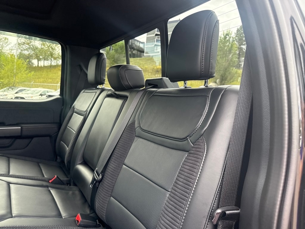 Equipment Group 801A Standard, GVWR: 7,300 lbs Payload Package, Moonroof & Tailgate (Power Tailgate and Twin Panel Moonroof), Ford Certified, 4WD, 17" Cast Aluminum Wheels, 18 Speakers, 4-Wheel Disc Brakes, ABS brakes, Adaptive suspension, Adjustable pedals, Air Conditioning, Alloy wheels, AM/FM radio: SiriusXM with 360L, Auto High-beam Headlights, Auto tilt-away steering wheel, Auto-dimming door mirrors, Auto-dimming Rear-View mirror, Automatic temperature control, Brake assist, Bumpers: body-color, Compass, Delay-off headlights, Driver door bin, Driver vanity mirror, Dual front impact airbags, Dual front side impact airbags, Electronic Locking w/4.10 Axle Ratio, Electronic Stability Control, Emergency communication system, Engine Block Heater, Exterior Parking Camera Rear, Front anti-roll bar, Front Bucket Seats, Front Center Armrest, Front dual zone A/C, Front fog lights, Front License Plate Bracket, Front reading lights, Front wheel independent suspension, Fully automatic headlights, Garage door transmitter, Heated door mirrors, Heated front seats, Heated rear seats, Heated steering wheel, Illuminated entry, Inclination/Intrusion Sensor Removal, Lane Departure Warning System, Leather Trim Seats w/Heated 2nd Row, Low tire pressure warning, Memory seat, Navigation system: Connected Navigation, Occupant sensing airbag, Outside temperature display, Overhead airbag, Overhead console, Panic alarm, Passenger door bin, Passenger vanity mirror, Pedal memory, Power door mirrors, Power driver seat, Power passenger seat, Power steering, Power windows, Radio data system, Radio: B&O Unleashed Sound System by Bang & Olufsen, Rain sensing wipers, Rear reading lights, Rear step bumper, Rear window defroster, Remote keyless entry, Security system, Speed control, Speed-sensing steering, Split folding rear seat, Steering Wheel Heat Removal (DISC), Steering wheel memory, Steering wheel mounted audio controls, SYNC 4 w/Enhanced Voice Recognition, Tachometer, Telescoping steering wheel, Tilt steering wheel, Tough Bed Spray-In Bedliner, Traction control, Trip computer, Turn signal indicator mirrors, Variably intermittent wipers, and Ventilated front seats.