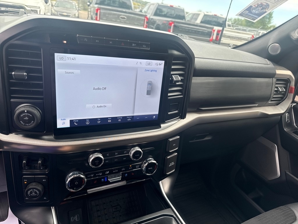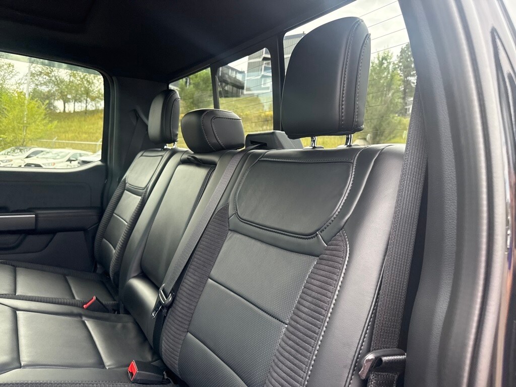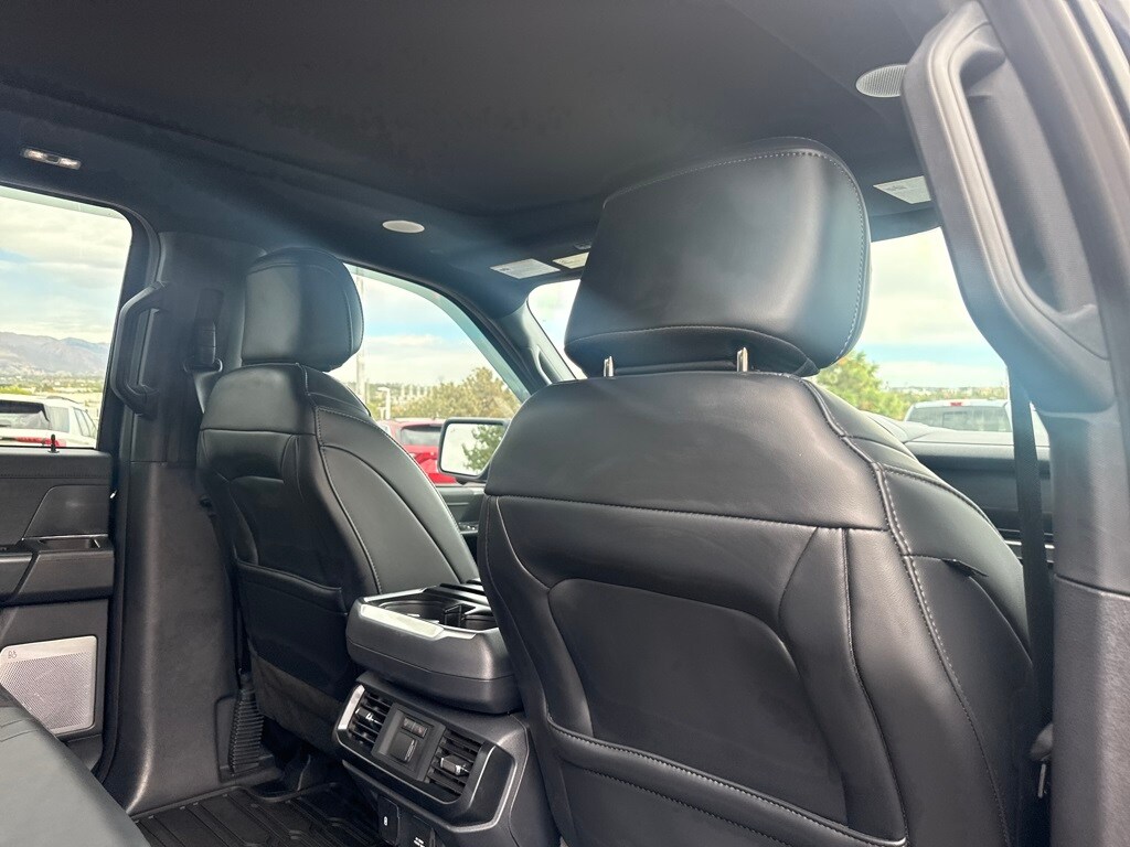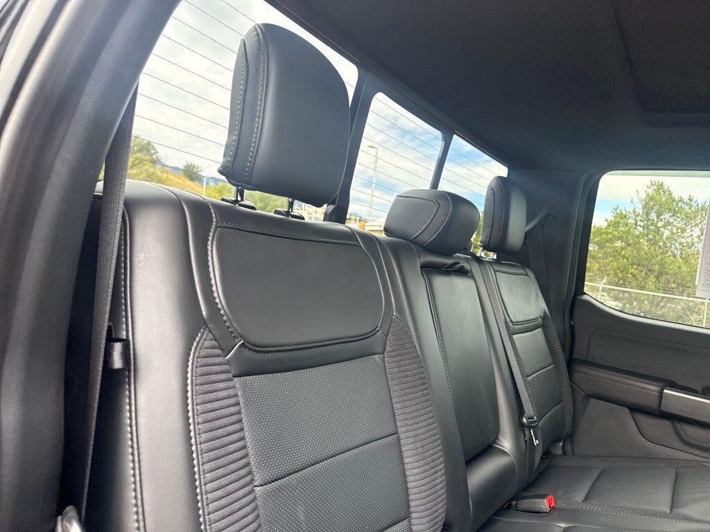 Equipment Group 801A Standard, GVWR: 7,300 lbs Payload Package, Moonroof & Tailgate (Power Tailgate and Twin Panel Moonroof), Ford Certified, 4WD, 17" Cast Aluminum Wheels, 18 Speakers, 4-Wheel Disc Brakes, ABS brakes, Adaptive suspension, Adjustable pedals, Air Conditioning, Alloy wheels, AM/FM radio: SiriusXM with 360L, Auto High-beam Headlights, Auto tilt-away steering wheel, Auto-dimming door mirrors, Auto-dimming Rear-View mirror, Automatic temperature control, Brake assist, Bumpers: body-color, Compass, Delay-off headlights, Driver door bin, Driver vanity mirror, Dual front impact airbags, Dual front side impact airbags, Electronic Locking w/4.10 Axle Ratio, Electronic Stability Control, Emergency communication system, Engine Block Heater, Exterior Parking Camera Rear, Front anti-roll bar, Front Bucket Seats, Front Center Armrest, Front dual zone A/C, Front fog lights, Front License Plate Bracket, Front reading lights, Front wheel independent suspension, Fully automatic headlights, Garage door transmitter, Heated door mirrors, Heated front seats, Heated rear seats, Heated steering wheel, Illuminated entry, Inclination/Intrusion Sensor Removal, Lane Departure Warning System, Leather Trim Seats w/Heated 2nd Row, Low tire pressure warning, Memory seat, Navigation system: Connected Navigation, Occupant sensing airbag, Outside temperature display, Overhead airbag, Overhead console, Panic alarm, Passenger door bin, Passenger vanity mirror, Pedal memory, Power door mirrors, Power driver seat, Power passenger seat, Power steering, Power windows, Radio data system, Radio: B&O Unleashed Sound System by Bang & Olufsen, Rain sensing wipers, Rear reading lights, Rear step bumper, Rear window defroster, Remote keyless entry, Security system, Speed control, Speed-sensing steering, Split folding rear seat, Steering Wheel Heat Removal (DISC), Steering wheel memory, Steering wheel mounted audio controls, SYNC 4 w/Enhanced Voice Recognition, Tachometer, Telescoping steering wheel, Tilt steering wheel, Tough Bed Spray-In Bedliner, Traction control, Trip computer, Turn signal indicator mirrors, Variably intermittent wipers, and Ventilated front seats.