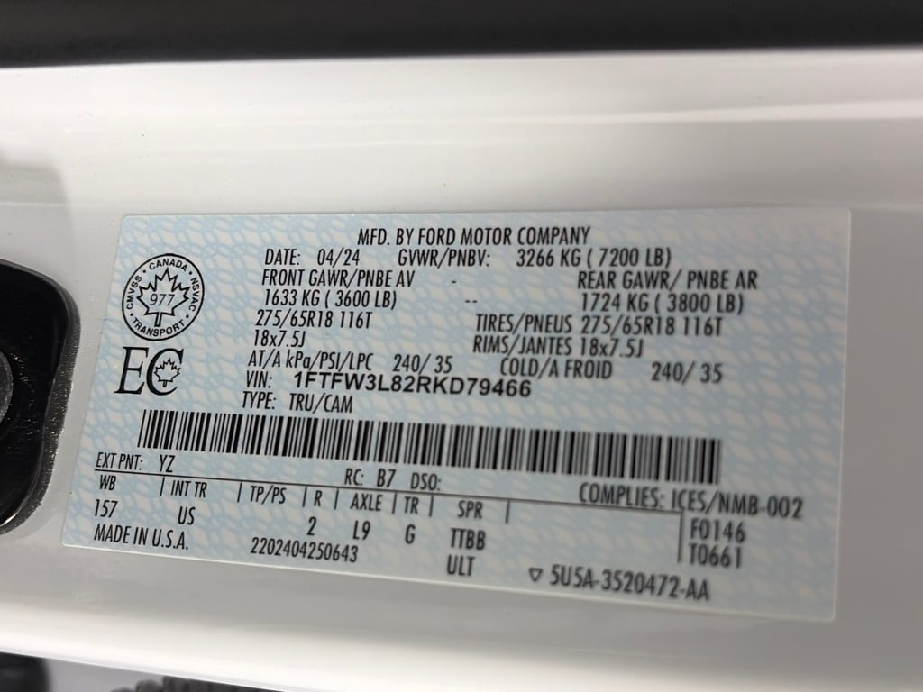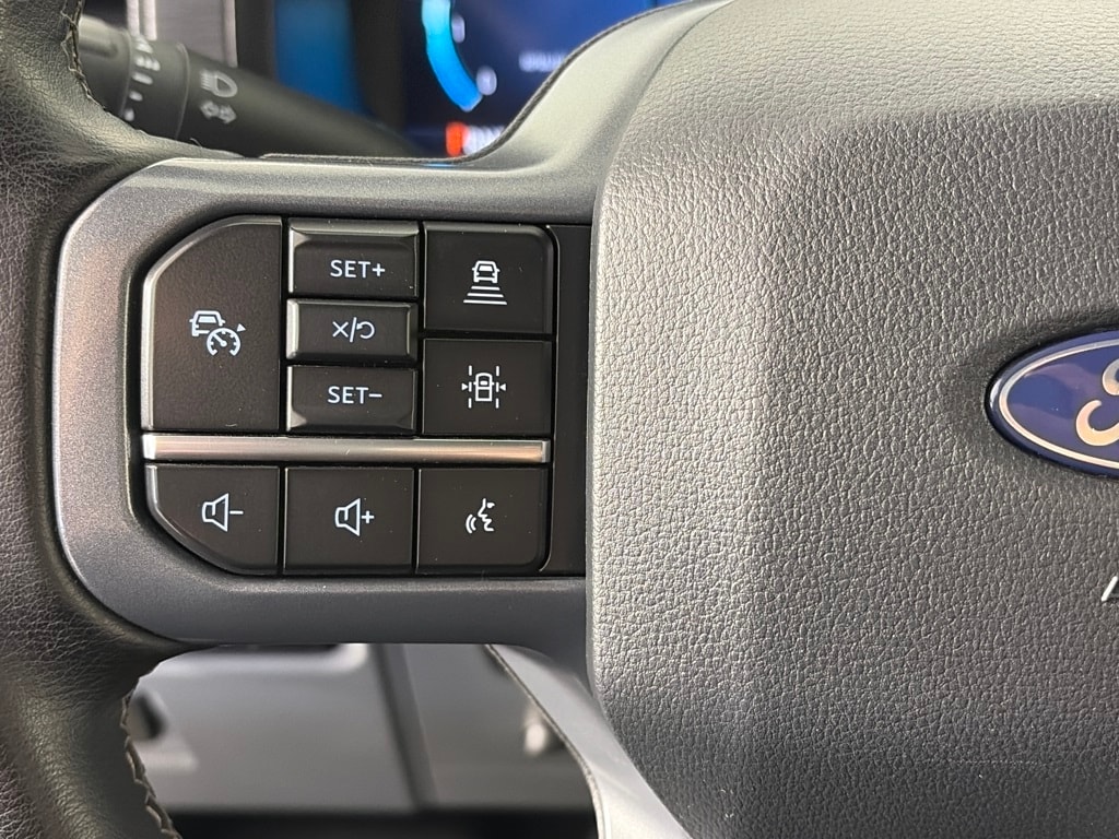 EQUIPMENT GROUP 302A MID Adaptive Cruise Control w/Stop & Go, lane centering, Speed Sign Recognition, Intelligent Access w/Push Button Start, approach detection, 400W Cab & Bed Outlets, Ford BlueCruise Equipped (90-Day Trial), See ford.com/bluecruise for version details, Power-Sliding Rear Window, Remote Start System w/Remote Tailgate Release, Heated Front Seats, Power Glass Heated Sideview Mirrors, manual folding, turn signals, high-intensity LED security approach lamps, LED sideview mirror spotlights and chrome skull caps, Auto-Dimming Rearview Mirror, ELECTRONIC LOCKING W/3.55 AXLE RATIO, TRANSMISSION: ELECTRONIC 10-SPEED AUTOMATIC SelectShift w/progressive range select and selectable drive modes: normal, ECO, sport, tow/haul, slippery, deep snow/sand and mud/rut (STD). Ford XLT with Oxford White exterior and Medium Dark Slate interior features a 8 Cylinder Engine with 400 HP at 6000 RPM*.