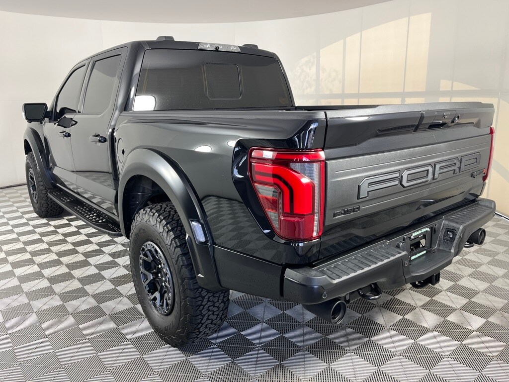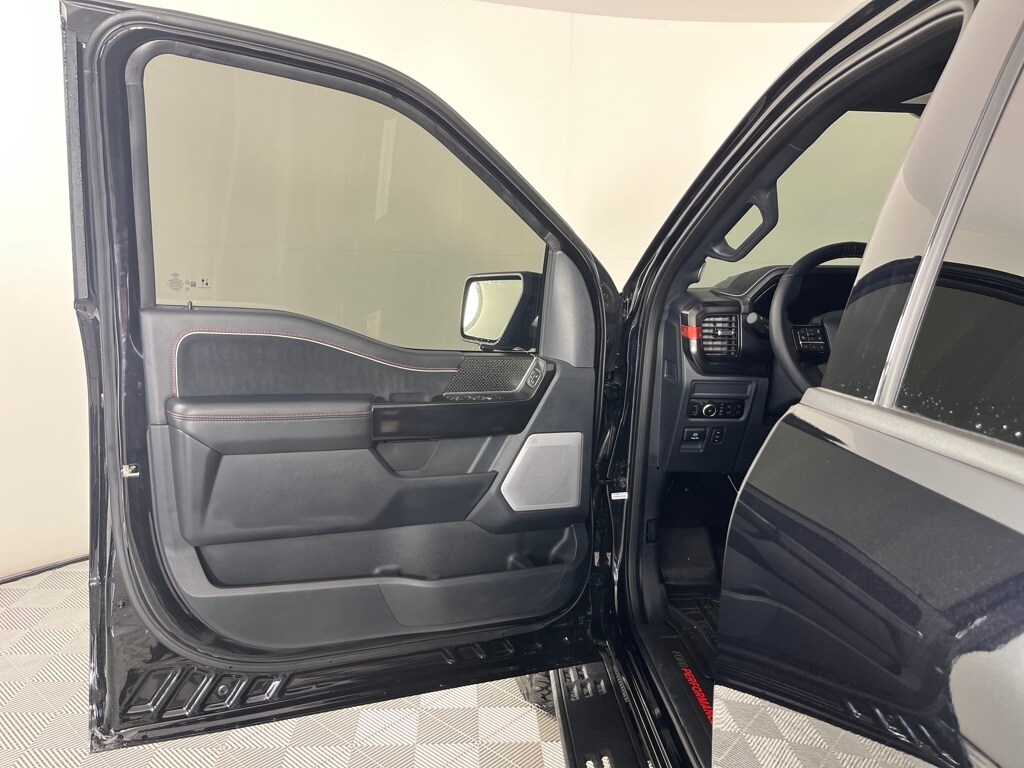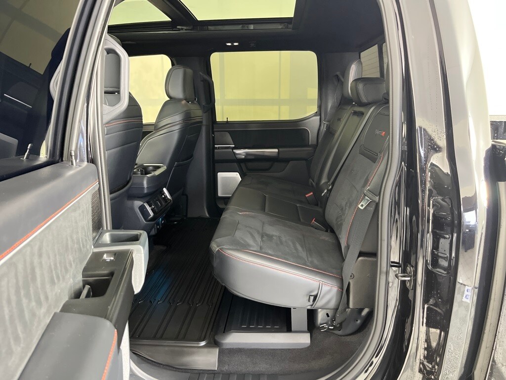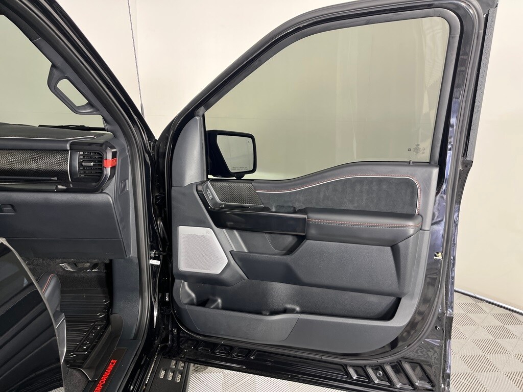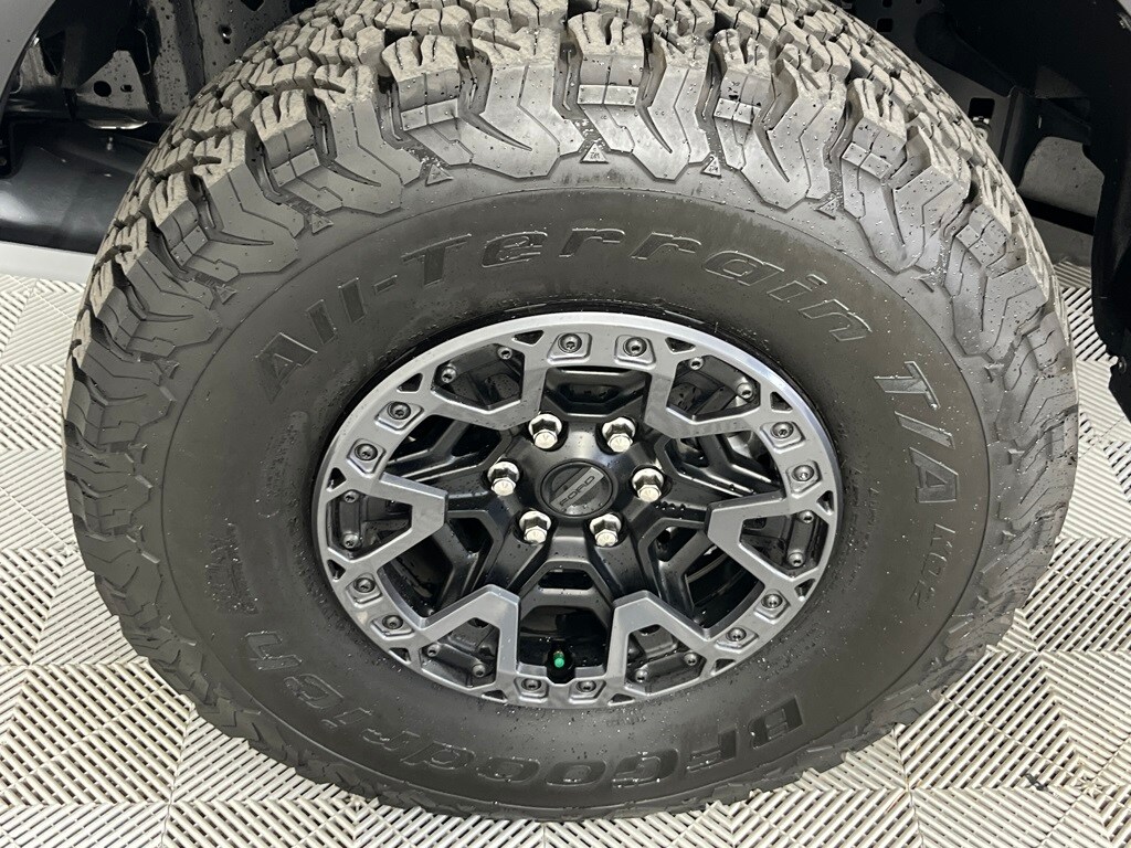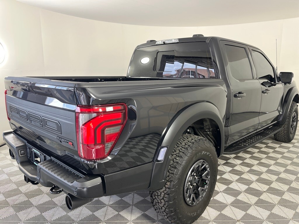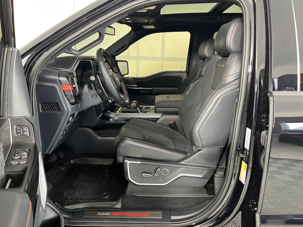 EQUIPMENT GROUP 803A RAPTOR R Raptor R Exterior Graphics, GVWR: 7,500 lbs, Interior Code Orange Raptor R Badging, Raptor R Exterior Theme, Modular Front Bumper, Removes 2KW Pro Power Onboard, Engine: 5.2L Supercharged V8, Raptor R Unique Hood Vent w/R Badge, Raptor R Interior Theme, Unique Carbon Fiber Appliques, Raptor R Unique Grille, Dual Valve Shocks, Raptor R Badge Tailgate Applique, Code Orange Stitching Doors & Instrument Panel, Wheels: Raptor R Unique 17 Forged Aluminum, Bead lock capable, Tires: 37x12.5R17 BSW All-Terrain, Code Orange Front Tow Hooks, Upgraded Dual Exhaust, TWIN PANEL MOONROOF, TRANSMISSION: ELECTRONIC 10-SPEED AUTOMATIC SelectShift w/paddle shifters and terrain management modes: normal, sport, tow-haul, slippery, rock crawl, off-road and baja (STD). Ford Raptor with Agate Black exterior and Black w/ Orange Stitching interior features a 8 Cylinder Engine with 450 HP at 5850 RPM*.