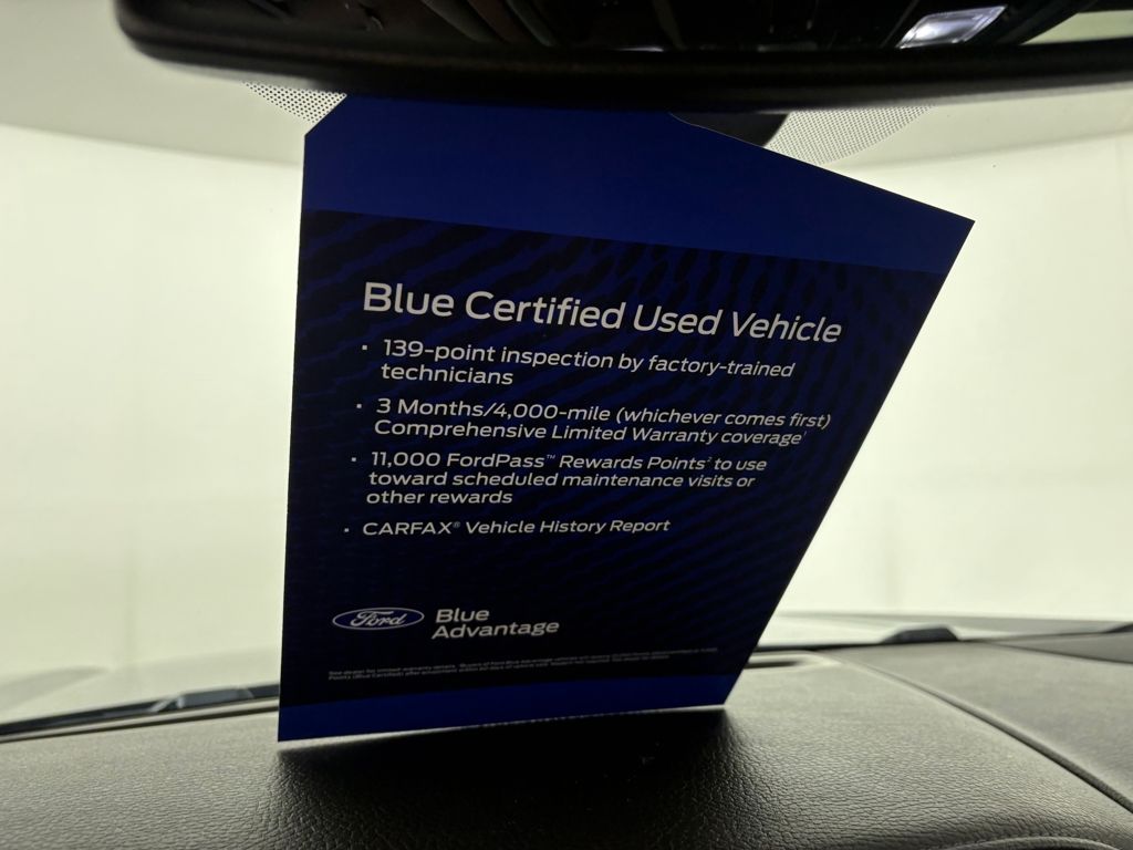 Ford Blue Certified includes:139 point vehicle inspection performed by an ASE Certified technician 3-month/4,000-mile Comprehensive Limited Warranty coverage that is fully competitive with other online retailers Blue Certification includes 11,000 FordPass Rewards Points For other manufacturers not listed above, Comprehensive Coverage is provided for 3 months or 4,000 miles, whichever comes first, from the signature date of the Ford Blue Advantage â" Blue Certified purchase