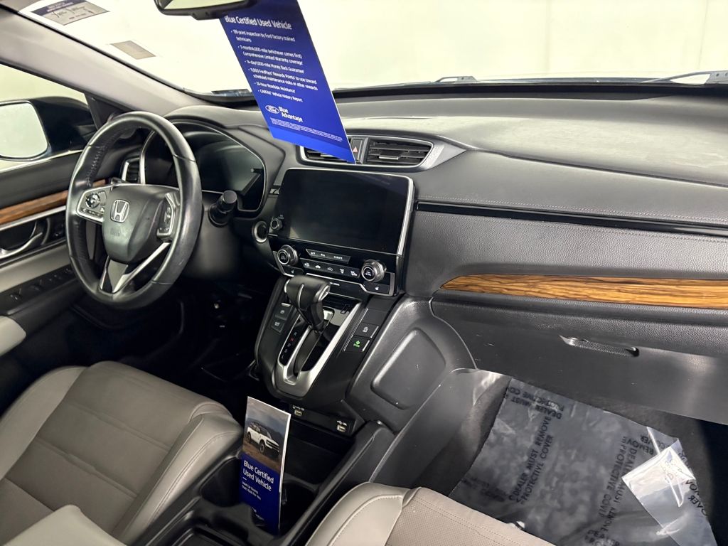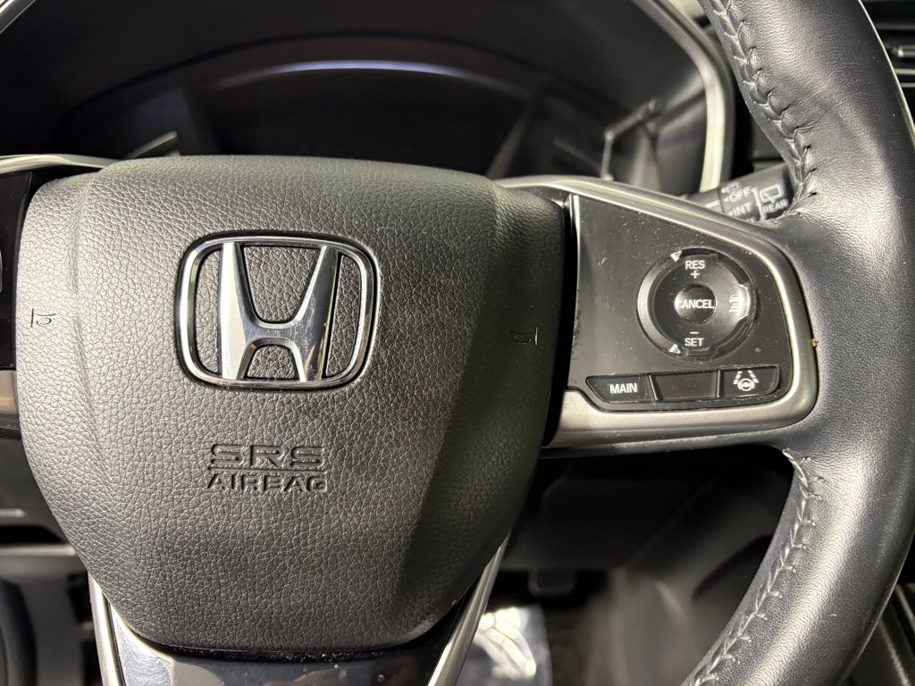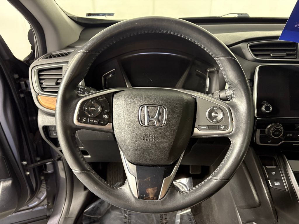 The interior of the 2021 Honda CR-V AWD EX-L is designed with driver comfort in mind. Smart device mirroring allows seamless integration of your smartphone with the infotainment system, keeping you connected while you drive. The **cruise control with steering wheel mounted controls** ensures that you can maintain your desired speed without distraction.