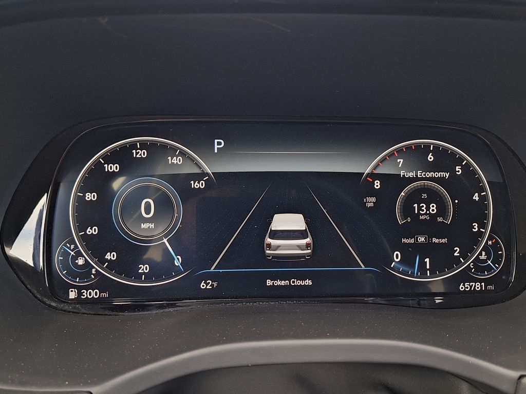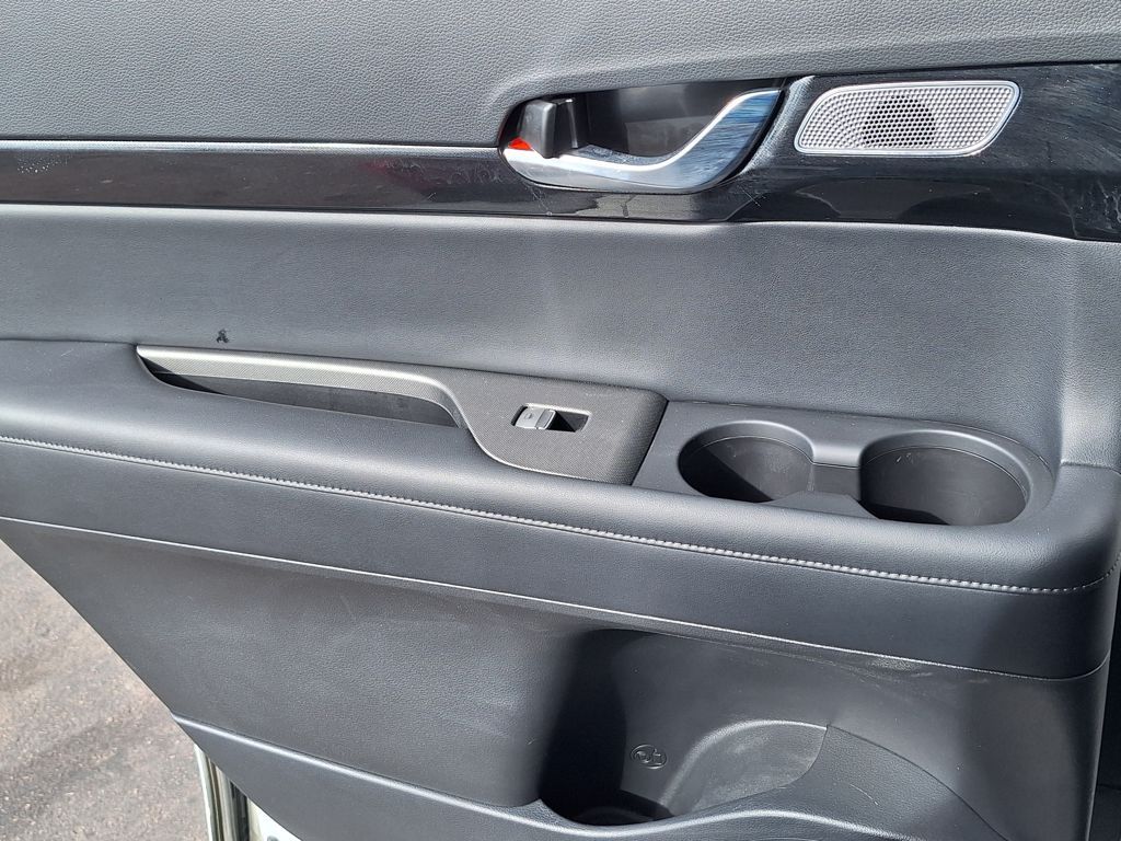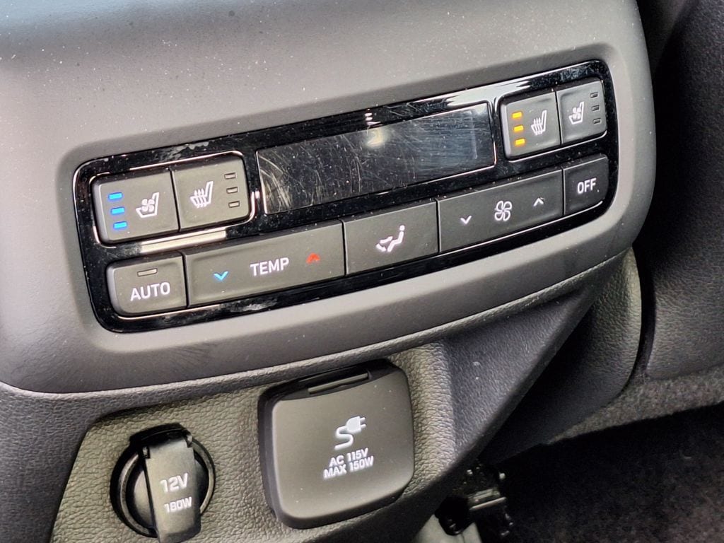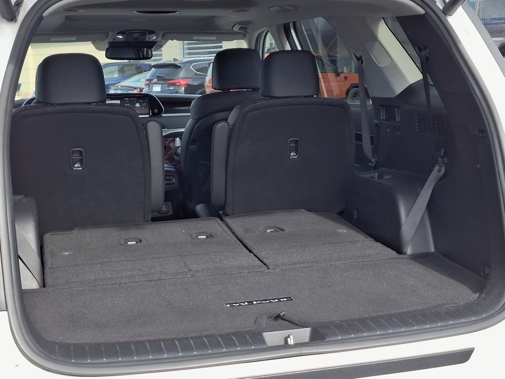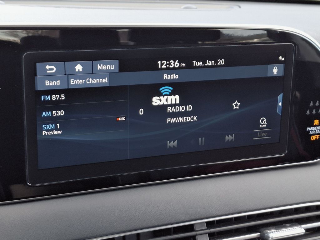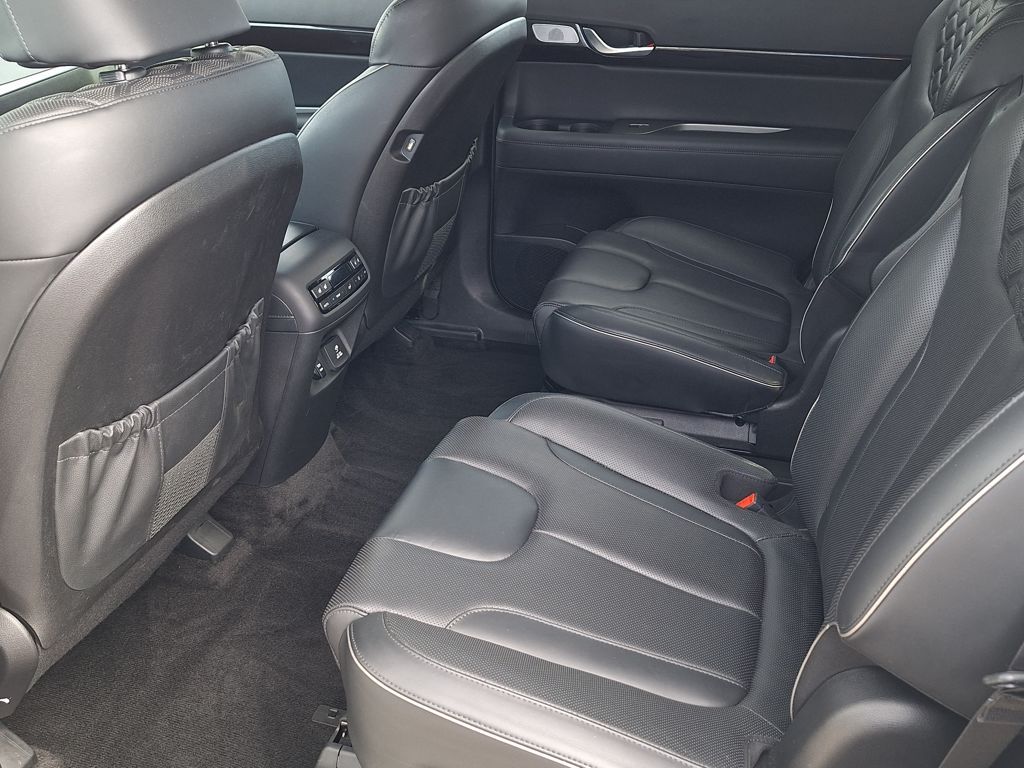 Option Group 01, Hyundai Certified Used Vehicles Certified, 12 Speakers, 3.648 Axle Ratio, 3rd row seats: split-bench, 4-Wheel Disc Brakes, ABS brakes, Air Conditioning, Alloy wheels, AM/FM radio: SiriusXM, Apple CarPlay & Android Auto, Auto High-beam Headlights, Auto-dimming Rear-View mirror, Auto-leveling suspension, Automatic temperature control, Brake assist, Bumper Applique, Bumpers: body-color, Cargo Cover/Screen, Cargo Net, Cargo Tray, Carpeted Floor Mats, Compass, Delay-off headlights, Driver door bin, Driver vanity mirror, Dual front impact airbags, Dual front side impact airbags, Electronic Stability Control, Emergency communication system: Blue Link Connected Car Service (3-year complimentary subscription), Four wheel independent suspension, Front anti-roll bar, Front Bucket Seats, Front Center Armrest, Front dual zone A/C, Front reading lights, Fully automatic headlights, Garage door transmitter: HomeLink, harman/kardon® Speakers, Heads-Up Display, Heated & Ventilated Front Bucket Seats, Heated door mirrors, Heated front seats, Heated rear seats, Heated steering wheel, Illuminated entry, Knee airbag, Low tire pressure warning, Memory seat, Navigation System, Occupant sensing airbag, Outside temperature display, Overhead airbag, Overhead console, Panic alarm, Passenger door bin, Passenger vanity mirror, Power door mirrors, Power driver seat, Power Liftgate, Power moonroof, Power passenger seat, Power steering, Power windows, Premium Nappa Leather Seat Trim, Radio data system, Radio: AM/FM/MP3 Premium Audio System, Rain sensing wipers, Rear air conditioning, Rear anti-roll bar, Rear reading lights, Rear window defroster, Rear window wiper, Reclining 3rd row seat, Remote keyless entry, Security system, Speed control, Speed-sensing steering, Split folding rear seat, Spoiler, Steering wheel mounted audio controls, Tachometer, Telescoping steering wheel, Tilt steering wheel, Traction control, Trip computer, Turn signal indicator mirrors, Variably intermittent wipers, Ventilated front seats, Ventilated rear seats, Wheel Locks, and Wheels: 20" x 7.5J Split 5-Spoke Machined Alloy.