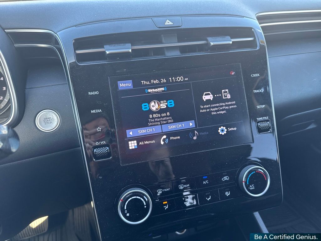 Option Group 01, Hyundai Certified Used Vehicles Certified, 3.648 Axle Ratio, 4-Wheel Disc Brakes, 6 Speakers, ABS brakes, Air Conditioning, Alloy wheels, AM/FM radio: SiriusXM, Apple CarPlay & Android Auto, Auto High-beam Headlights, Brake assist, Bumpers: body-color, Cargo Cover, Cargo Net, Carpeted Floor Mats, Delay-off headlights, Driver door bin, Driver vanity mirror, Dual front impact airbags, Dual front side impact airbags, Electronic Stability Control, Emergency communication system: Blue Link Connected Car Service (3-year complimentary subscription), Four wheel independent suspension, Front and Rear Mudguards, Front anti-roll bar, Front Bucket Seats, Front Center Armrest, Front reading lights, Fully automatic headlights, Heated door mirrors, Heated Front Bucket Seats, Heated front seats, Illuminated entry, Low tire pressure warning, Occupant sensing airbag, Outside temperature display, Overhead airbag, Overhead console, Panic alarm, Passenger door bin, Passenger vanity mirror, Power door mirrors, Power driver seat, Power steering, Power windows, Radio data system, Radio: AM/FM/HD/SiriusXM Audio System, Rear anti-roll bar, Rear seat center armrest, Rear window defroster, Rear window wiper, Remote keyless entry, Roof rack: rails only, Security system, Speed control, Split folding rear seat, Spoiler, Stain & Odor Resistant Cloth Seat Trim, Steering wheel mounted audio controls, Tachometer, Telescoping steering wheel, Tilt steering wheel, Tow Hitch, Traction control, Trip computer, Turn signal indicator mirrors, Variably intermittent wipers, Wheel Locks, and Wheels: 17" x 7.0J" Alloy.