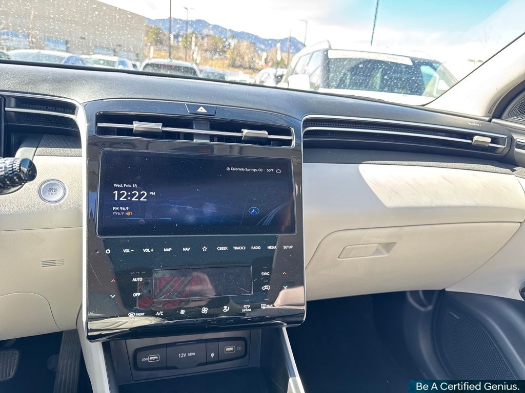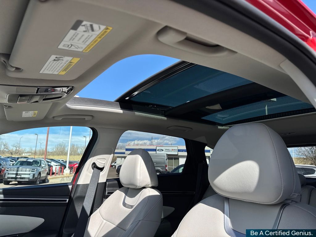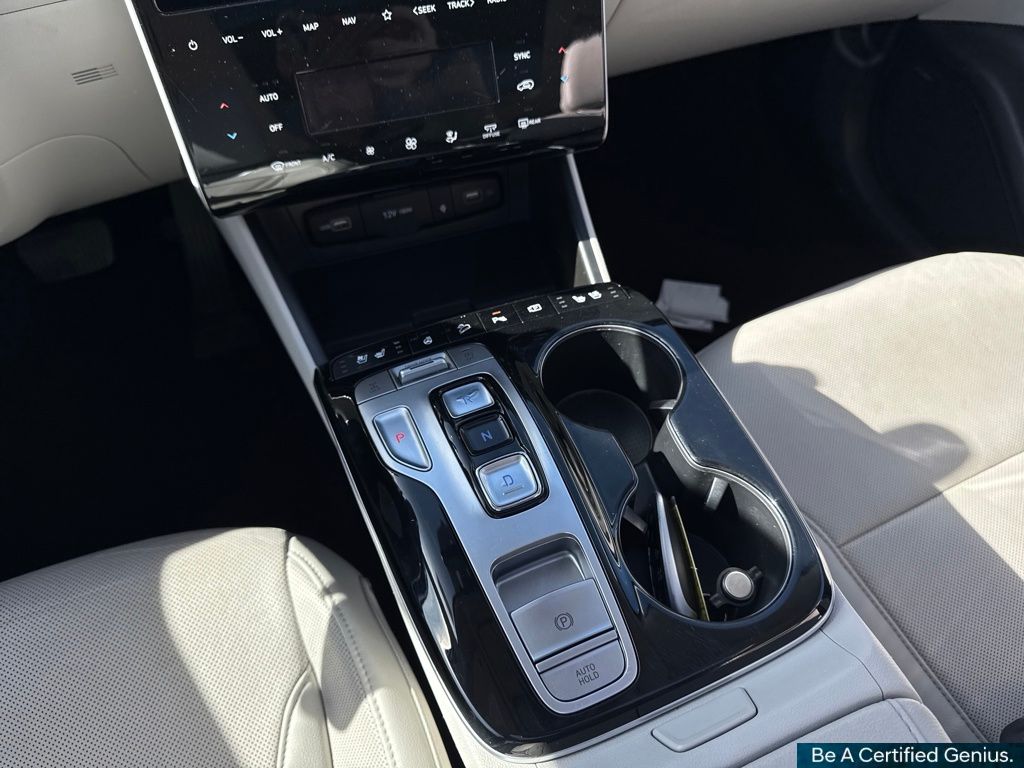 Option Group 01, Hyundai Certified Used Vehicles Certified, AWD, 3.648 Axle Ratio, 4-Wheel Disc Brakes, 8 Speakers, ABS brakes, Air Conditioning, Alloy wheels, AM/FM radio: SiriusXM, Apple CarPlay & Android Auto, Auto High-beam Headlights, Auto-dimming Rear-View mirror, Automatic temperature control, Brake assist, Bumpers: body-color, Cargo Tray, Carpeted Floor Mats, Delay-off headlights, Driver door bin, Driver vanity mirror, Dual front impact airbags, Dual front side impact airbags, Electronic Stability Control, Emergency communication system: Blue Link Connected Car Service (3-year complimentary subscription), Four wheel independent suspension, Front anti-roll bar, Front Bucket Seats, Front Center Armrest, Front dual zone A/C, Front reading lights, Fully automatic headlights, Garage door transmitter: HomeLink, Heated & Ventilated Front Bucket Seats, Heated door mirrors, Heated front seats, Heated rear seats, Heated steering wheel, Illuminated entry, Leather Seat Trim, Low tire pressure warning, Memory seat, Navigation System, Occupant sensing airbag, Outside temperature display, Overhead airbag, Overhead console, Panic alarm, Passenger door bin, Passenger vanity mirror, Power door mirrors, Power driver seat, Power Liftgate, Power moonroof, Power passenger seat, Power steering, Power windows, Radio data system, Radio: Bose Premium w/AM/FM/HD/SiriusXM Audio System, Rain sensing wipers, Rear anti-roll bar, Rear reading lights, Rear seat center armrest, Rear window defroster, Rear window wiper, Remote keyless entry, Roof rack: rails only, Security system, Speed control, Split folding rear seat, Spoiler, Steering wheel mounted audio controls, Tachometer, Telescoping steering wheel, Tilt steering wheel, Tow Hitch, Traction control, Trip computer, Turn signal indicator mirrors, Variably intermittent wipers, Ventilated front seats, and Wheels: 19" x 7.5J" Machine-Face Finish Alloy.