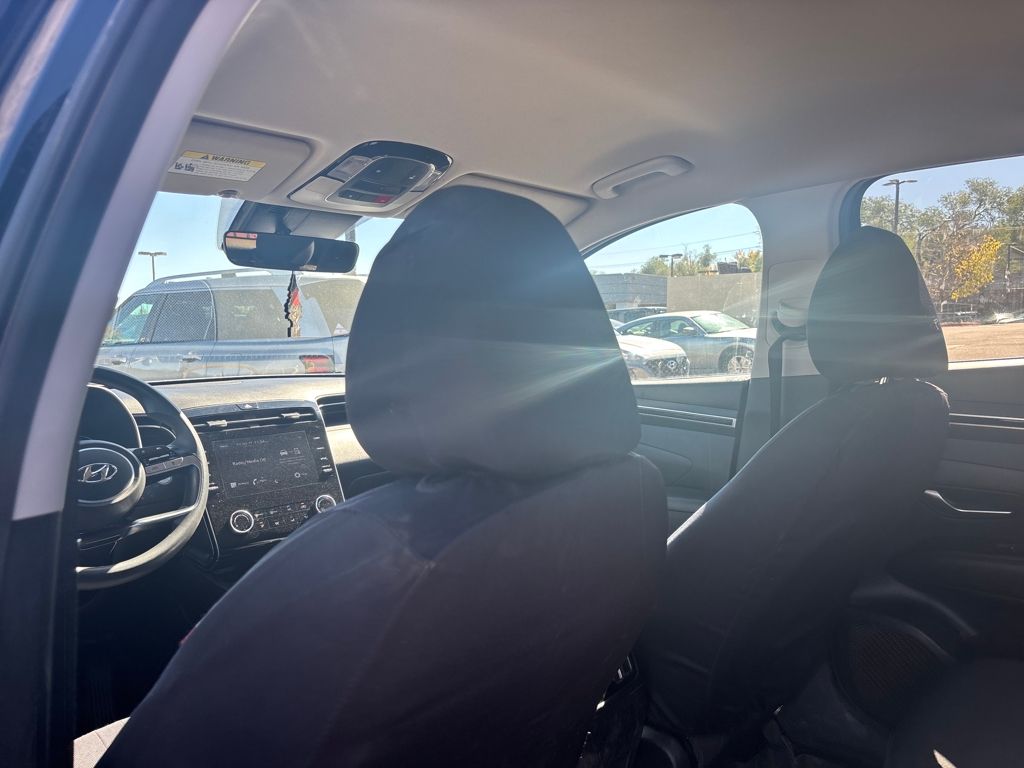 Option Group 01, Hyundai Certified Used Vehicles Certified, AWD, 3.648 Axle Ratio, 4-Wheel Disc Brakes, 6 Speakers, ABS brakes, Air Conditioning, Alloy wheels, AM/FM radio: SiriusXM, Apple CarPlay & Android Auto, Auto High-beam Headlights, Brake assist, Bumpers: body-color, Cargo Cover, Cargo Tray, Carpeted Floor Mats, Delay-off headlights, Driver door bin, Driver vanity mirror, Dual front impact airbags, Dual front side impact airbags, Electronic Stability Control, Emergency communication system: Blue Link Connected Car Service (3-year complimentary subscription), Four wheel independent suspension, Front and Rear Mudguards, Front anti-roll bar, Front Bucket Seats, Front Center Armrest, Front reading lights, Fully automatic headlights, H-Tex Seat Trim, Heated door mirrors, Heated Front Bucket Seats, Heated front seats, Illuminated entry, Low tire pressure warning, Occupant sensing airbag, Outside temperature display, Overhead airbag, Overhead console, Panic alarm, Passenger door bin, Passenger vanity mirror, Power door mirrors, Power driver seat, Power Liftgate, Power steering, Power windows, Radio data system, Radio: AM/FM/HD/SiriusXM Audio System, Rear anti-roll bar, Rear Bumper Applique, Rear seat center armrest, Rear window defroster, Rear window wiper, Remote keyless entry, Roof rack: rails only, Security system, Speed control, Split folding rear seat, Spoiler, Stain & Odor Resistant Cloth Seat Trim, Steering wheel mounted audio controls, Tachometer, Telescoping steering wheel, Tilt steering wheel, Traction control, Trip computer, Turn signal indicator mirrors, Variably intermittent wipers, and Wheels: 17" x 7.0J" Alloy.