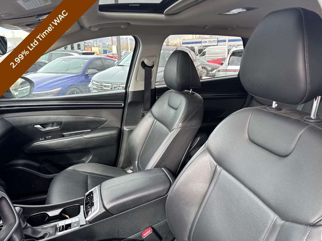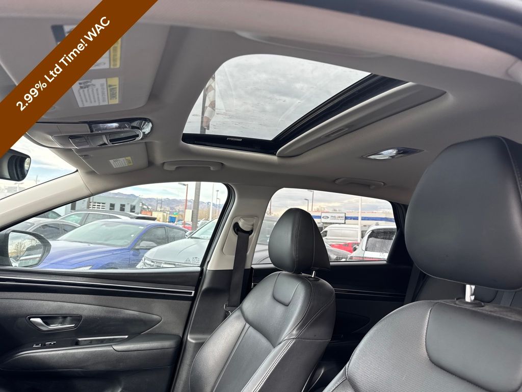 Convenience Package (10.25" Digital Instrument Cluster, Auto-Dimming Interior Mirror w/Homelink, Dual Automatic Temperature Control, H-Tex Seat Trim, Leather-Wrapped Shift Knob, Leather-Wrapped Steering Wheel, LED Interior Lights (Room, Map), Option Group 02, Power Sunroof, Ultrasonic Rear Occupant Alert, and Wheels: 19" x 7.5J" Machine-Face Finish Alloy), 3.648 Axle Ratio, 4-Wheel Disc Brakes, 6 Speakers, ABS brakes, Air Conditioning, Alloy wheels, AM/FM radio: SiriusXM, Apple CarPlay & Android Auto, Auto High-beam Headlights, Brake assist, Bumpers: body-color, Carpeted Floor Mats, Delay-off headlights, Driver door bin, Driver vanity mirror, Dual front impact airbags, Dual front side impact airbags, Electronic Stability Control, Emergency communication system: Blue Link Connected Car Service (3-year complimentary subscription), Four wheel independent suspension, Front anti-roll bar, Front Bucket Seats, Front Center Armrest, Front reading lights, Fully automatic headlights, Heated door mirrors, Heated Front Bucket Seats, Heated front seats, Illuminated entry, Low tire pressure warning, Occupant sensing airbag, Outside temperature display, Overhead airbag, Overhead console, Panic alarm, Passenger door bin, Passenger vanity mirror, Power door mirrors, Power driver seat, Power Liftgate, Power steering, Power windows, Radio data system, Radio: AM/FM/HD/SiriusXM Audio System, Rear anti-roll bar, Rear Bumper Applique, Rear seat center armrest, Rear window defroster, Rear window wiper, Remote keyless entry, Roof Rack Cross Rails (DISC), Roof rack: rails only, Security system, Speed control, Split folding rear seat, Spoiler, Stain & Odor Resistant Cloth Seat Trim, Steering wheel mounted audio controls, Tachometer, Telescoping steering wheel, Tilt steering wheel, Traction control, Trip computer, Turn signal indicator mirrors, Variably intermittent wipers, Wheel Locks, and Wheels: 17" x 7.0J" Alloy.
