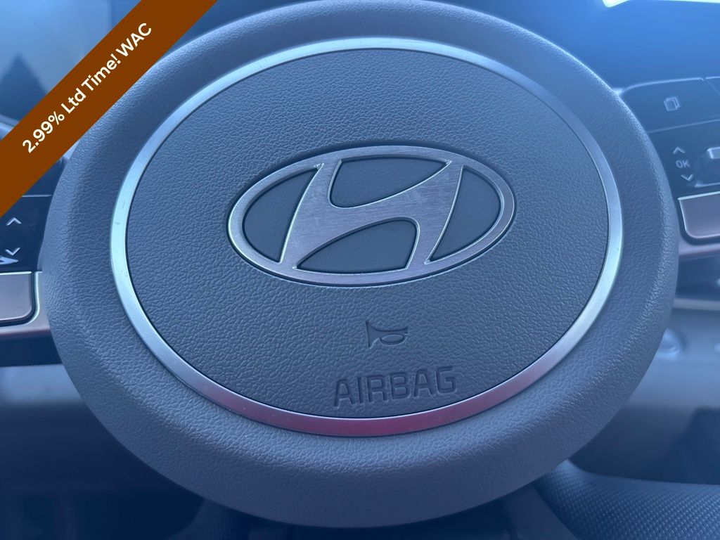 Convenience Package (60/40 Split Fldng Rr Seatback w/Armrest & Cup Hld, Dynamic Voice Recognition, Electronic Parking Brake, Forward Collision Avoidance Assist, Heated Front Seats, Heated Outside Mirrors, Leather-Wrapped Steering Wheel, Option Group 02, Smart Cruise Control w/Stop & Go, Wheels: 17" x 7.0J Machine Finish Alloy, and Wireless Charging Pad (QI)), Hyundai Certified Used Vehicles Certified, 16" x 6.5J Alloy Wheels, 4-Wheel Disc Brakes, 6 Speakers, ABS brakes, Air Conditioning, All-Season Fitted Liners, Alloy wheels, AM/FM radio: SiriusXM, Apple CarPlay & Android Auto, Auto High-beam Headlights, Automatic temperature control, Brake assist, Bumpers: body-color, Cargo Net, Carpeted Floor Mats, Cloth Seat Trim, Delay-off headlights, Driver door bin, Driver vanity mirror, Dual front impact airbags, Dual front side impact airbags, Electronic Stability Control, Emergency communication system: Bluelink+, Exterior Parking Camera Rear, First Aid Kit, Front anti-roll bar, Front Bucket Seats, Front Center Armrest, Front dual zone A/C, Front reading lights, Front wheel independent suspension, Fully automatic headlights, Illuminated entry, Low tire pressure warning, Navigation System, Occupant sensing airbag, Outside temperature display, Overhead airbag, Overhead console, Panic alarm, Passenger door bin, Passenger vanity mirror, Power door mirrors, Power steering, Power windows, Radio: AM/FM/HD/SiriusXM Display Audio, Rear side impact airbag, Rear window defroster, Remote keyless entry, Security system, Speed control, Speed-sensing steering, Steering wheel mounted audio controls, Tachometer, Telescoping steering wheel, Tilt steering wheel, Traction control, Trip computer, Variably intermittent wipers, and Wheel Locks.