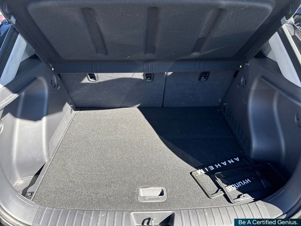 Option Group 01, Hyundai Certified Used Vehicles Certified, 4-Wheel Disc Brakes, 6 Speakers, 6.052 Axle Ratio, ABS brakes, Air Conditioning, Alloy wheels, AM/FM radio: SiriusXM, Apple CarPlay & Android Auto, Auto High-beam Headlights, Automatic temperature control, Brake assist, Bumpers: body-color, Carpeted Floor Mats, Cloth Seat Trim, Delay-off headlights, Driver door bin, Driver vanity mirror, Dual front impact airbags, Dual front side impact airbags, Electronic Stability Control, Emergency communication system: Bluelink+, Exterior Parking Camera Rear, Front anti-roll bar, Front Bucket Seats, Front Center Armrest, Front dual zone A/C, Front reading lights, Front wheel independent suspension, Fully automatic headlights, Heated door mirrors, Illuminated entry, Leather Shift Knob, Leather steering wheel, Low tire pressure warning, Occupant sensing airbag, Outside temperature display, Overhead airbag, Panic alarm, Passenger door bin, Passenger vanity mirror, Power door mirrors, Power driver seat, Power steering, Power windows, Radio: AM/FM/HD Radio/SiriusXM Audio System, Rear seat center armrest, Rear window defroster, Rear window wiper, Remote keyless entry, Security system, Speed control, Speed-sensing steering, Split folding rear seat, Spoiler, Steering wheel mounted audio controls, Tachometer, Telescoping steering wheel, Tilt steering wheel, Traction control, Trip computer, Turn signal indicator mirrors, Variably intermittent wipers, and Wheels: 18" x 7.0J Glossy Black Alloy.