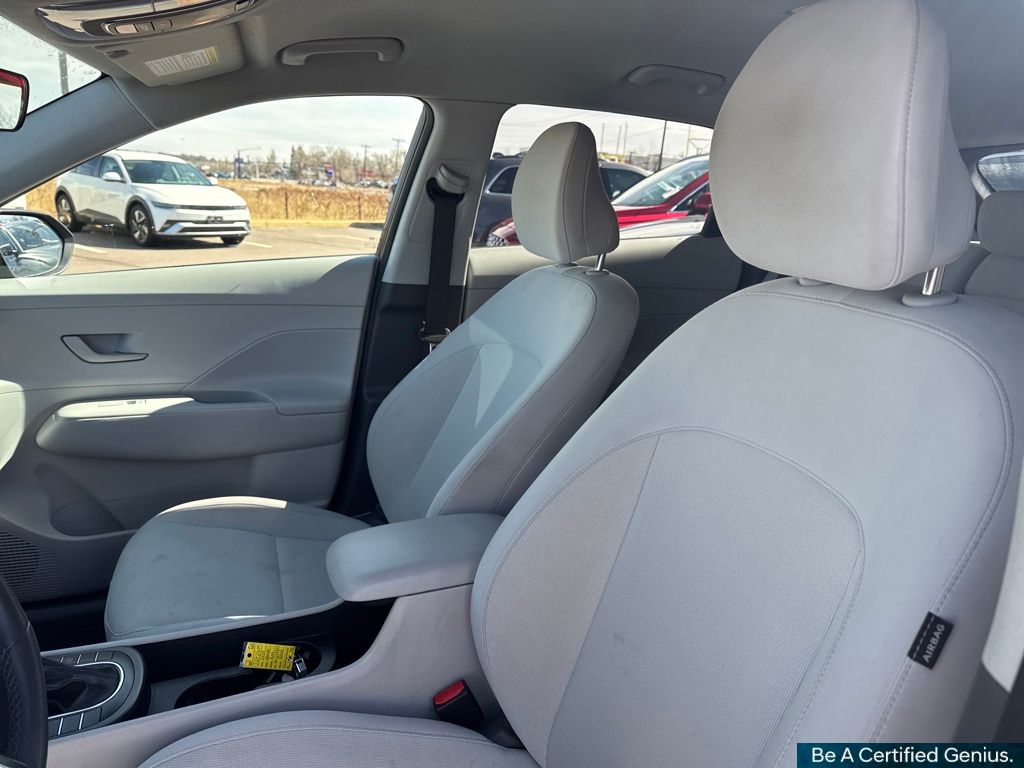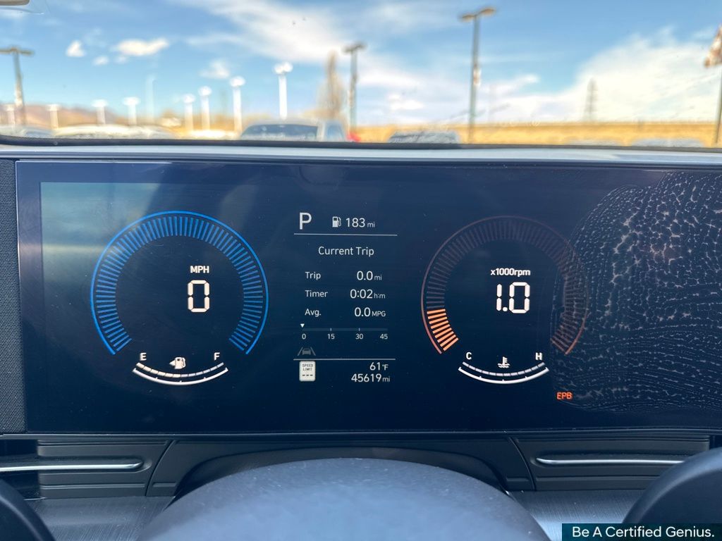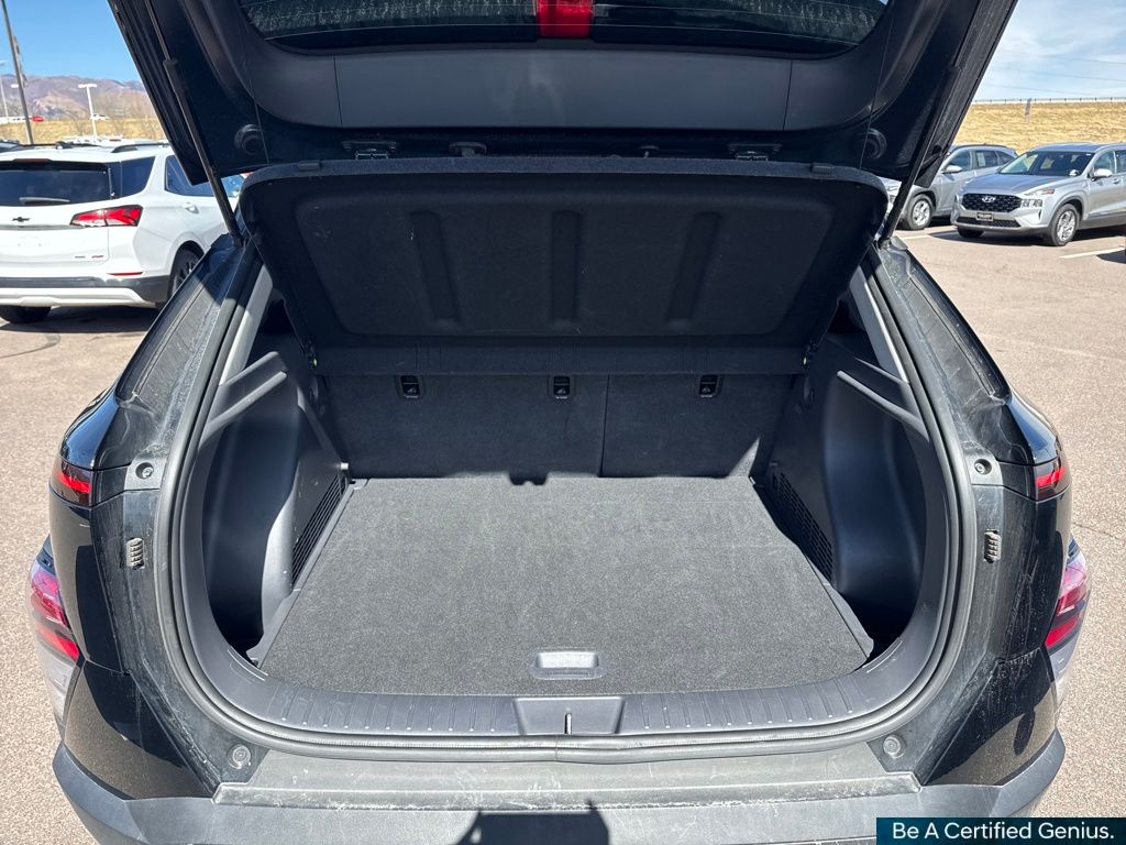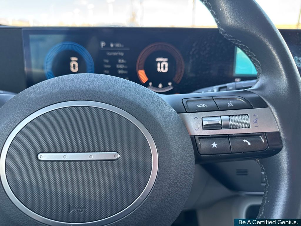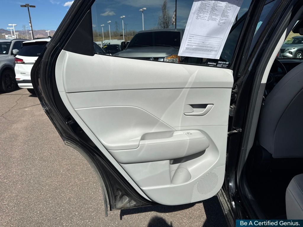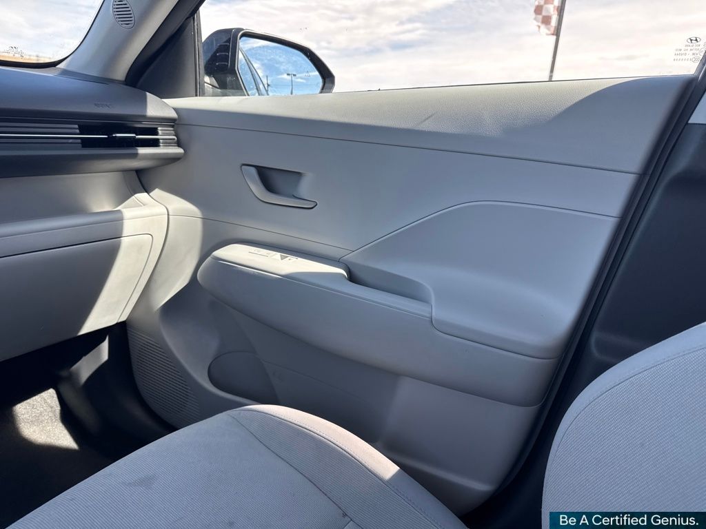 Option Group 01, Hyundai Certified Used Vehicles Certified, 4-Wheel Disc Brakes, 6 Speakers, 6.052 Axle Ratio, ABS brakes, Air Conditioning, Alloy wheels, AM/FM radio: SiriusXM, Apple CarPlay & Android Auto, Auto High-beam Headlights, Automatic temperature control, Brake assist, Bumpers: body-color, Cloth Seat Trim, Delay-off headlights, Driver door bin, Driver vanity mirror, Dual front impact airbags, Dual front side impact airbags, Electronic Stability Control, Emergency communication system: Bluelink+, Exterior Parking Camera Rear, Four wheel independent suspension, Front anti-roll bar, Front Bucket Seats, Front Center Armrest, Front dual zone A/C, Front reading lights, Fully automatic headlights, Heated door mirrors, Illuminated entry, Leather Shift Knob, Leather steering wheel, Low tire pressure warning, Occupant sensing airbag, Outside temperature display, Overhead airbag, Panic alarm, Passenger door bin, Passenger vanity mirror, Power door mirrors, Power driver seat, Power steering, Power windows, Radio: AM/FM/HD Radio/SiriusXM Audio System, Rear anti-roll bar, Rear seat center armrest, Rear window defroster, Rear window wiper, Remote keyless entry, Security system, Speed control, Speed-sensing steering, Split folding rear seat, Spoiler, Steering wheel mounted audio controls, Tachometer, Telescoping steering wheel, Tilt steering wheel, Traction control, Trip computer, Turn signal indicator mirrors, Variably intermittent wipers, and Wheels: 18" x 7.0J Glossy Black Alloy.