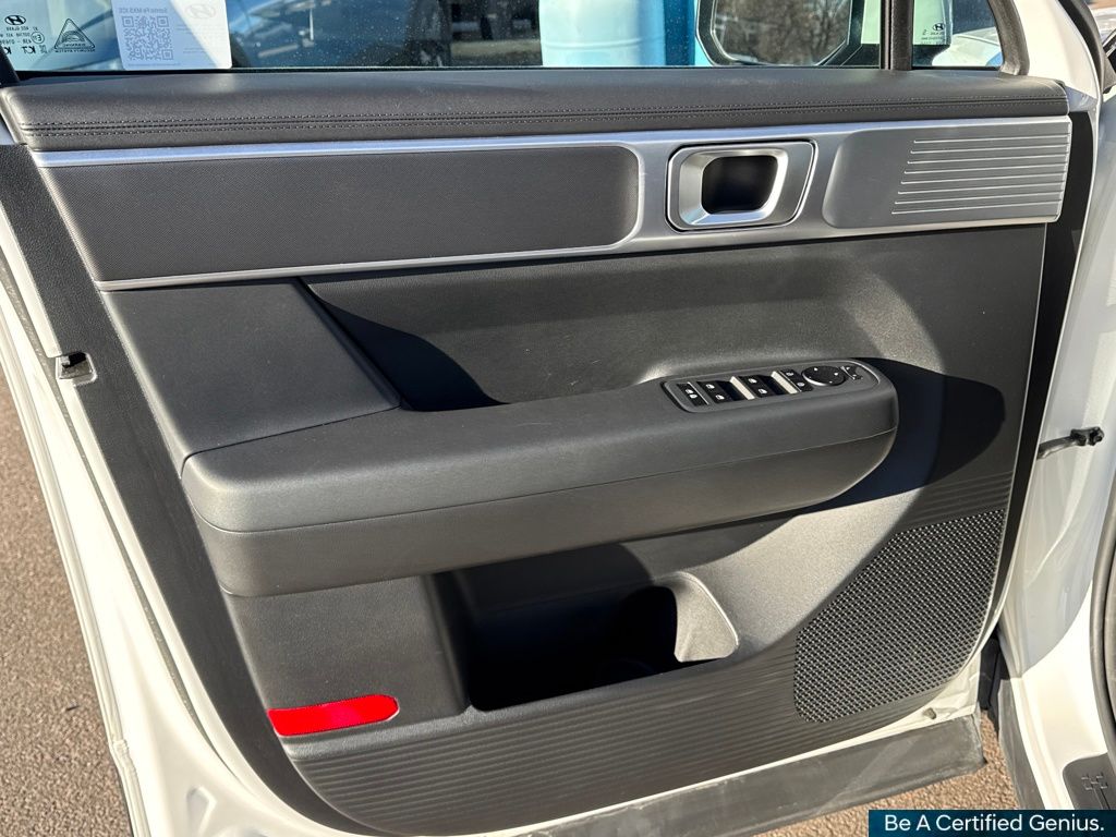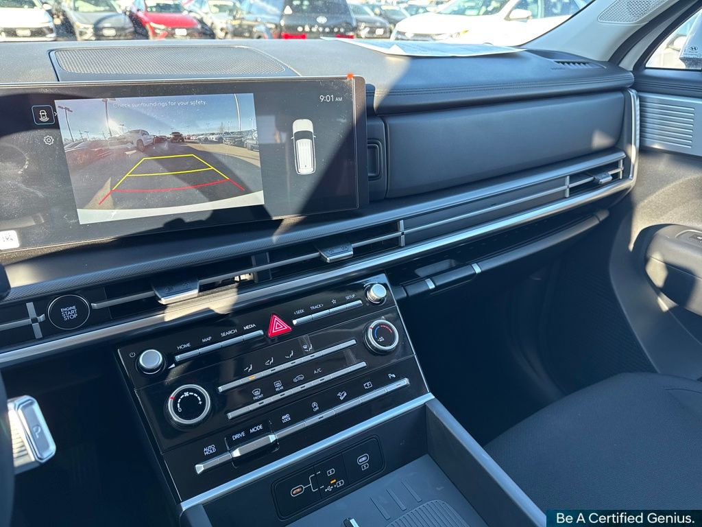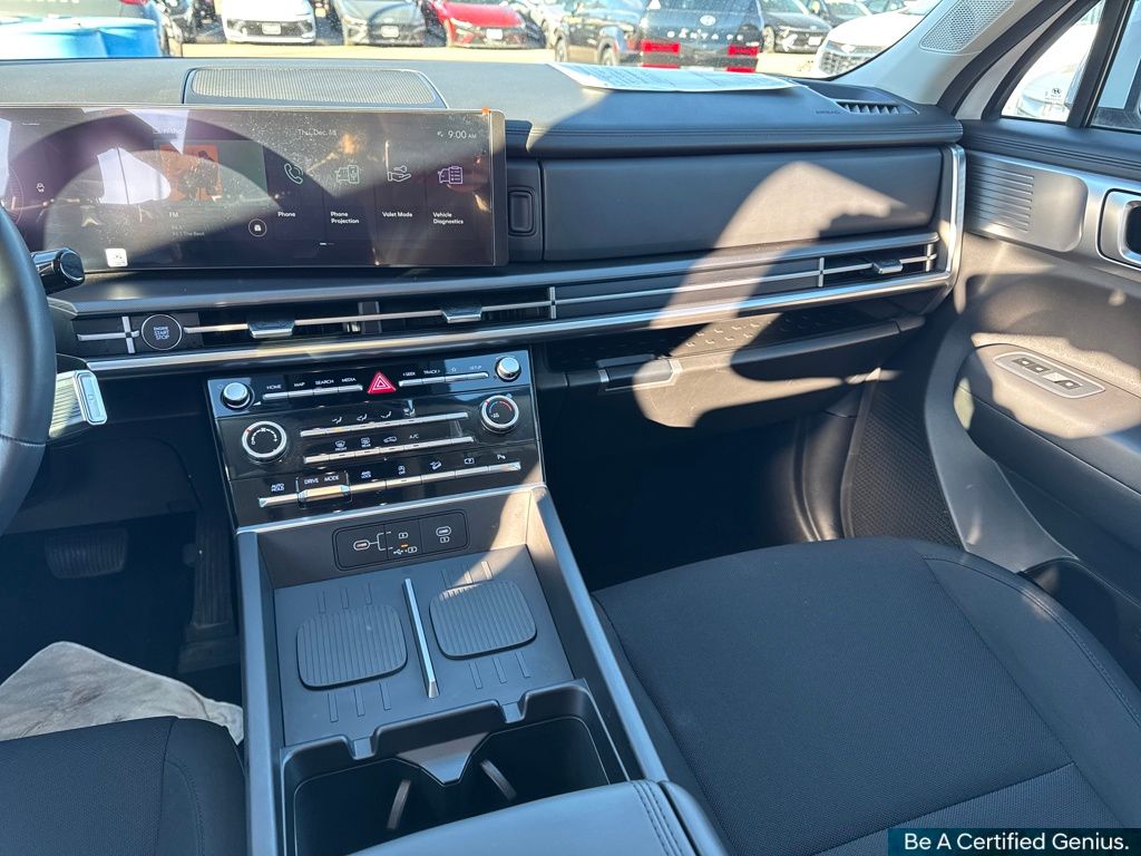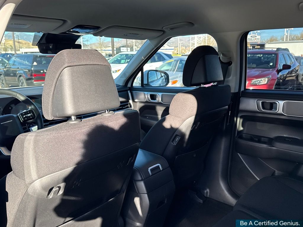 Option Group 01, Hyundai Certified Used Vehicles Certified, AWD, Black Cloth, 18" x 7.5J Alloy Wheels, 3rd row seats: bench, 4-Wheel Disc Brakes, 6 Speakers, ABS brakes, Air Conditioning, All Season Fitted Liners, Alloy wheels, AM/FM radio: SiriusXM, Apple CarPlay & Android Auto, Auto High-beam Headlights, Brake assist, Bumpers: body-color, Cargo Blocks, Delay-off headlights, Driver door bin, Driver vanity mirror, Dual front impact airbags, Dual front side impact airbags, Electronic Stability Control, Emergency communication system, Exterior Parking Camera Rear, First Aid Kit, Four wheel independent suspension, Front anti-roll bar, Front Bucket Seats, Front Center Armrest, Front reading lights, Fully automatic headlights, Heated door mirrors, Illuminated entry, Knee airbag, Leather steering wheel, Low tire pressure warning, Mudguards, Occupant sensing airbag, Outside temperature display, Overhead airbag, Overhead console, Panic alarm, Passenger door bin, Passenger vanity mirror, Power door mirrors, Power Liftgate, Power steering, Power windows, Radio: AM/FM/HD Display Audio, Rear anti-roll bar, Rear seat center armrest, Rear side impact airbag, Rear window defroster, Rear window wiper, Remote keyless entry, Security system, Speed control, Speed-sensing steering, Split folding rear seat, Spoiler, Steering wheel mounted audio controls, Tachometer, Telescoping steering wheel, Tilt steering wheel, Traction control, Trip computer, Variably intermittent wipers, Wheel Locks, and YES Essentials Stain-Resistant Cloth Seat Trim.