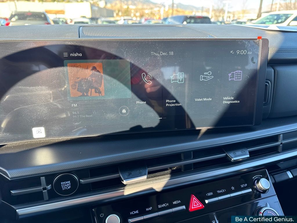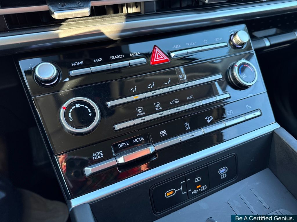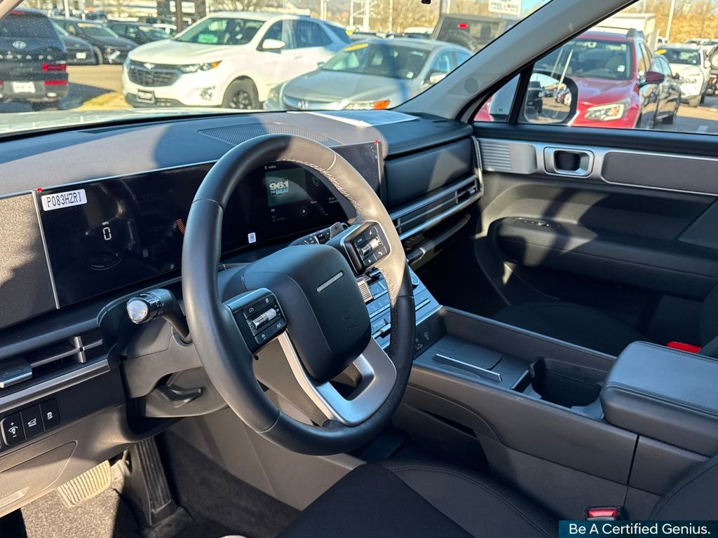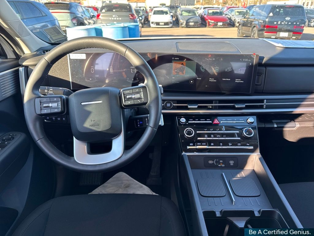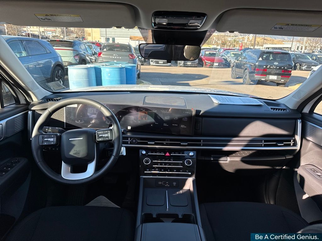 Option Group 01, Hyundai Certified Used Vehicles Certified, AWD, Black Cloth, 18" x 7.5J Alloy Wheels, 3rd row seats: bench, 4-Wheel Disc Brakes, 6 Speakers, ABS brakes, Air Conditioning, All Season Fitted Liners, Alloy wheels, AM/FM radio: SiriusXM, Apple CarPlay & Android Auto, Auto High-beam Headlights, Brake assist, Bumpers: body-color, Cargo Blocks, Delay-off headlights, Driver door bin, Driver vanity mirror, Dual front impact airbags, Dual front side impact airbags, Electronic Stability Control, Emergency communication system, Exterior Parking Camera Rear, First Aid Kit, Four wheel independent suspension, Front anti-roll bar, Front Bucket Seats, Front Center Armrest, Front reading lights, Fully automatic headlights, Heated door mirrors, Illuminated entry, Knee airbag, Leather steering wheel, Low tire pressure warning, Mudguards, Occupant sensing airbag, Outside temperature display, Overhead airbag, Overhead console, Panic alarm, Passenger door bin, Passenger vanity mirror, Power door mirrors, Power Liftgate, Power steering, Power windows, Radio: AM/FM/HD Display Audio, Rear anti-roll bar, Rear seat center armrest, Rear side impact airbag, Rear window defroster, Rear window wiper, Remote keyless entry, Security system, Speed control, Speed-sensing steering, Split folding rear seat, Spoiler, Steering wheel mounted audio controls, Tachometer, Telescoping steering wheel, Tilt steering wheel, Traction control, Trip computer, Variably intermittent wipers, Wheel Locks, and YES Essentials Stain-Resistant Cloth Seat Trim.