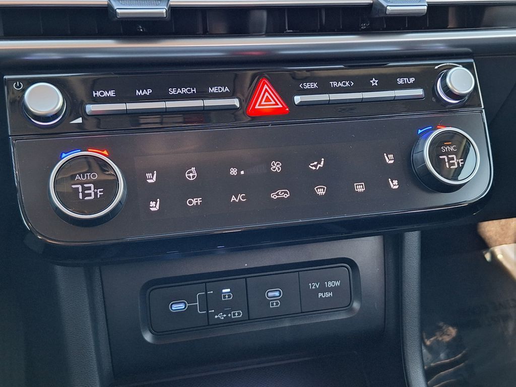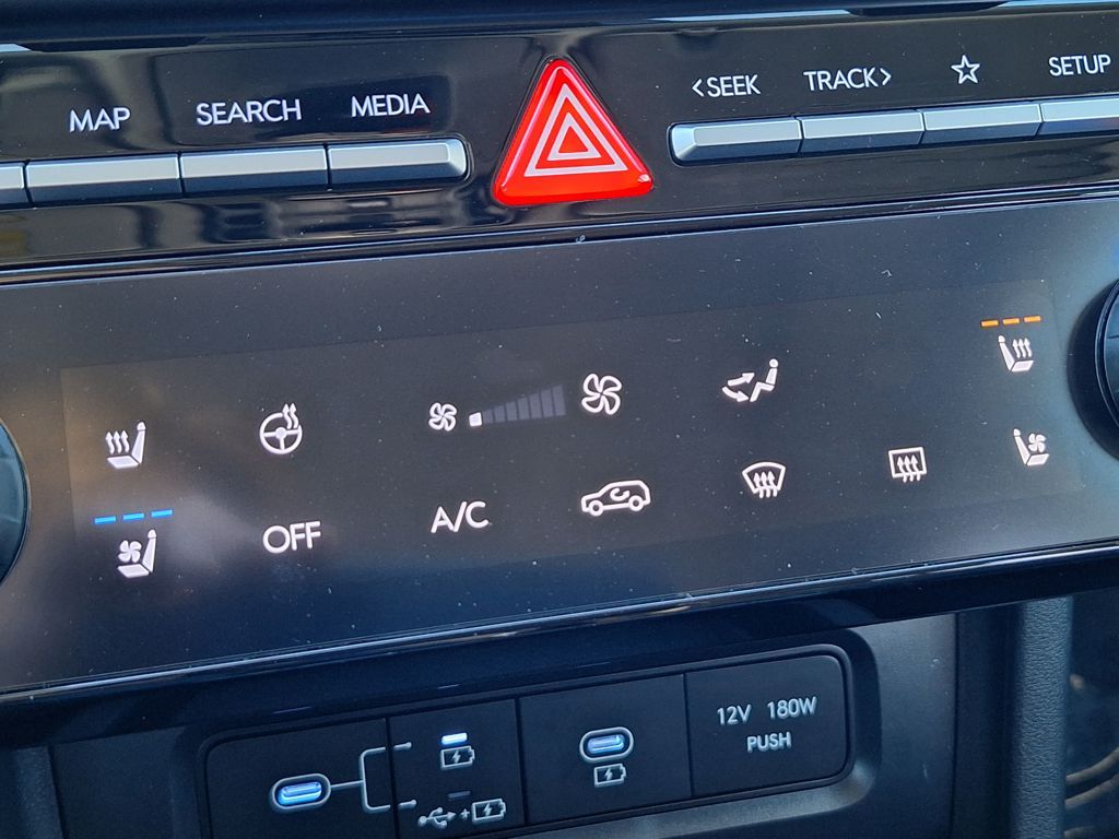 Option Group 01, Hyundai Certified, AWD, 19" Alloy Wheels, 4-Wheel Disc Brakes, 8 Speakers, ABS brakes, Air Conditioning, All Season Fitted Liners, Alloy wheels, AM/FM radio: SiriusXM, Apple CarPlay & Android Auto, Auto High-beam Headlights, Auto-dimming Rear-View mirror, Automatic temperature control, Brake assist, Bumpers: body-color, Cargo Net, Cargo Tray, Carpeted Floor Mats, Delay-off headlights, Driver door bin, Driver vanity mirror, Dual front impact airbags, Dual front side impact airbags, Electronic Stability Control, Emergency communication system: Bluelink+, First Aid Kit, Four wheel independent suspension, Front anti-roll bar, Front Bucket Seats, Front Center Armrest, Front dual zone A/C, Front reading lights, Fully automatic headlights, Garage door transmitter: HomeLink, Heads-Up Display, Heated & Ventilated Front Bucket Seats, Heated door mirrors, Heated front seats, Heated rear seats, Heated steering wheel, Illuminated entry, Leather steering wheel, Leather-Trimmed Seat Trim, Low tire pressure warning, Memory seat, Navigation System, Occupant sensing airbag, Outside temperature display, Overhead airbag, Overhead console, Panic alarm, Passenger door bin, Passenger vanity mirror, Power door mirrors, Power driver seat, Power Liftgate, Power moonroof, Power passenger seat, Power steering, Power windows, Radio data system, Radio: Bose Premium w/AM/FM/HD Audio System, Rain sensing wipers, Rear anti-roll bar, Rear reading lights, Rear seat center armrest, Rear side impact airbag, Rear window defroster, Rear window wiper, Remote keyless entry, Security system, Speed control, Split folding rear seat, Spoiler, Steering wheel mounted audio controls, Tachometer, Telescoping steering wheel, Tilt steering wheel, Traction control, Trip computer, Turn signal indicator mirrors, Variably intermittent wipers, Ventilated front seats, and Wheel Locks.