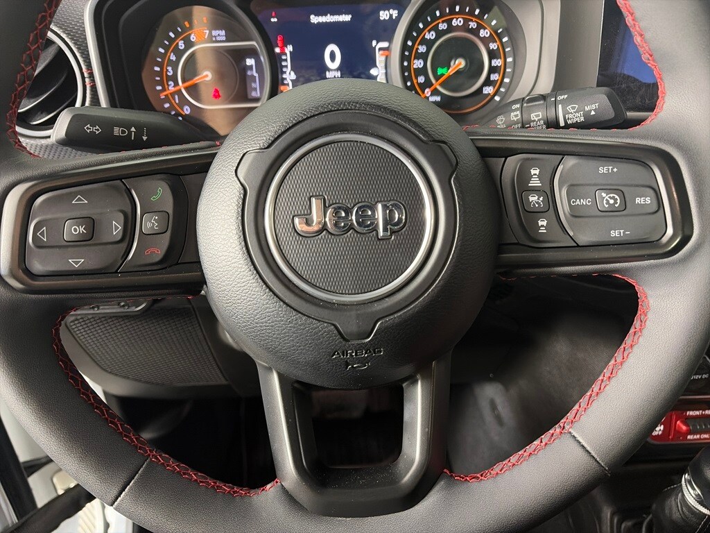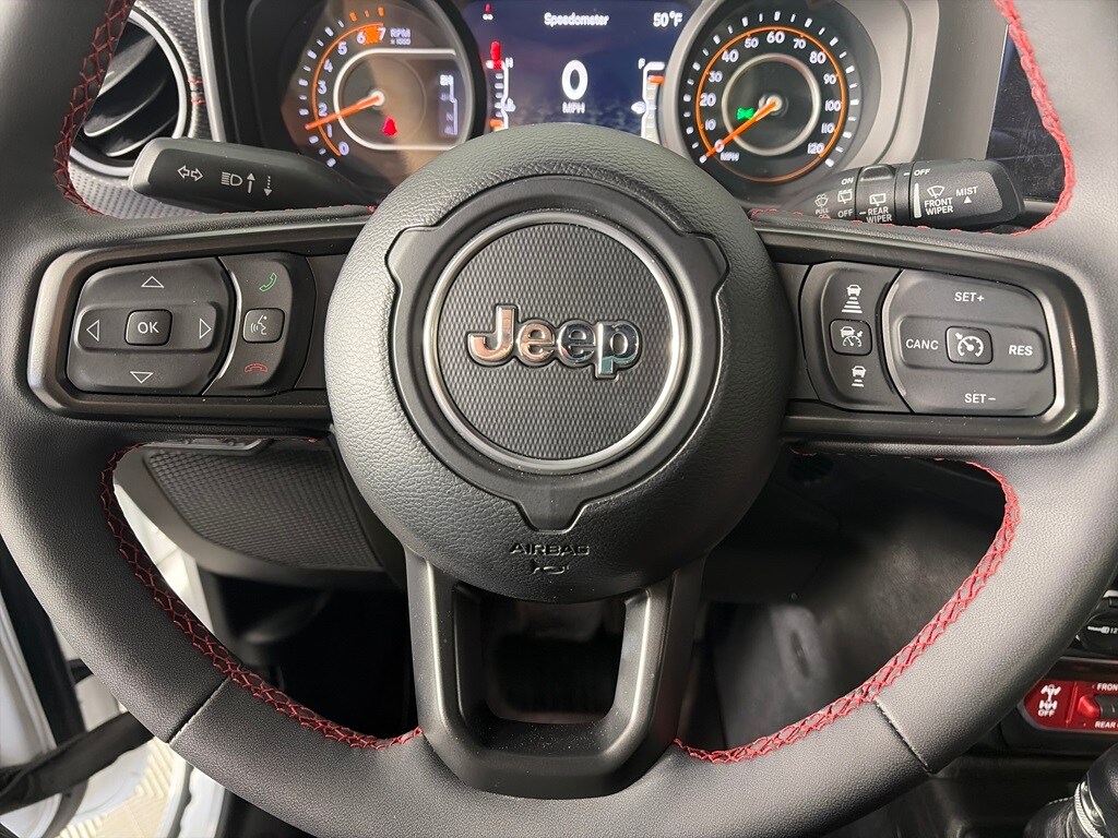 SKY 1-TOUCH POWER TOP Rear Window Defroster, Rear Window Wiper/Washer, Removable Rear Quarter Windows, Power Top Quarter Window Storage Bag, TRANSMISSION: 8-SPEED AUTOMATIC (850RE) Adaptive Cruise Control w/Stop, Selec-Speed Control, TECHNOLOGY GROUP SiriusXM Radio Service, Alpine Premium Audio System, Integrated Off-Road Camera, HD Radio, Rear View Auto Dim Mirror, Radio: Uconnect 5 Nav w/12.3 Display, GPS Navigation, 4G LTE Wi-Fi Hot Spot, SiriusXM w/360L, Connected Travel & Traffic Services, SAFETY GROUP ParkSense Rear Park Assist System, Auto High Beam Headlamp Control, Blind Spot & Cross Path Detection, CONVENIENCE GROUP Heated Steering Wheel, Remote Start System, Heated Front Seats, ENGINE: 2.0L I4 DOHC DI TURBO W/ESS. Jeep Rubicon with Bright White Clearcoat exterior and Black interior features a 4 Cylinder Engine with 270 HP at 5250 RPM*.