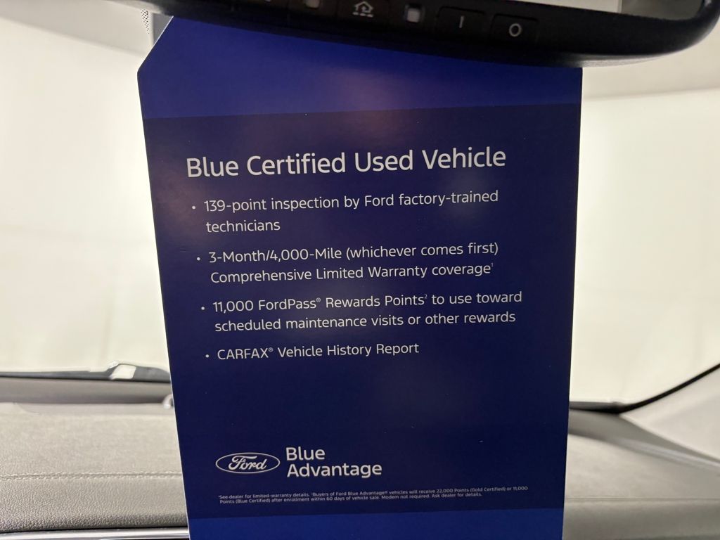 Ford Blue Certified includes:139 point vehicle inspection performed by an ASE Certified technician 3-month/4,000-mile Comprehensive Limited Warranty coverage that is fully competitive with other online retailers Blue Certification includes 11,000 FordPass Rewards Points For other manufacturers not listed above, Comprehensive Coverage is provided for 3 months or 4,000 m