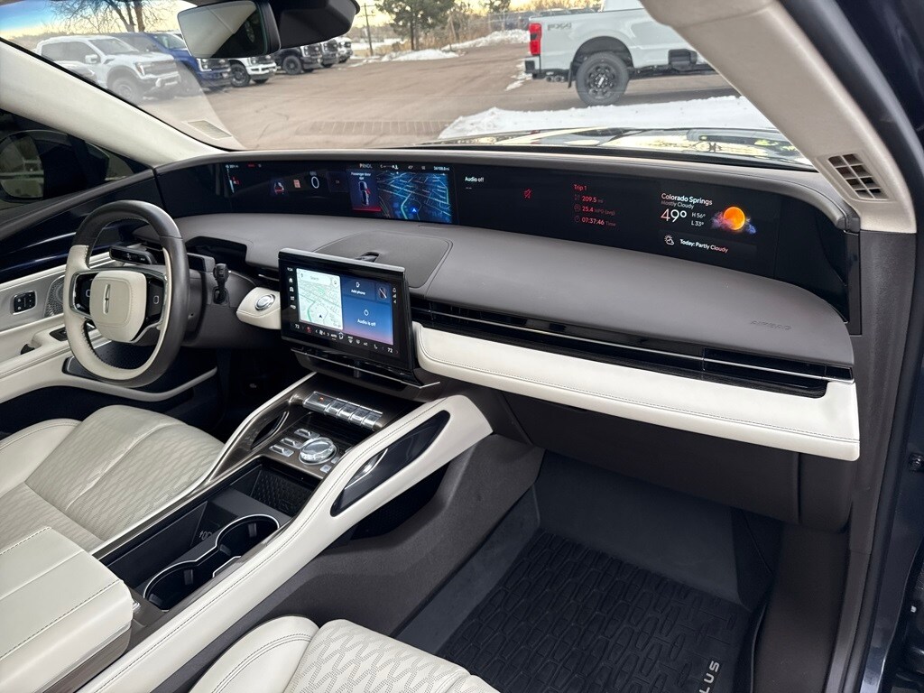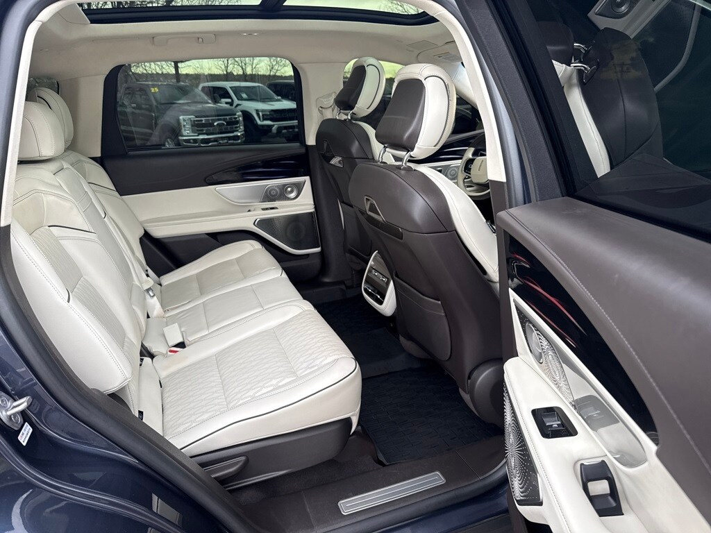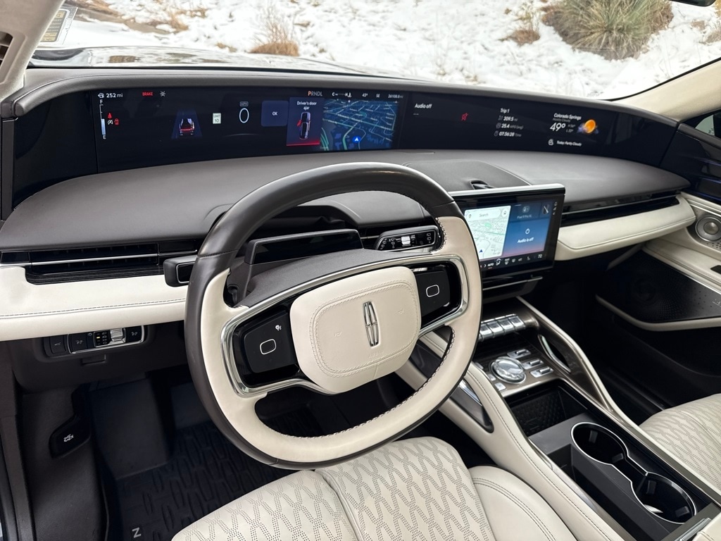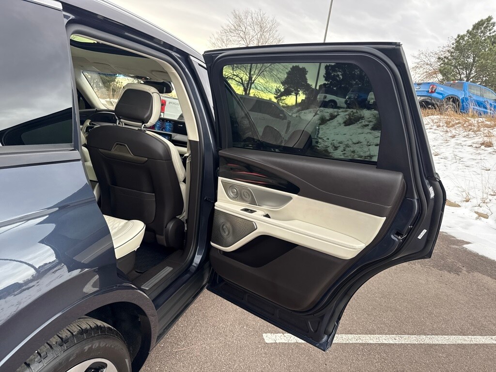 Cargo Accessories & Mat Package (All-Weather Floor Liner, Cargo Area Protector, and Cargo Net), Chalet Theme (Appliques - Silverwood w/Logo Decal, Floor Carpet/Mats - Ebony Velour w/Metal Cuff Accent, Headliner - Cashmere, and Leather-Wrapped Interior - Cashmere Sanctuary Lthr), Equipment Group 800A, Lincoln CPO - Lincoln Black Label Program Certified, 28 Speakers, 3.81 Axle Ratio, 4-Wheel Disc Brakes, ABS brakes, Adaptive suspension, Air Conditioning, Alexa Built-In, Alloy wheels, AM/FM radio: SiriusXM with 360L, Apple CarPlay/Android Auto, Appliques - Herringbone Marquetry Walnut, Auto High-beam Headlights, Auto tilt-away steering wheel, Auto-dimming door mirrors, Auto-dimming Rear-View mirror, Automatic temperature control, Brake assist, Bumpers: body-color, Compass, Delay-off headlights, Driver door bin, Driver vanity mirror, Dual front impact airbags, Dual front side impact airbags, Electronic Stability Control, Emergency communication system: 911 Assist, Exposed Locking Lug Nut Kit, Exterior Parking Camera Rear, Four wheel independent suspension, Front anti-roll bar, Front Bucket Seats, Front Center Armrest w/Storage, Front dual zone A/C, Front reading lights, Fully automatic headlights, Garage door transmitter: HomeLink, Heated door mirrors, Heated front seats, Heated rear seats, Heated steering wheel, Htd/Vent Sanctuary Leather Fr Captains Chairs, Illuminated entry, Knee airbag, Leather steering wheel, Low tire pressure warning, Lthr-Wrapped Int - Harvest Bronze w/Smoked Truffle, Memory seat, Navigation System, Occupant sensing airbag, Outside temperature display, Overhead airbag, Overhead console, Panic alarm, Passenger door bin, Passenger vanity mirror, Power door mirrors, Power driver seat, Power moonroof: Panoramic Vista Roof, Power passenger seat, Power steering, Power windows, Radio data system, Radio: AM/FM/HD w/Revel Ultima Audio System, Rain sensing wipers, Rear anti-roll bar, Rear reading lights, Rear seat center armrest, Rear window defroster, Rear window wiper, Remote keyless entry, Security system, Speed control, Speed-sensing steering, Speed-Sensitive Wipers, Split folding rear seat, Spoiler, Steering wheel memory, Steering wheel mounted audio controls, Tachometer, Telescoping steering wheel, Tilt steering wheel, Traction control, Trailer Tow Class I, Trip computer, Turn signal indicator mirrors, Variably intermittent wipers, Ventilated front seats, and Wheels: 22" Bright Machined Alum w/Ebony Ptd Pkts.