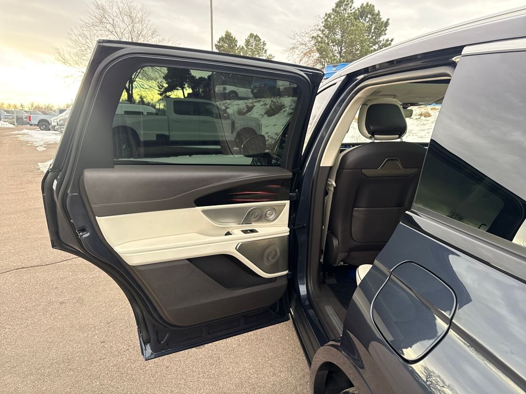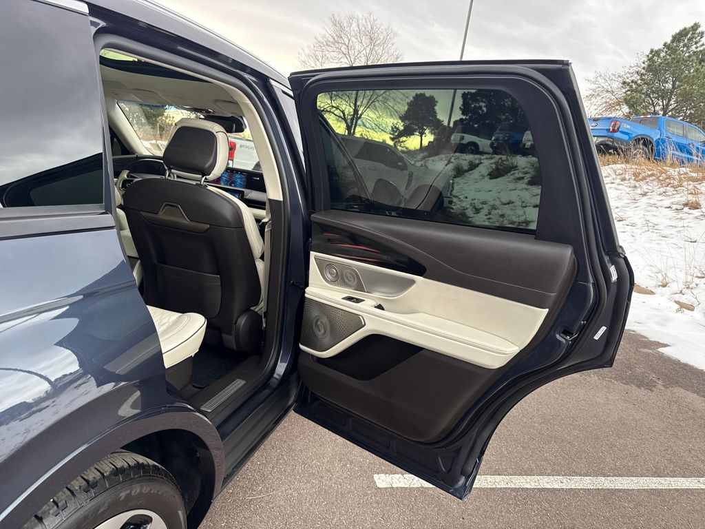 Cargo Accessories & Mat Package (All-Weather Floor Liner, Cargo Area Protector, and Cargo Net), Chalet Theme (Appliques - Silverwood w/Logo Decal, Floor Carpet/Mats - Ebony Velour w/Metal Cuff Accent, Headliner - Cashmere, and Leather-Wrapped Interior - Cashmere Sanctuary Lthr), Equipment Group 800A, Lincoln Signature Certification Certified, 28 Speakers, 3.81 Axle Ratio, 4-Wheel Disc Brakes, ABS brakes, Adaptive suspension, Air Conditioning, Alexa Built-In, Alloy wheels, AM/FM radio: SiriusXM with 360L, Apple CarPlay/Android Auto, Appliques - Herringbone Marquetry Walnut, Auto High-beam Headlights, Auto tilt-away steering wheel, Auto-dimming door mirrors, Auto-dimming Rear-View mirror, Automatic temperature control, Brake assist, Bumpers: body-color, Compass, Delay-off headlights, Driver door bin, Driver vanity mirror, Dual front impact airbags, Dual front side impact airbags, Electronic Stability Control, Emergency communication system: 911 Assist, Exposed Locking Lug Nut Kit, Exterior Parking Camera Rear, Four wheel independent suspension, Front anti-roll bar, Front Bucket Seats, Front Center Armrest w/Storage, Front dual zone A/C, Front reading lights, Fully automatic headlights, Garage door transmitter: HomeLink, Heated door mirrors, Heated front seats, Heated rear seats, Heated steering wheel, Htd/Vent Sanctuary Leather Fr Captains Chairs, Illuminated entry, Knee airbag, Leather steering wheel, Low tire pressure warning, Lthr-Wrapped Int - Harvest Bronze w/Smoked Truffle, Memory seat, Navigation System, Occupant sensing airbag, Outside temperature display, Overhead airbag, Overhead console, Panic alarm, Passenger door bin, Passenger vanity mirror, Power door mirrors, Power driver seat, Power moonroof: Panoramic Vista Roof, Power passenger seat, Power steering, Power windows, Radio data system, Radio: AM/FM/HD w/Revel Ultima Audio System, Rain sensing wipers, Rear anti-roll bar, Rear reading lights, Rear seat center armrest, Rear window defroster, Rear window wiper, Remote keyless entry, Security system, Speed control, Speed-sensing steering, Speed-Sensitive Wipers, Split folding rear seat, Spoiler, Steering wheel memory, Steering wheel mounted audio controls, Tachometer, Telescoping steering wheel, Tilt steering wheel, Traction control, Trailer Tow Class I, Trip computer, Turn signal indicator mirrors, Variably intermittent wipers, Ventilated front seats, and Wheels: 22" Bright Machined Alum w/Ebony Ptd Pkts.