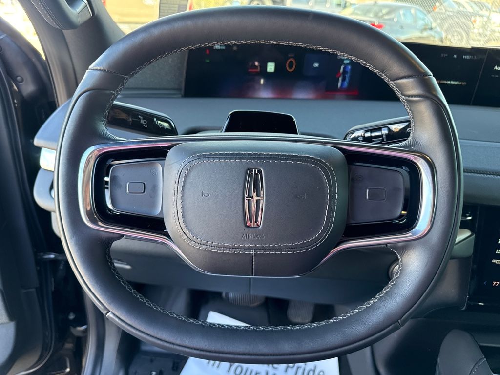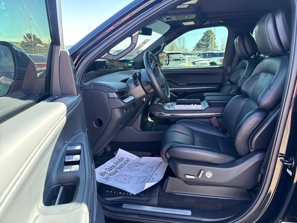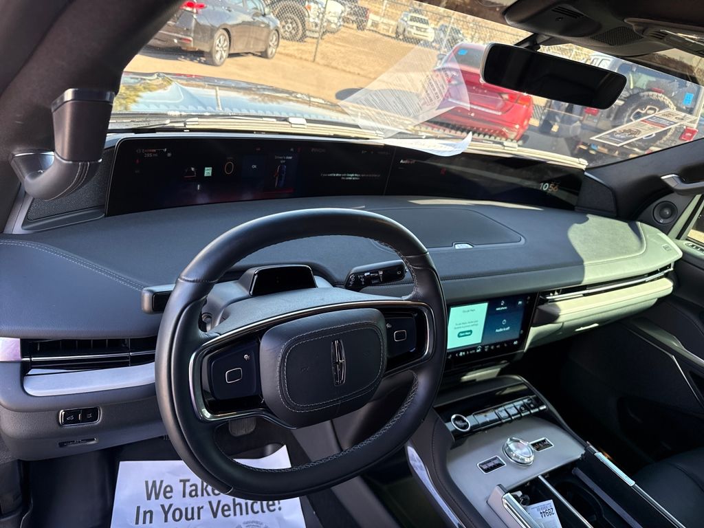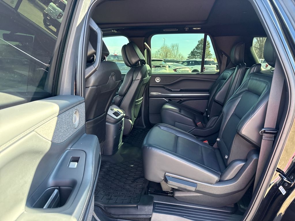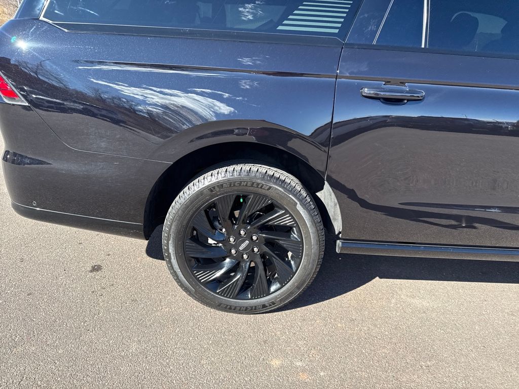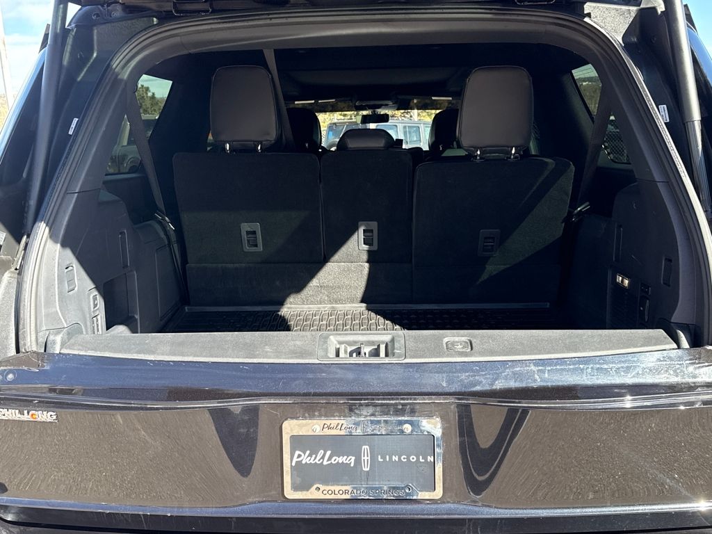 Equipment Group 202A Reserve II, Jet Appearance Package (Black Accent Badge, Black Accent Interior Pack, Black Beltline Molding, Black Painted Roof Rails, Front Bumper Fascia, Lincoln Lit Star, Unique Lincoln Grille Pillar Black Surround, and Wheels: 22" High-Gloss Ebony Aluminum), Lincoln Certified, 28 Speakers, 3rd row seats: split-bench, 4-Wheel Disc Brakes, ABS brakes, Adaptive suspension, Adjustable pedals, Air Conditioning, All-Weather Flr Liners w/o Fr & Rr Carpet Flr Mats, Alloy wheels, AM/FM radio: SiriusXM with 360L, Apple CarPlay/Android Auto, Audio memory, Auto High-beam Headlights, Auto Htd & Ventilated Premium Lthr Captain's Chair, Auto Start-Stop Technology, Auto tilt-away steering wheel, Auto-dimming door mirrors, Auto-dimming Rear-View mirror, Auto-leveling suspension, Automatic temperature control, Brake assist, Bumpers: body-color, Cargo Area Management System, Compass, Delay-off headlights, Driver door bin, Driver vanity mirror, Driver's Seat Mounted Armrest, Dual front impact airbags, Dual front side impact airbags, Electronic Stability Control, Emergency communication system: 911 Assist, Exterior Parking Camera Rear, First Aid Kit w/Lincoln Logo, Four wheel independent suspension, Front anti-roll bar, Front Bucket Seats, Front dual zone A/C, Front License Plate Bracket, Front reading lights, Fully automatic headlights, Garage door transmitter, Heated door mirrors, Heated front seats, Heated rear seats, Heated steering wheel, HVAC memory, Illuminated entry, Leather steering wheel, Lincoln Connect, Lincoln Premium Connectivity, Low tire pressure warning, Memory seat, Navigation system: Connected Navigation (1-year trial), Occupant sensing airbag, Outside temperature display, Overhead airbag, Overhead console, Panic alarm, Passenger door bin, Passenger seat mounted armrest, Passenger vanity mirror, Pedal memory, Power adjustable front head restraints, Power adjustable rear head restraints, Power door mirrors, Power driver seat, Power moonroof, Power passenger seat, Power steering, Power windows, Radio data system, Radio: Revel Ultima 3D AM/FM/HD Audio System, Rain sensing wipers, Rear air conditioning, Rear anti-roll bar, Rear audio controls, Rear reading lights, Rear window defroster, Rear window wiper, Reclining 3rd row seat, Remote keyless entry, Security system, SiriusXM w/360L, Speed control, Speed-sensing steering, Speed-Sensitive Wipers, Split folding rear seat, Spoiler, Steering wheel memory, Steering wheel mounted audio controls, Tachometer, Telescoping steering wheel, Tilt steering wheel, Traction control, Trip computer, Turn signal indicator mirrors, Variably intermittent wipers, Ventilated front seats, and Wheels: 22" Dark Tarnished Aluminum.