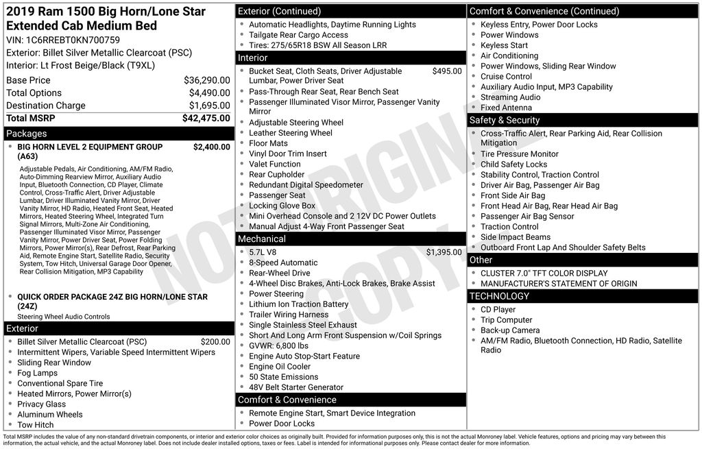 In conclusion, the 2019 Ram 1500 Big Horn/Lone Star Quad Cab 4x2 64 Box stands out as a powerful, comfortable, and technologically advanced truck ready to tackle all challenges. Experience the strength and sophistication of the Ram 1500 for yourself and elevate your driving experience today!