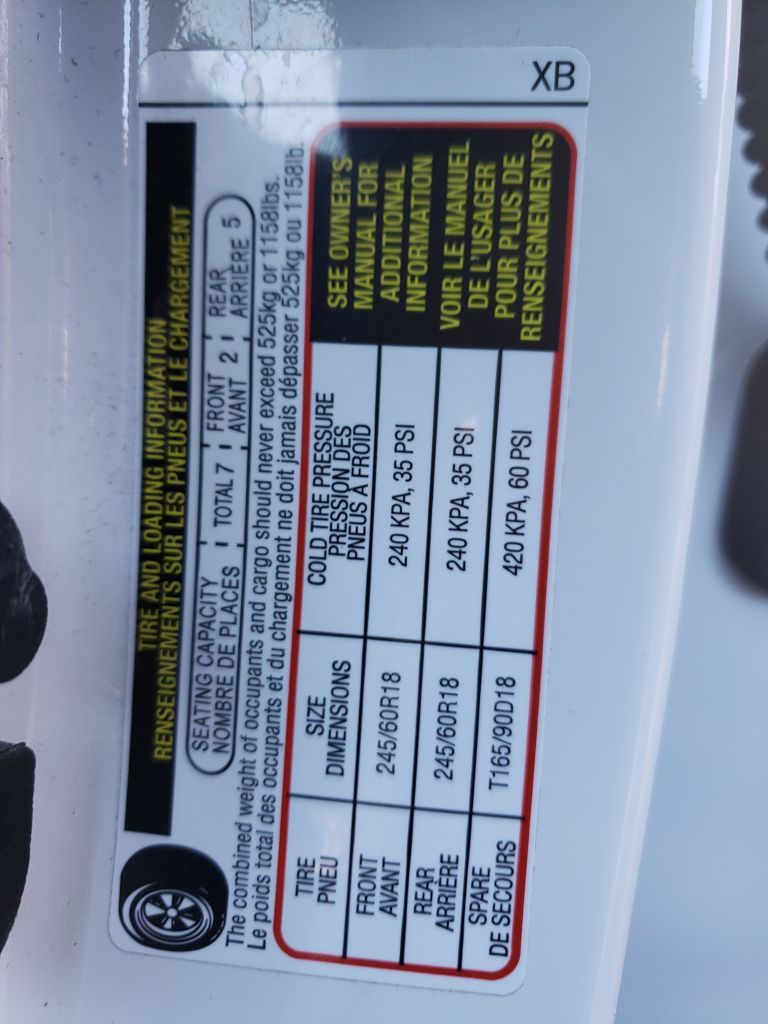 - Front tires: 245/60HR18.0