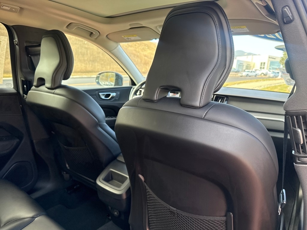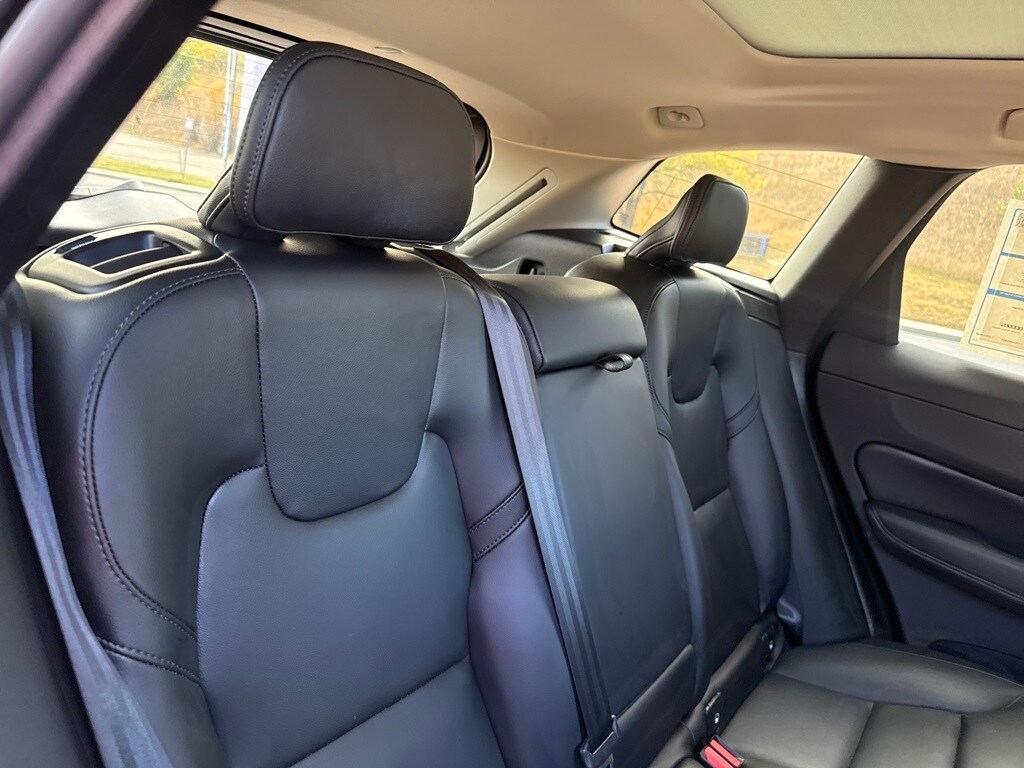 Volvo Certified, AWD, 10 Speakers, 4-Wheel Disc Brakes, ABS brakes, Air Conditioning, Alloy wheels, AM/FM radio: SiriusXM, Anti-whiplash front head restraints, Apple CarPlay, Auto High-beam Headlights, Auto-dimming door mirrors, Auto-dimming Rear-View mirror, Automatic temperature control, Brake assist, Bumpers: body-color, Delay-off headlights, Driver door bin, Driver vanity mirror, Dual front impact airbags, Dual front side impact airbags, Electronic Stability Control, Emergency communication system: Volvo Cars App w/4 Year Subscription, Exterior Parking Camera Rear, Four wheel independent suspension, Front anti-roll bar, Front Bucket Seats, Front Center Armrest, Front dual zone A/C, Front fog lights, Front reading lights, Fully automatic headlights, Heated door mirrors, Heated Front Bucket Seats, Heated front seats, Illuminated entry, Knee airbag, Leather Shift Knob, Leatherette Upholstery, Low tire pressure warning, Memory seat, Occupant sensing airbag, Outside temperature display, Overhead airbag, Panic alarm, Passenger door bin, Passenger vanity mirror, Power door mirrors, Power driver seat, Power Liftgate, Power moonroof, Power passenger seat, Power steering, Power windows, Radio data system, Radio: High Performance Sound System, Rain sensing wipers, Rear anti-roll bar, Rear fog lights, Rear reading lights, Rear seat center armrest, Rear window defroster, Rear window wiper, Remote keyless entry, Security system, Speed control, Split folding rear seat, Spoiler, Steering wheel mounted audio controls, Tachometer, Telescoping steering wheel, Tilt steering wheel, Traction control, Trip computer, Turn signal indicator mirrors, Variably intermittent wipers, and Wheels: 18" 5-Double Spoke Black Diamond Cut Alloy.