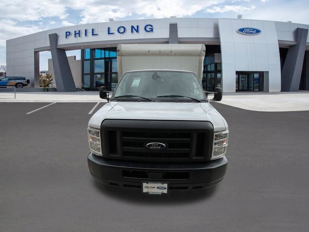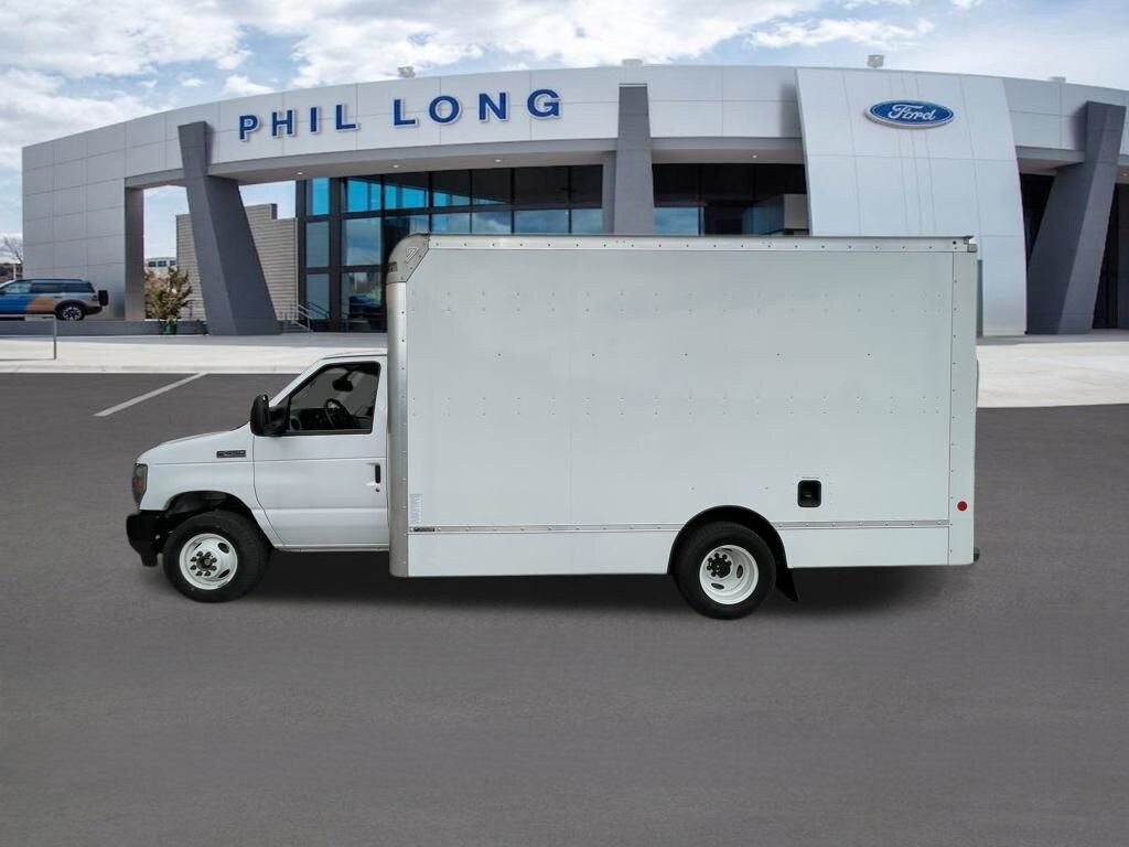 Oxford White 2024 Ford E-450SD DRW 14' Box Truck RWD 6-Speed Automatic with Overdrive 7.3L V8 7.3L V8, 6-Speed Automatic with Overdrive, RWD, Oxford White, Medium Flint w/Cloth Bucket Seats.