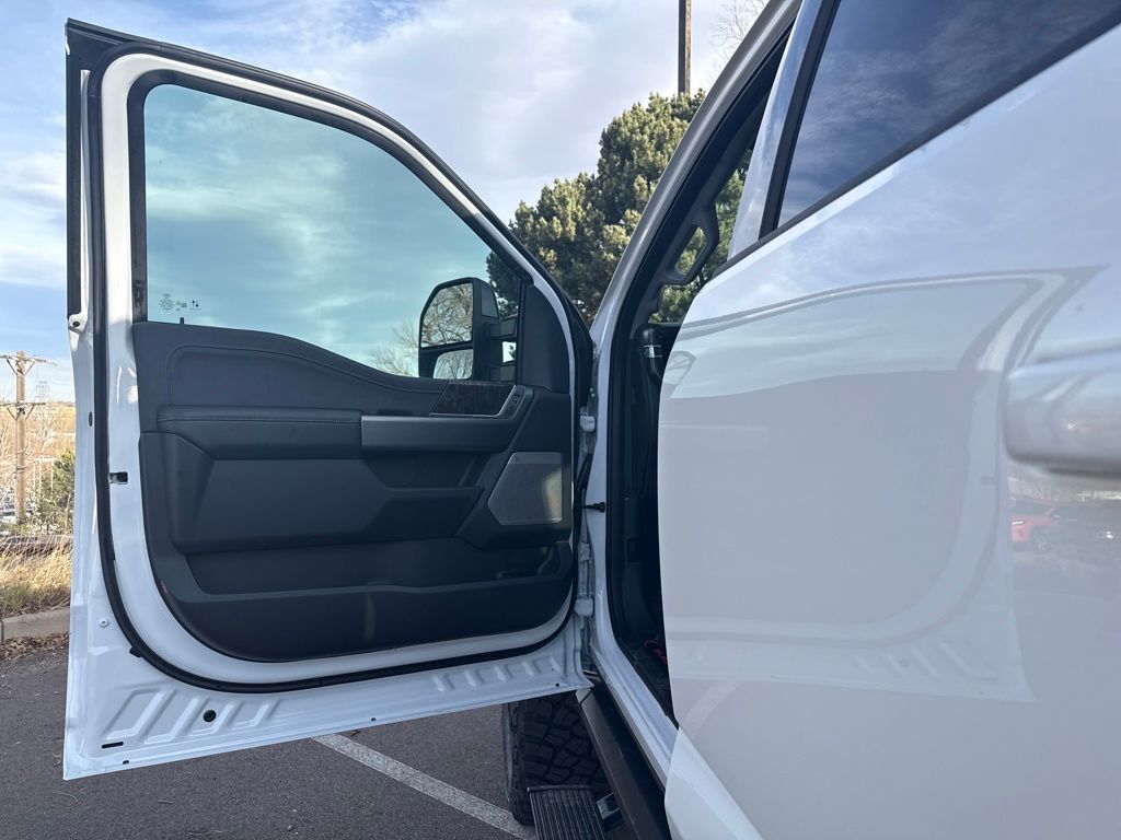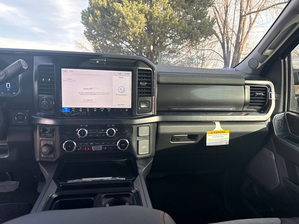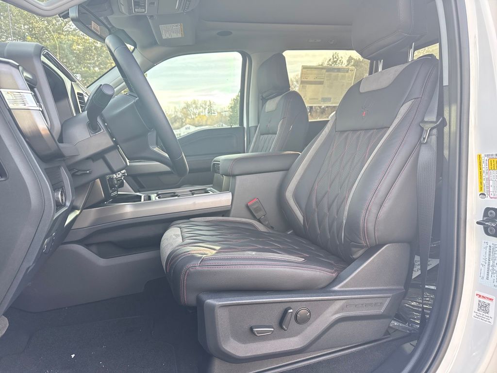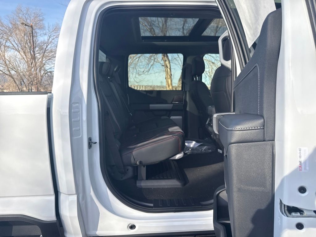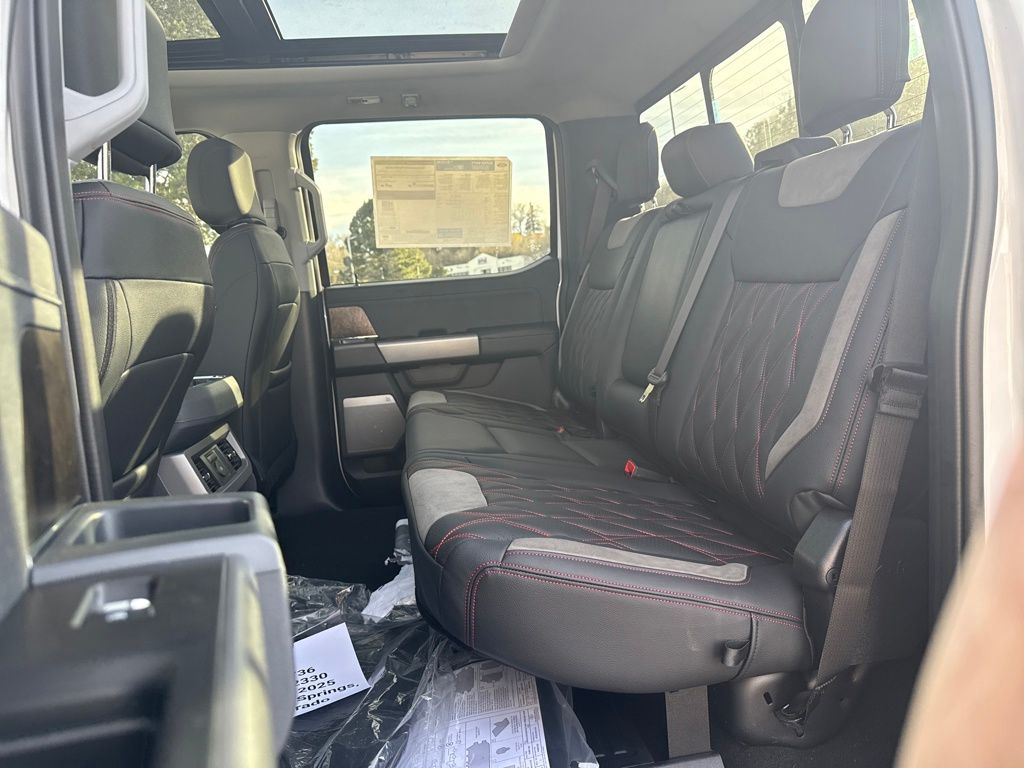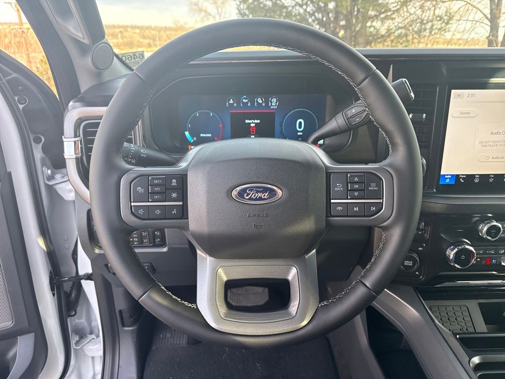 BLACK APPEARANCE PACKAGE front and rear black Ford ovals, box side decal (4x4, FX4 or Tremor) and ebony black fender vent surround dark fender badge, Rear Wheel Well Liners, Black Painted Front Grille Surround, Ebony Black Painted Mirror Caps, Tough Bed Spray-In Bedliner, tailgate-guard, black box bed tie-down hooks and black bed attachment bolts, Body Color Front & Rear Bumpers, Wheels: 20 Ebony Black High Gloss, Black premium painted aluminum, gloss black hub cover/center ornament, Tires: LT275/65Rx20E BSW Automatic Transmission, Spare may not be the same as road tire, 6 Ebony Black Angular Running Boards, LARIAT ULTIMATE PACKAGE Tailgate Step & Handle, Head-Up Display, 4-Way Adjustable Headrests, Power-Deployable Running Boards, Radio: B&O Unleashed Sound System by Bang & Olufsen, HD Radio w/14 speakers including subwoofer, LARIAT PREMIUM PACKAGE lane departure warning, Pro Trailer Hitch Assist, Ford Co-Pilot 360 Assist 2.0, rear view camera and reverse brake assist, Pre-Collision Assist, Automatic Emergency Braking (AEB), pedestrian detection, forward collision warning, dynamic brake support and intersection assist, Post-Collision Braking, Lane-Keeping System, lane-keeping alert, lane-keeping aid and driver alert, Front & Rear Parking Sensors, Automatic High Beam, Adaptive Cruise Control w/Stop-and-Go, lane centering and predictive speed assist, Power-Sliding Rear-Window w/Defrost, Pro Trailer Backup Assist, trailer reverse guidance, TWIN PANEL POWER MOONROOF map lights and moonroof switches, SECURICODE KEYLESS ENTRY KEYPAD (DRIVERS SIDE) Integrated into the B-pillar, ELECTRONIC-LOCKING W/3.55 AXLE RATIO, TRANSMISSION: TORQSHIFT 10-SPEED AUTOMATIC SelectShift and selectable drive modes: normal, eco, slippery roads, tow/haul and off-road. Ford LARIAT with Oxford White exterior and Black Onyx interior features a 8 Cylinder Engine with 405 HP at 5000 RPM*.