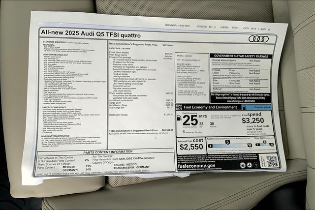 Fuel economy calculations based on original manufacturer data for trim engine configuration. Please confirm the accuracy of the included equipment by calling us prior to purchase.