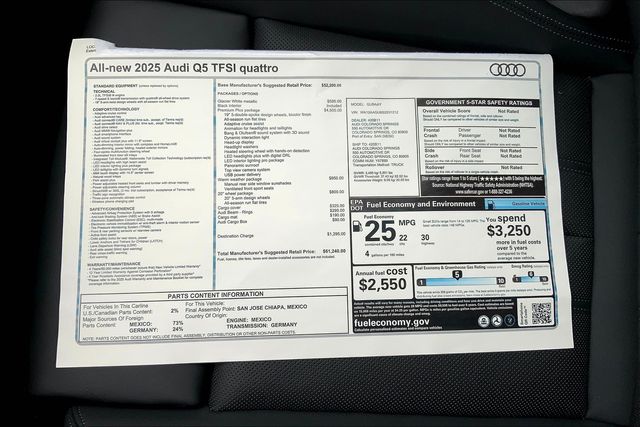 Leather Seats, Navigation, Sunroof, Panoramic Roof, All Wheel Drive, Power Liftgate, Rear Air, Heated Driver Seat, Turbocharged, Satellite Radio, iPod/MP3 Input, Onboard Communications System, Aluminum Wheels, Keyless Start, Dual Zone A/C. Rear Spoiler, MP3 Player, Privacy Glass, Remote Trunk Release, Keyless Entry.
