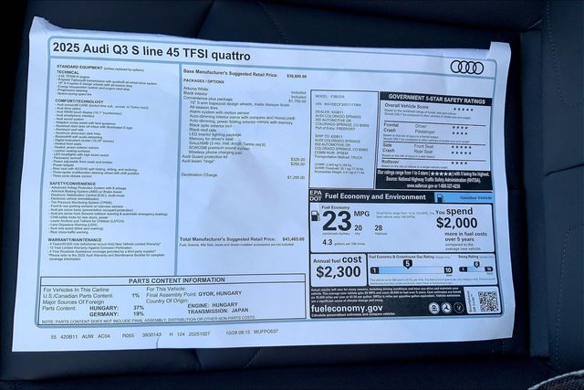 Fuel economy calculations based on original manufacturer data for trim engine configuration. Please confirm the accuracy of the included equipment by calling us prior to purchase.