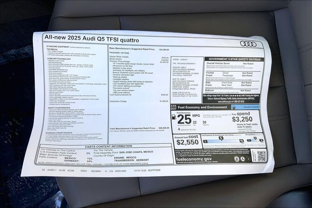 - Smart device integration: Audi smartphone interface (wireless Apple CarPlay/wired Android Auto)