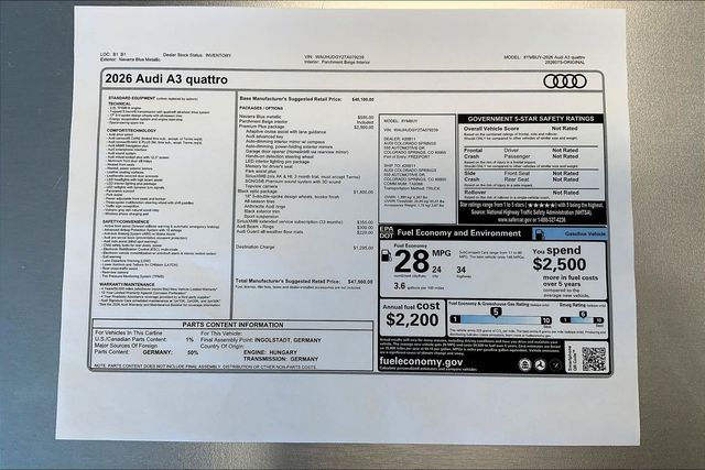 - Smart device integration: Audi smartphone interface (wireless Apple CarPlay/wired Android Auto)