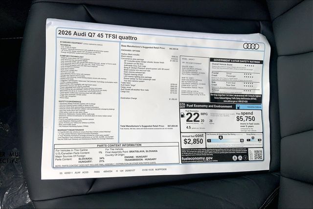 - Smart device integration: Audi smartphone interface w/wireless Apple CarPlay & Android Auto