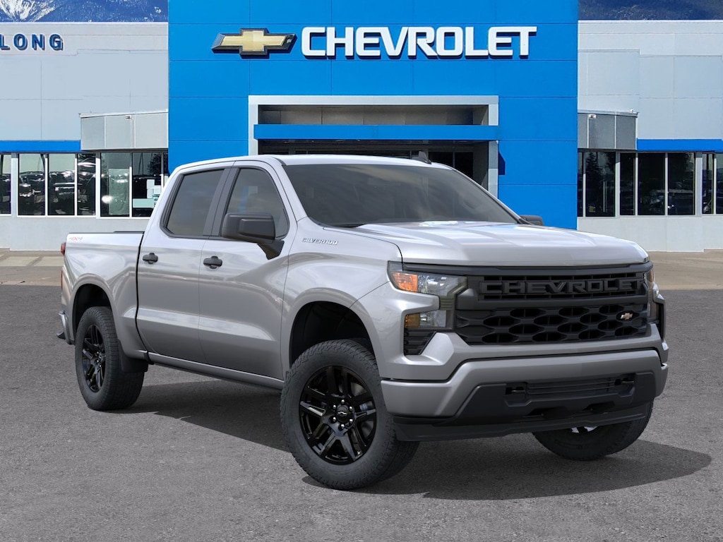 Limited Lifetime Powertrain Warranty included!Sterling Gray Metallic 2025 Chevrolet Silverado 1500 Custom 4WD 8-Speed Automatic 2.7L I4 Turbocharged DOHC 16V LEV3-SULEV30 310hpDANIELS LONG CHEVROLET will beat any local written offer by $500. See Dealer for details., 8-Speed Automatic, 4WD, Black Cloth.Custom Convenience Package (Electric Rear-Window Defogger, EZ Lift Power Lock & Release Tailgate, LED Cargo Area Lighting, Remote Vehicle Starter System, and Theft Deterrent System (Unauthorized Entry)), Custom Value Package, High Capacity Suspension Package, Preferred Equipment Group 1CX (10-Way Power Driver Seat w/Lumbar, 120-Volt Bed Mounted Power Outlet, 120-Volt Interior Power Outlet, 3.5 Monochromatic Display Driver Info Center, Bluetooth® For Phone, Color-Keyed Carpeting Floor Covering, Deep-Tinted Glass, Dual Rear USB Ports (Charge Only), Electronic Cruise Control, Front Frame-Mounted Black Recovery Hooks, Front Rubberized Vinyl Floor Mats, HD Rear Vision Camera, Manual Tilt Wheel Steering Column, OnStar Services Capable, Power Front Windows w/Driver Express Up/Down, Power Front Windows w/Passenger Express Down, Power Rear Windows w/Express Down, Rear 60/40 Folding Bench Seat (Folds Up), Rear Rubberized-Vinyl Floor Mats, Remote Keyless Entry, SiriusXM Trial Subscription, Standard Tailgate, Teen Driver, Tire Pressure Monitoring System, and Wi-Fi Hot Spot Capable), Trailering Package (Hitch Guidance), 8-Speed Automatic, 4WD, Black Cloth, 3.42 Rear Axle Ratio, 4-Wheel Disc Brakes, 40/20/40 Front Split-Bench Seat, 6 Speakers, 6-Speaker Audio System, ABS brakes, Air Conditioning, Alloy wheels, AM/FM radio: SiriusXM, Apple CarPlay/Android Auto, Auto High-beam Headlights, Automatic Emergency Braking, Brake assist, Bumpers: body-color, Cloth Seat Trim, Compass, Delay-off headlights, Driver door bin, Driver vanity mirror, Dual front impact airbags, Dual front side impact airbags, Electronic Stability Control, Emergency communication system: OnStar, Following Distance Indicator, Forward Collision Alert, Front anti-roll bar, Front Center Armrest w/Storage, Front License Plate Kit, Front Pedestrian Braking, Front reading lights, Front wheel independent suspension, Fully automatic headlights, Heated door mirrors, Illuminated entry, IntelliBeam Automatic High Beam On/Off, Lane Keep Assist w/Lane Departure Warning, Low tire pressure warning, Multi-Flex Tailgate, Occupant sensing airbag, Outside temperature display, Overhead airbag, Overhead console, Panic alarm, Passenger door bin, Passenger vanity mirror, Power door mirrors, Power driver seat, Power steering, Power windows, Premium audio system: Chevrolet Infotainment 3, Radio data system, Radio: Chevrolet Infotainment 3 System, Rear reading lights, Rear step bumper, Rear window defroster, Remote keyless entry, Security system, Speed control, Speed-sensing steering, Split folding rear seat, Tachometer, Tilt steering wheel, Traction control, Trip computer, Variably intermittent wipers, Voltmeter, Wheels: 20 x 9 Bright Silver Painted Aluminum, and Wheels: 20 x 9 High Gloss Black Painted Alum. Price includes: $1000 - Bonus Cash. Exp. 01/02/2026 $1000 - Bonus Cash. Exp. 01/02/2026 $1000 - Select Market Purchase Bonus Cash. Exp. 01/02/2026 $3000 - Customer Cash. Exp. 01/02/2026