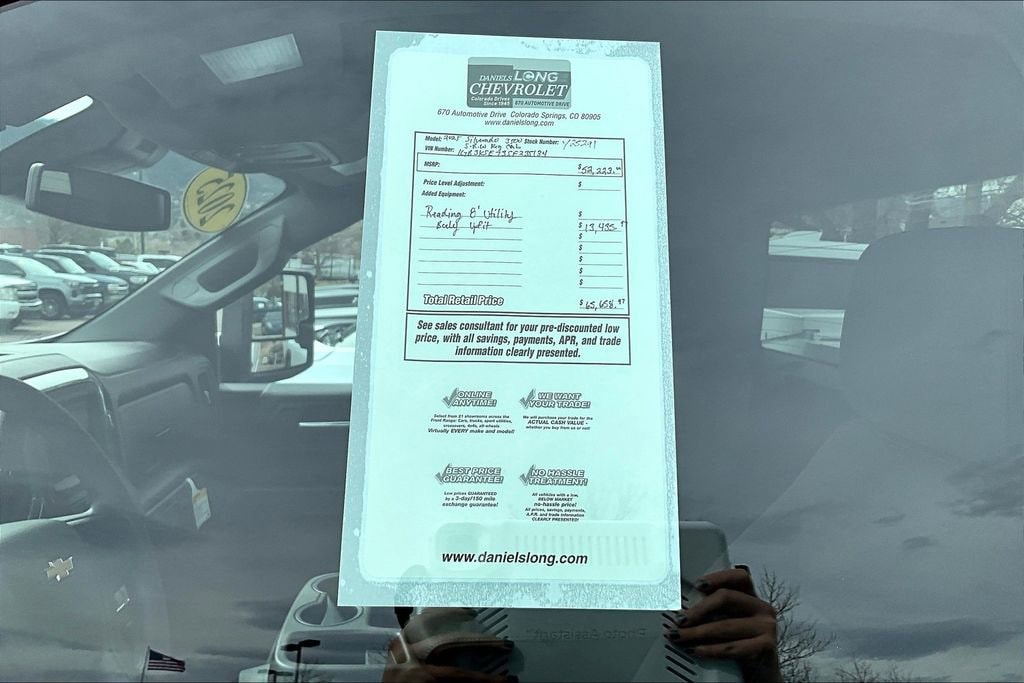 Preferred Equipment Group 1WT (170 Amp Alternator, 2-Speed Electronic Shift Transfer Case, 3.5 Diagonal Monochromatic Display DIC, Black Front Bumper, Black Mirror Caps, Black Rear Bumper, Bluetooth® For Phone, Chevrolet Connected Access Capable, Compass Located In Instrument Cluster, HD Rear Vision Camera, Locking Tailgate, Manual Tailgate Function w/No EZ Lift, Manual Tilt-Wheel Steering Column, OnStar Services Capable, Power Door Locks, Power Front Windows w/Driver Express Up/Down, Push Button Start, Remote Keyless Entry, Rubberized-Vinyl Floor Covering, Solar Absorbing Tinted Glass, Standard Tailgate, Steering Wheel Mounted Electronic Cruise Control, and Wi-Fi Hotspot Capable), Snow Plow Prep/Camper Package (220 Amp Alternator), Suspension Package, WT Convenience Package (Deep-Tinted Glass and Electric Rear-Window Defogger), 10-Speed Automatic, 4WD, Black Cloth, 120-Volt Interior Power Outlet, 2 Speakers, 2-Speaker Audio System Feature, 3.73 Rear Axle Ratio, 4-Way Manual Driver Seat Adjuster, 4-Way Manual Passenger Seat Adjuster, 4-Wheel Disc Brakes, ABS brakes, Air Conditioning, AM/FM radio, Apple CarPlay/Android Auto, Auto High-beam Headlights, Auto-Dimming Inside Rear-View Mirror, Back-Up Alarm Calibration, Brake assist, Compass, Delay-off headlights, Driver door bin, Dual front impact airbags, Dual front side impact airbags, Durabed Pickup Bed, Electronic Stability Control, Front 40/20/40 Split-Bench Seats w/Lockable Storage, Front anti-roll bar, Front Center Armrest w/Storage, Front Chrome Bumper, Front License Plate Kit, Front reading lights, Front wheel independent suspension, Fully automatic headlights, Heated door mirrors, Heavy-Duty 80 Amp-Hr Battery, Illuminated entry, Low tire pressure warning, Occupant sensing airbag, Outside temperature display, Overhead airbag, Overhead console, Panic alarm, Passenger door bin, Passenger vanity mirror, Power door mirrors, Power steering, Power windows, Power-Adjustable Outside Mirrors, Premium audio system: Chevrolet Infotainment 3, Radio: Chevrolet Infotainment 3 System, Rear step bumper, Remote keyless entry, Speed control, Tachometer, Tilt steering wheel, Traction control, Trip computer, Turn signal indicator mirrors, Upfitter Switch Kit (5), Variably intermittent wipers, Vinyl Seat Trim, and Voltmeter. Price includes: $1000 - Customer Cash. Exp. 02/02/2026