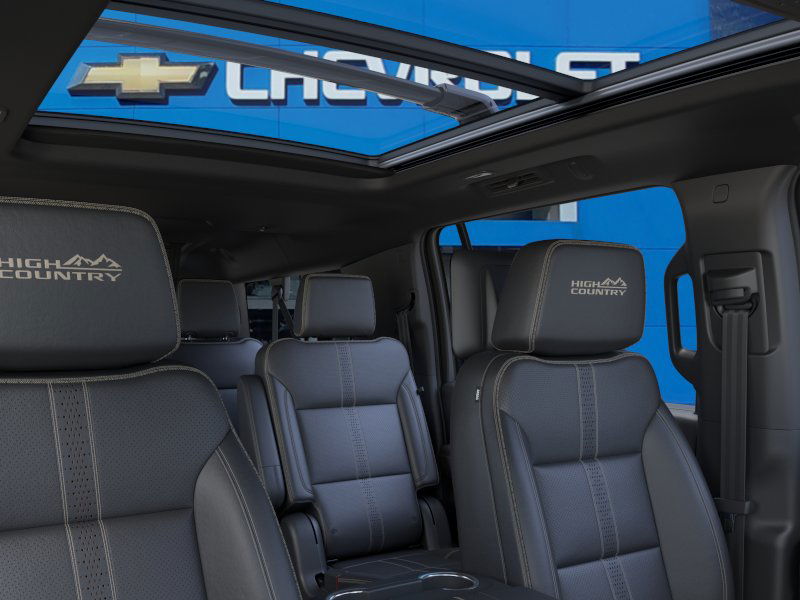 Advanced Security Package (Glass Breakage Sensor, Self-Powered Horn Theft-Deterrent Alarm System, Vehicle Inclination Sensor, and Vehicle Interior Movement Sensor), Advanced Trailering Package (Blind Zone Steering Assist with Trailering, Hitch View with Pan/Zoom Image Adjustment, and Smart Trailer Integration Indicator), High Country Deluxe (Air Ride Adaptive Suspension, Dual-Pane Power Panoramic Sunroof, and Power-Retractable Assist Steps), Max Trailering Package (2-Speed Active Electronic AutoTrac Transfer Case, Extra Capacity Cooling System, Hill Descent Control, and Integrated Trailer Brake Controller), Preferred Equipment Group 3LZ (15 Diagonal Multi-Color Head-Up Display, 3rd Row 60/40 Power-Folding Split-Bench, 4-Way Power Driver Lumbar Seat Adjuster, 4-Way Power Front Passenger Lumbar Seat Adjuster, 8-Way Power Front Passenger Seat Adjuster, Bose 10-Speaker Surround with CenterPoint, Bright Front and Rear Door Sill Plates, Chrome Door Handles with Body-Color Strip, Dual Exhaust System, Front LED Fog Lamps, Heated 2nd Row Outboard Seats, Heated Driver and Front Passenger Seats, Heated Power-Adjustable Outside Mirrors, Heated Steering Wheel, Inside Rearview Auo-Dimming Rear Camera Mirror, LED Headlamps with LED Daytime Running Lamps, LED Tail Lamps, Magnetic Ride Control Suspension, Memory Settings, Perforated Heated and Ventilated Seats, Power Release 2nd Row Bucket Seats, Power Tilt and Telescopic Steering Column, Power-Sliding Center Floor Console, Rear Power Liftgate, Universal Home Remote, Wheel Locks (set of 4), Wheels: 22 x 9 Bright Machined Aluminum, and Wireless Phone Charging), Premium Liner Protection Package (3rd Row All-Weather Floor Liners, All-Weather Cargo Mat, and First and Second Rows Premium Floor Liners), Technology & Entertainment Package (Rear Seat Media System), Technology Package (AutoSense Hands-Free Power Liftgate), 10 Speakers, 3 Years of OnStar Services/Safety Services, 3 Years SiriusXM, 3.23 Rear Axle Ratio, 3rd row seats: split-bench, 4-Wheel Disc Brakes, 8-Way Power Driver Seat Adjuster, ABS brakes, Adaptive suspension, Air Conditioning, Alloy wheels, AM/FM radio: SiriusXM with 360L, Apple CarPlay/Android Auto, Auto High-beam Headlights, Auto-dimming door mirrors, Auto-dimming Rear-View mirror, Auto-leveling suspension, Automatic temperature control, Black Roof Rack Cross Rails, Brake assist, Bumpers: body-color, Compass, Delay-off headlights, Driver door bin, Driver vanity mirror, Dual front impact airbags, Dual front side impact airbags, Electronic Stability Control, Emergency communication system: OnStar Services capable, Exterior Parking Camera Rear, Four wheel independent suspension, Front anti-roll bar, Front Bucket Seats, Front Center Armrest, Front dual zone A/C, Front fog lights, Front reading lights, Fully automatic headlights, Garage door transmitter, Heads-Up Display, Heated door mirrors, Heated front seats, Heated rear seats, Heated steering wheel, Illuminated entry, Low tire pressure warning, Memory seat, Navigation system: Google built-in compatibility (select service plan required, terms and limitations apply), Occupant sensing airbag, Outside temperature display, Overhead airbag, Overhead console, Panic alarm, Passenger door bin, Passenger vanity mirror, Perforated Leather Seating Surfaces, Power door mirrors, Power driver seat, Power Liftgate, Power passenger seat, Power steering, Power windows, Radio data system, Radio: 17.7 Diagonal Advanced Color LCD Display, Rain sensing wipers, Rear air conditioning, Rear anti-roll bar, Rear reading lights, Rear window defroster, Rear window wiper, Remote keyless entry, Security system