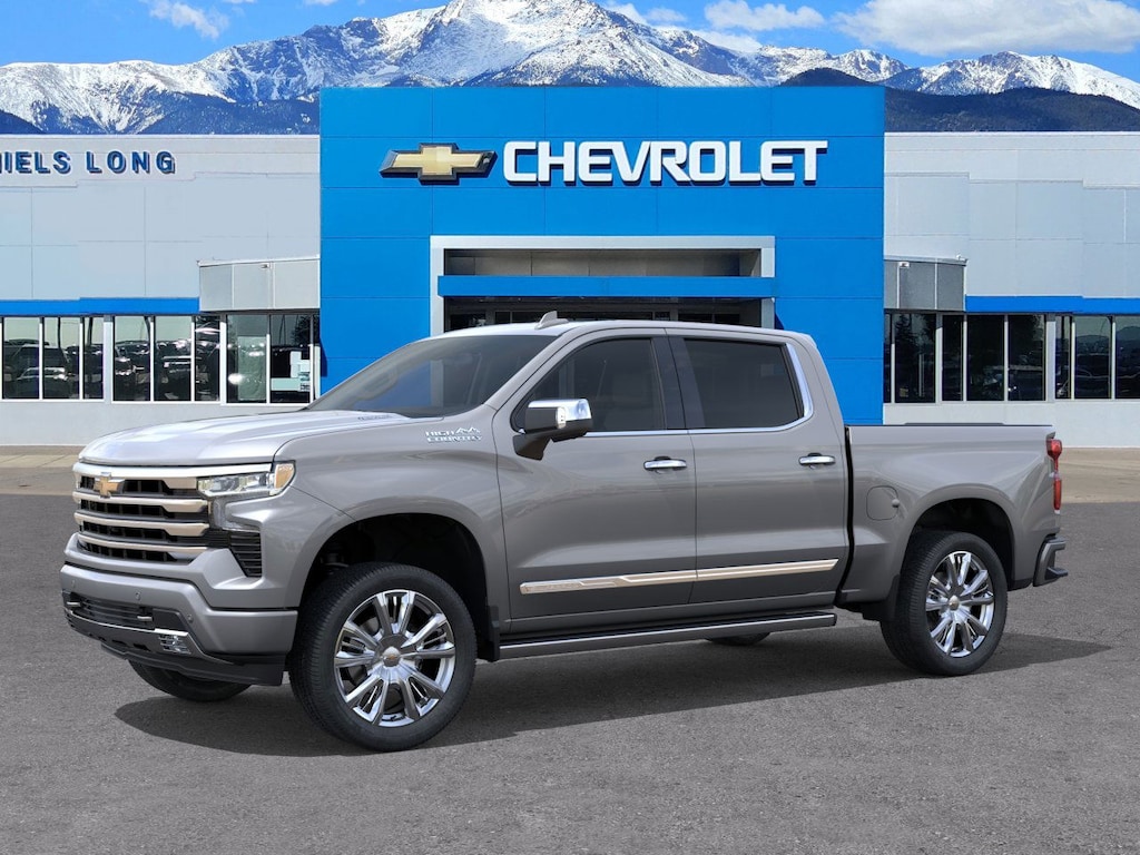High Capacity Suspension Package, High Country Premium II Super Cruise Package (Power-Retractable Assist Steps, Sport Wrapped Steering Wheel, and Super Cruise), High Country Premium Package (All-Weather Floor Liner (LPO), Power Sunroof, and Wheels: 22 x 9 Painted Aluminum), Preferred Equipment Group 3LZ (10-Way Power Driver Seat w/Lumbar, 10-Way Power Passenger Seat Adjuster w/Lumbar, 12.3 Multicolor Reconfigurable Digital Display, 120-Volt Bed Mounted Power Outlet, 120-Volt Interior Power Outlet, 2 USB Data Ports, 2nd Row Heated Outboard Seats, Adaptive Cruise Control, Auto-Dimming Inside Rear-View Mirror, Auto-Locking Rear Differential, Bed View Camera, Bluetooth® For Phone, Chevytec Spray-On Black Bedliner, Chrome Assist Steps, Chrome Recovery Hooks, Color-Keyed Carpeting Floor Covering, Deep-Tinted Glass, Driver Memory, Dual Exhaust w/Polished Outlets, Dual Rear USB Ports (Charge Only), Electric Rear-Window Defogger, Floor Mounted Center Console, Front Carpeted Floor Mats, Front LED Fog Lamps, Front Rain-Sensing Wipers, Galvano Silver Painted Mirror Caps, HD Surround Vision, Heated Driver & Front Outboard Passenger Seats, Heated Steering Wheel, Hitch Guidance w/Hitch View, In-Vehicle Trailering System App, Integrated Trailer Brake Controller, Keyless Open & Start, LED Cargo Area Lighting, OnStar Services Capable, Outside Heated Power-Adjustable Mirrors, Perimeter Lighting, Power Front Passenger Windows w/Express Up/Down, Power Front Windows w/Driver Express Up/Down, Power Rear Windows w/Express Down, Power Sliding Rear Window w/Rear Defogger, Power Tailgate, Power Tilt & Telescoping Steering Column, Rear Carpeted Floor Mats, Rear Cross Traffic Braking, Rear Pedestrian Alert, Rear Wheelhouse Liners, Remote Vehicle Starter System, Safety Alert Seat, SiriusXM w/360L Trial Subscription, Standard Tailgate, Steering Wheel Audio Controls, Teen Driver, Theft Deterrent System (Unauthorized Entry), Tire Pressure Monitoring System, Trailer Camera Provisions, Trailer Side Blind Zone Alert, Ultrasonic Front & Rear Park Assist, Universal Home Remote, Ventilated Driver & Front Passenger Seats, Wi-Fi Hot Spot Capable, and Wrapped Steering Wheel), Technology Package (15 Diagonal Multicolor Head-Up Display and Rear Camera Mirror), Trailering Package (Hitch Guidance), Up-Level Rear Seat w/Storage Package, 10-Speed Automatic, 4WD, Black Leather, 170 Amp Alternator, 220 Amp Alternator, 3.23 Rear Axle Ratio, 4-Wheel Disc Brakes, 7 Speakers, ABS brakes, Adaptive Ride Control Suspension, Air Conditioning, Alloy wheels, AM/FM radio: SiriusXM with 360L, Apple CarPlay/Android Auto, Auto High-beam Headlights, Auto-dimming door mirrors, Auto-dimming Rear-View mirror, Automatic temperature control, Bodyside moldings, Brake assist, Bumpers: body-color, Compass, Delay-off headlights, Deleted Mobile Service Plus, Driver door bin, Driver vanity mirror, Dual front impact airbags, Dual front side impact airbags, Electronic Stability Control, Electronic Transmission Range Selector Shifter, Emergency communication system: OnStar, Engine Block Heater, Enhanced Automatic Emergency Braking, Following Distance Indicator, Forward Collision Alert, Front anti-roll bar, Front Bucket Seats, Front Center Armrest, Front dual zone A/C, Front fog lights, Front License Plate Kit, Front Pedestrian Braking, Front reading lights, Front wheel independent suspension, Fully automatic headlights, Garage door transmitter, Genuine wood console insert, Genuine wood dashboard insert, Genuine wood door panel insert, Heated door mirrors, Heated front seats, Heated rear seats, Heated steering wheel, Illuminated entry Price includes: $1500 - Cus