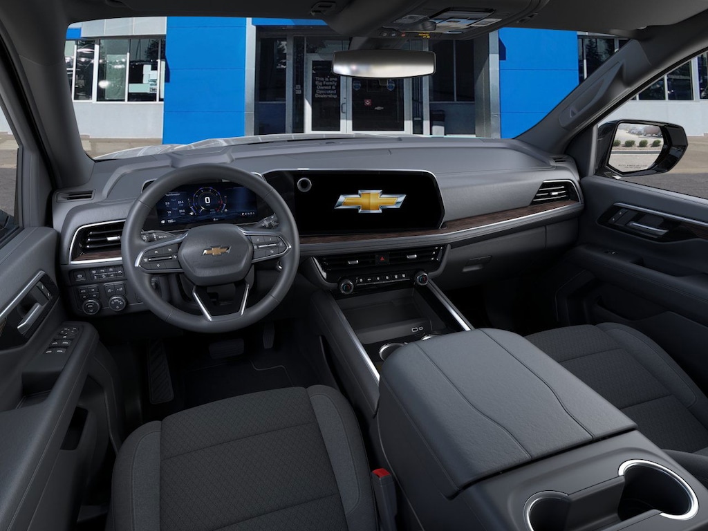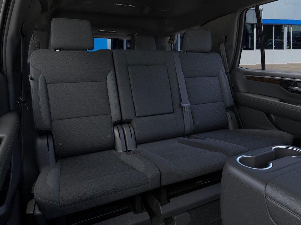 Advanced Trailering Package (Blind Zone Steering Assist w/Trailering, Hitch View w/Pan/Zoom Image Adjustment, and Smart Trailer Integration Indicator), Dark Essentials Package (LPO) (Black Mirror Caps (LPO), Black Name Plates (LPO), and Front & Rear Black Bowtie Emblems (LPO)), License Plate Front Mounting Package, Max Trailering Package (2-Speed Active Electronic AutoTrac Transfer Case, Extra Capacity Cooling System, Hill Descent Control, and Integrated Trailer Brake Controller), Preferred Equipment Group 1LS (1st & 2nd Row Color-Keyed Carpeted Floor Mats, 3-Spoke Wrapped Steering Wheel, 3rd Row Manual 60/40 Split-Folding Bench Seats, Color-Keyed Carpeting Floor Covering, Floor Console w/Storage Area, Frontal Driver & Outboard Passenger Airbags, Key Card, Remote Start, SiriusXM w/360L Trial Subscription, and USB Ports), 4WD, Jet Black Cloth, 2-Way Power Driver Lumbar Seat Adjuster, 2-Way Power Front Passenger Lumbar Seat Adjuster, 3.23 Rear Axle Ratio, 3rd row seats: split-bench, 4-Wheel Disc Brakes, 6 Speakers, 6-Speaker Audio System Feature, 6-Way Power Front Passenger Seat Adjuster, 8-Way Power Driver Seat Adjuster, ABS brakes, Air Conditioning, Alloy wheels, AM/FM radio: SiriusXM with 360L, Apple CarPlay/Android Auto, Auto High-beam Headlights, Automatic temperature control, Brake assist, Bumpers: body-color, Compass, Delay-off headlights, Deleted Mobile Service Plus, Driver door bin, Driver vanity mirror, Dual front impact airbags, Dual front side impact airbags, Electronic Stability Control, Emergency communication system: OnStar and Chevrolet connected services capable, Exterior Parking Camera Rear, Four wheel independent suspension, Front anti-roll bar, Front Bucket Seats, Front Center Armrest, Front dual zone A/C, Front reading lights, Fully automatic headlights, Heated door mirrors, Illuminated entry, Low tire pressure warning, Navigation system: Google built-in compatibility (select service plan required, terms and limitations apply), Occupant sensing airbag, Outside temperature display, Overhead airbag, Overhead console, Panic alarm, Passenger door bin, Passenger vanity mirror, Power door mirrors, Power driver seat, Power passenger seat, Power steering, Power windows, Premium audio system: Chevrolet Infotainment 3, Premium Cloth Seat Trim, Premium Smooth Ride Suspension, Radio data system, Radio: 17.7 Diagonal Advanced Color LCD Display, Rain sensing wipers, Rear air conditioning, Rear anti-roll bar, Rear reading lights, Rear seat center armrest, Rear window defroster, Rear window wiper, Remote keyless entry, Security system, Speed control, Speed-sensing steering, Split folding rear seat, Spoiler, Steering wheel mounted audio controls, Tachometer, Telescoping steering wheel, Tilt steering wheel, Traction control, Trip computer, Variably intermittent wipers, Voltmeter, Wheels: 18 x 8.5 Bright Silver Painted Aluminum, and Wheels: 20 x 9 Machined Aluminum.
